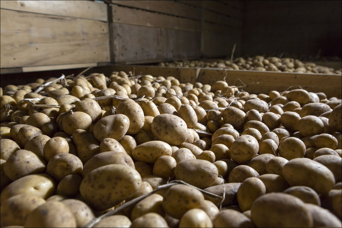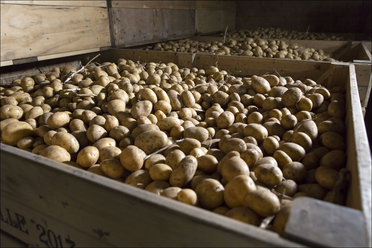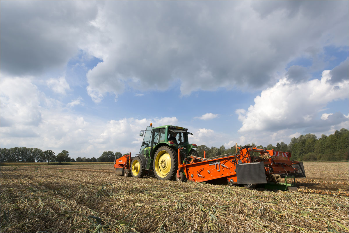 Foto’s van o.a. de opslag van de aardappelen in de kratten, akkers met waspeen & uien en het rooien (oogsten) van de uien.