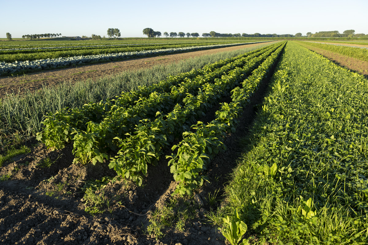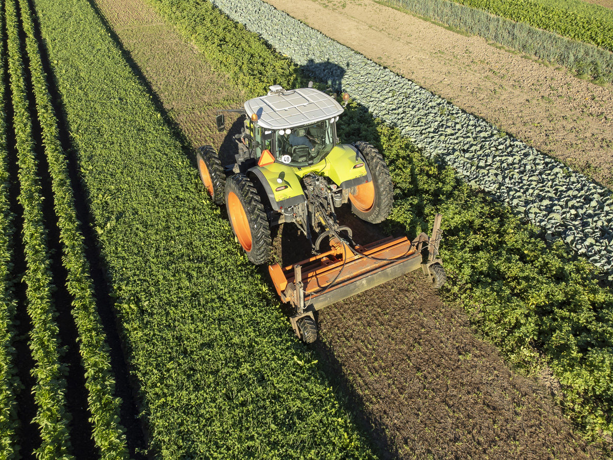 Foto’s van werkzaamheden (klepelen), diverse strokenteelten en biodiversiteit op de akkers van akkerbouwbedrijf BI-JOVIRA