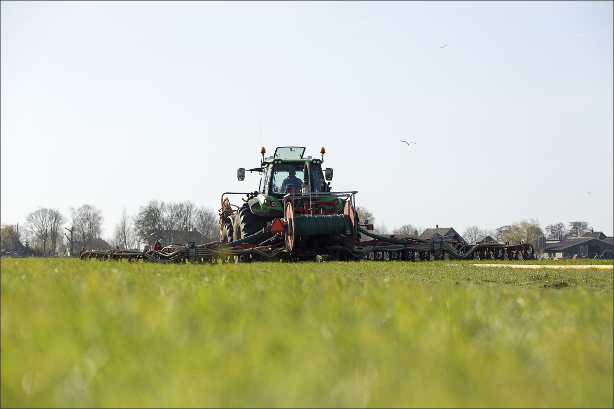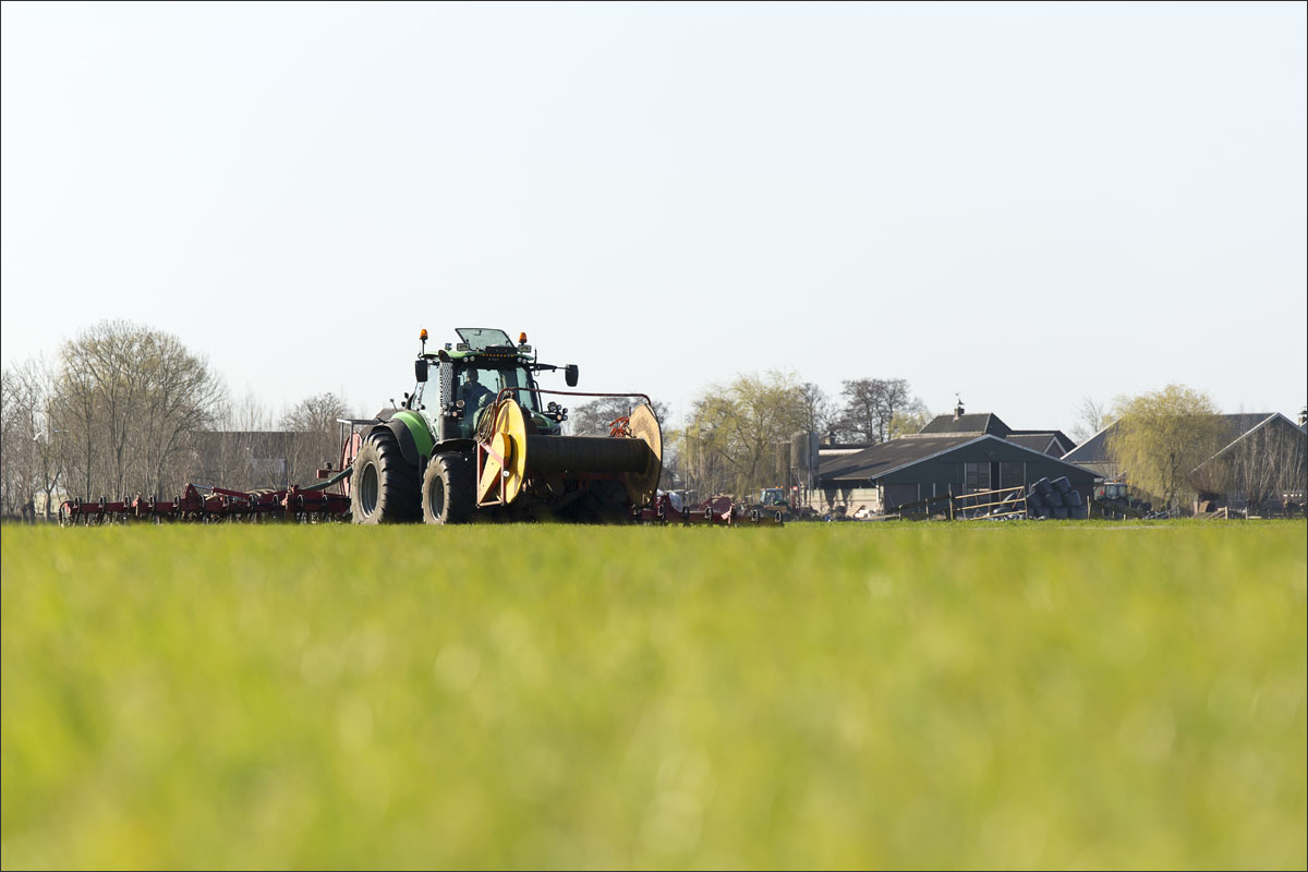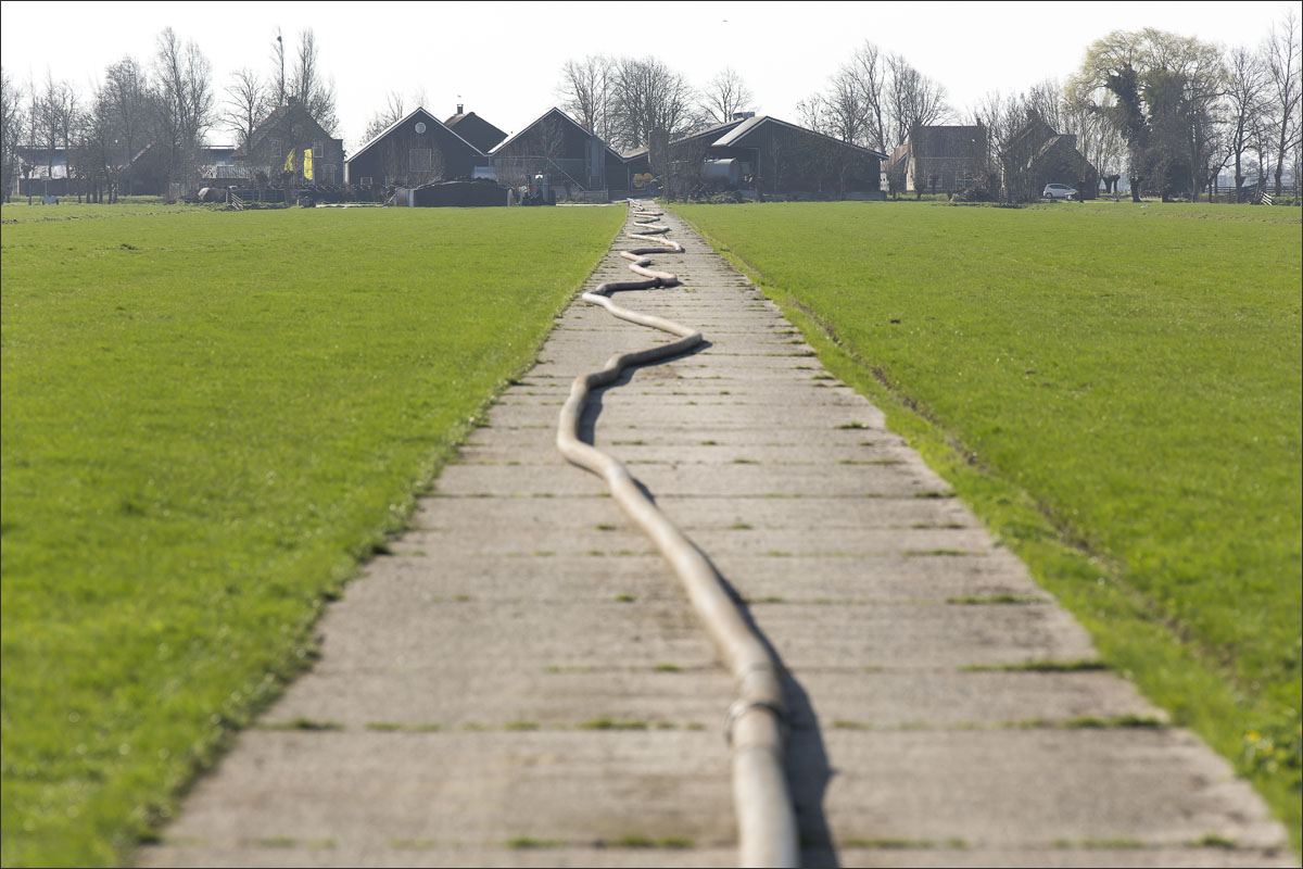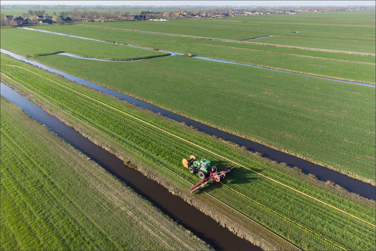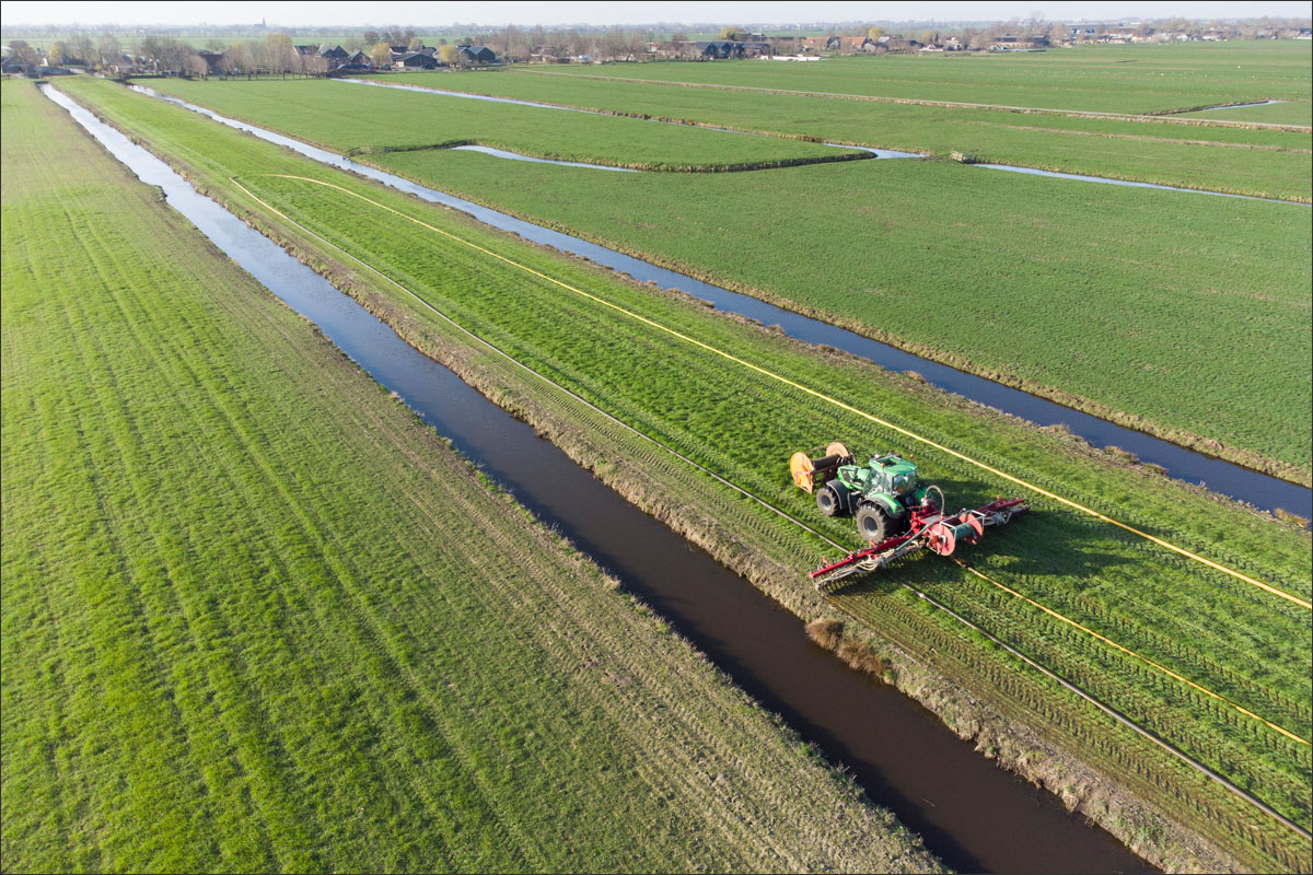 Daar is netjes langsheen bemest door Loonbedrijf A. Slingerland. En er werd een nestbescherming, bij bemesten met sleepslang, over het nest gezet.