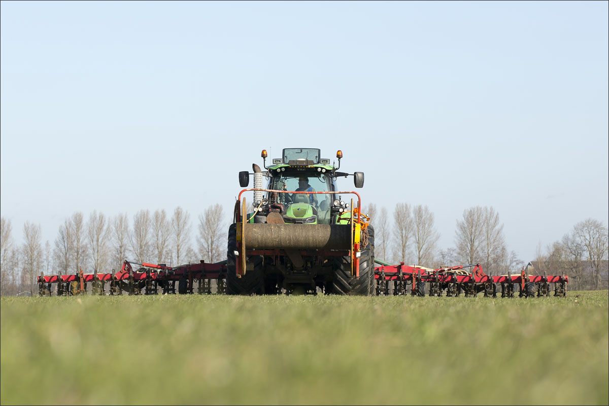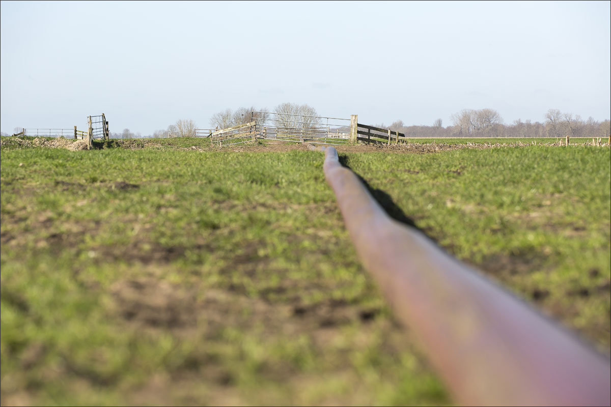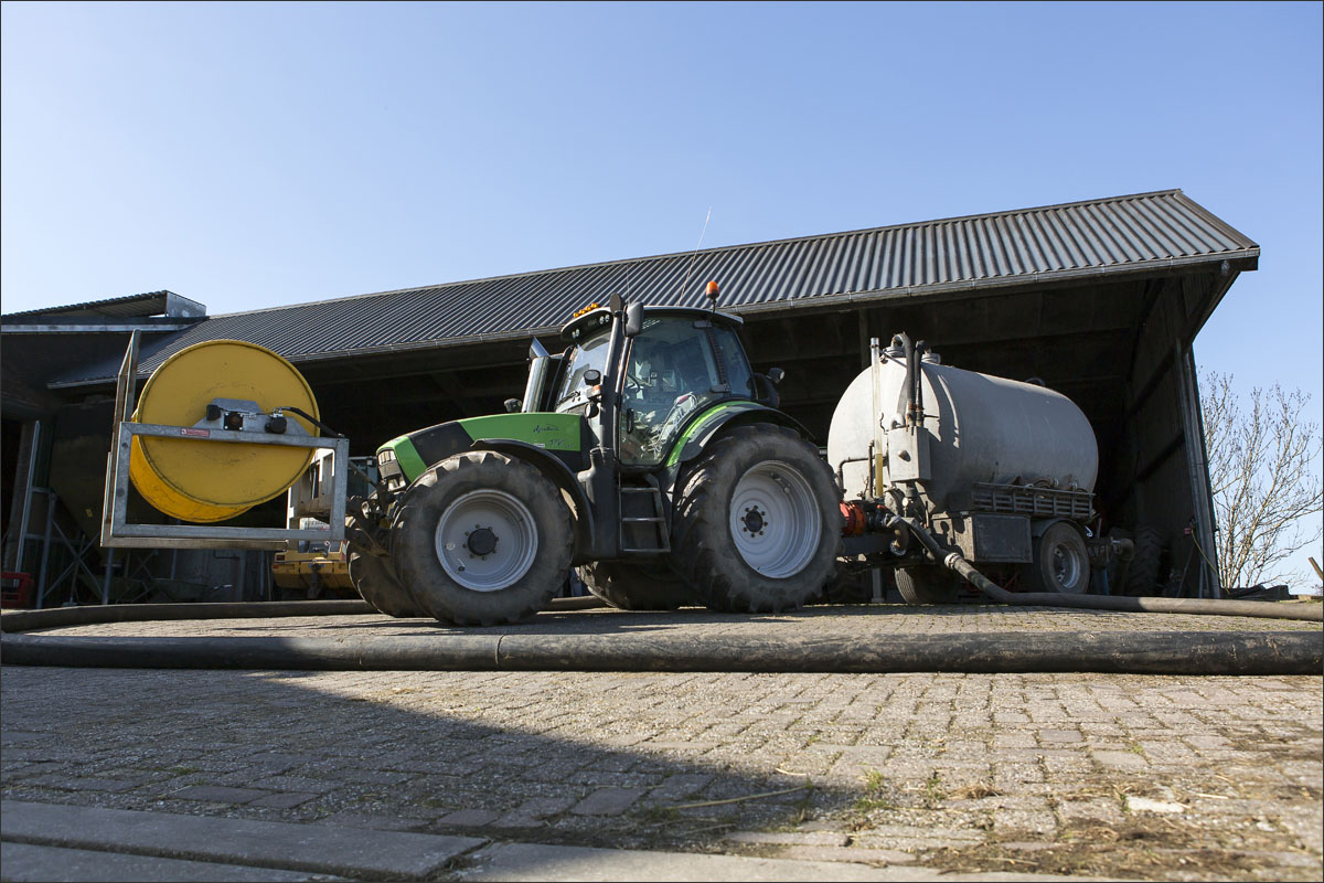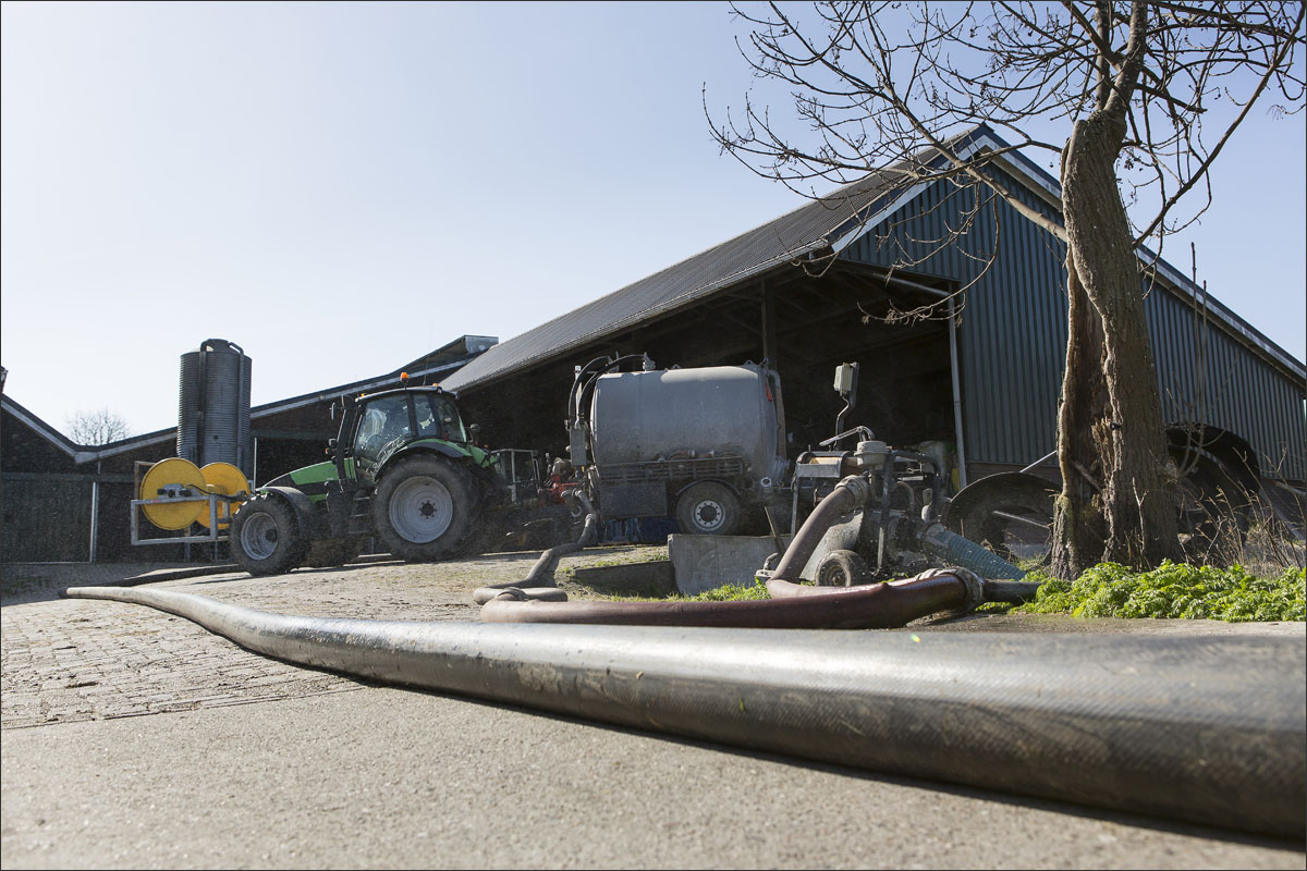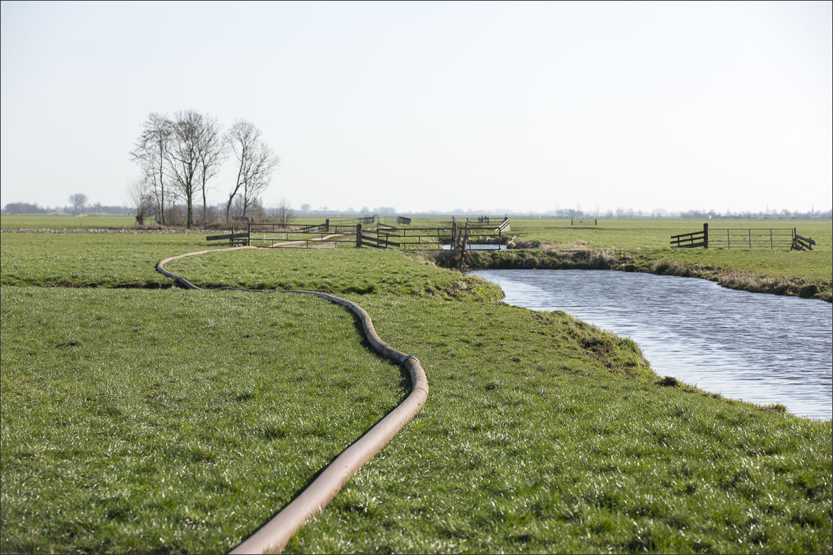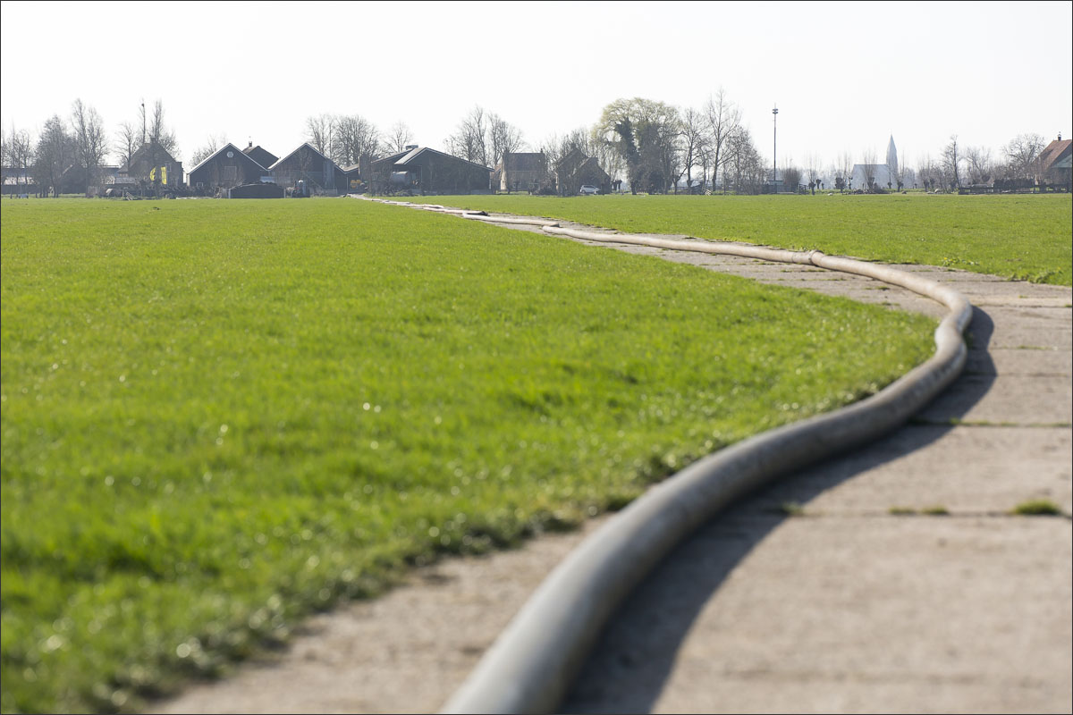 Daar is netjes langsheen bemest door Loonbedrijf A. Slingerland. En er werd een nestbescherming, bij bemesten met sleepslang, over het nest gezet.