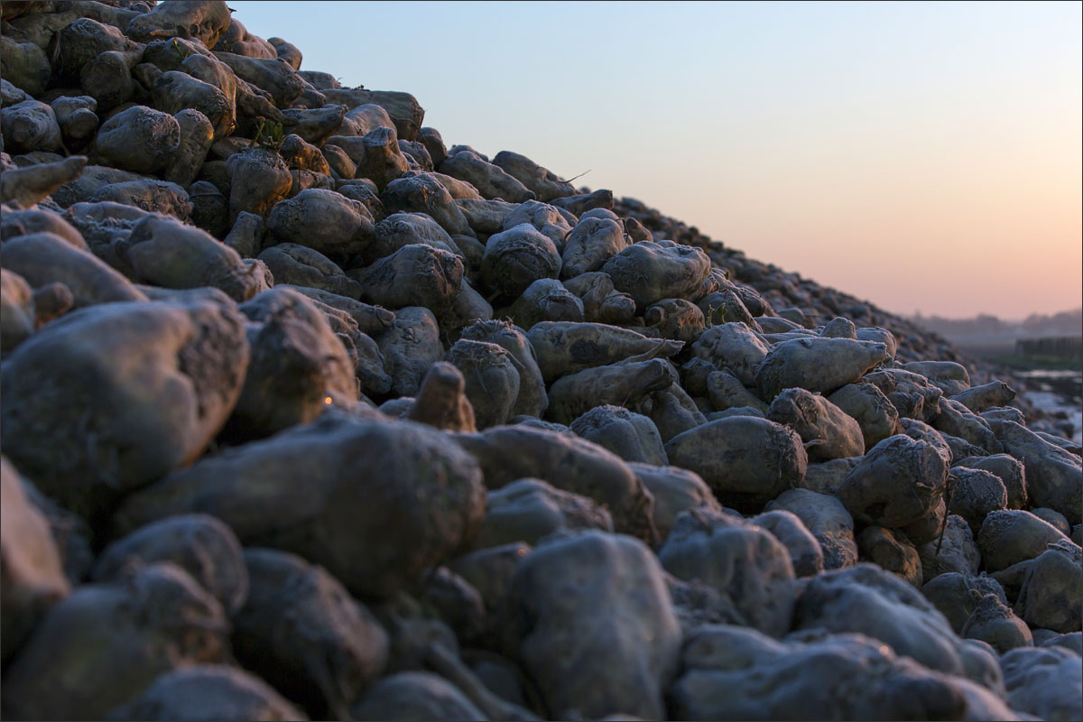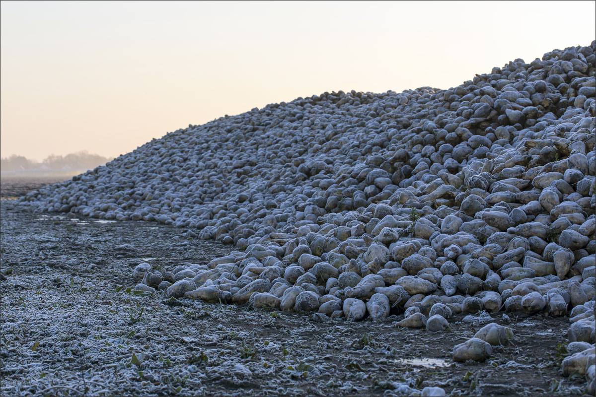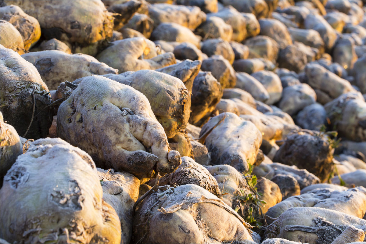 De groei van de planten op de akker en het oogsten en de bewaring van de suikerbieten.