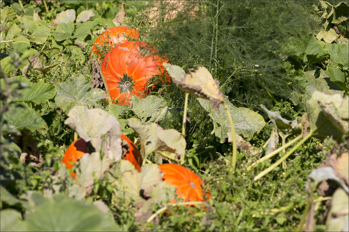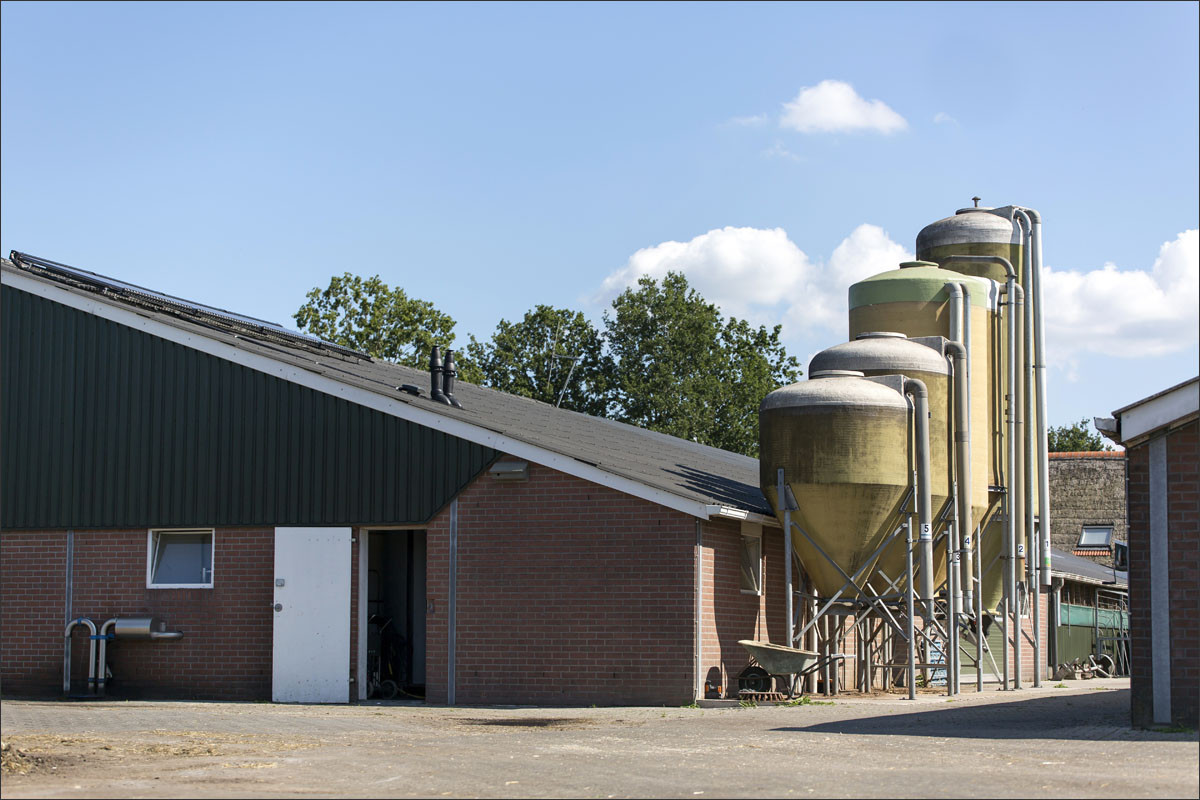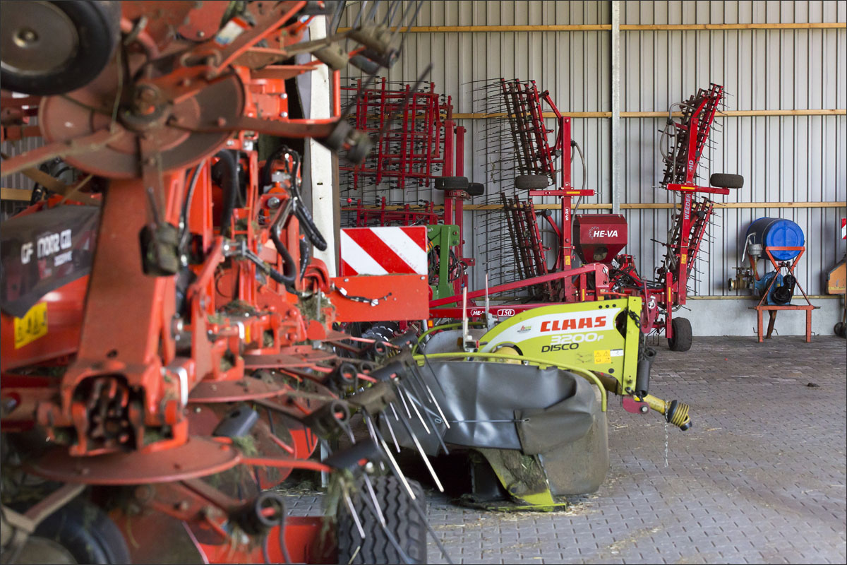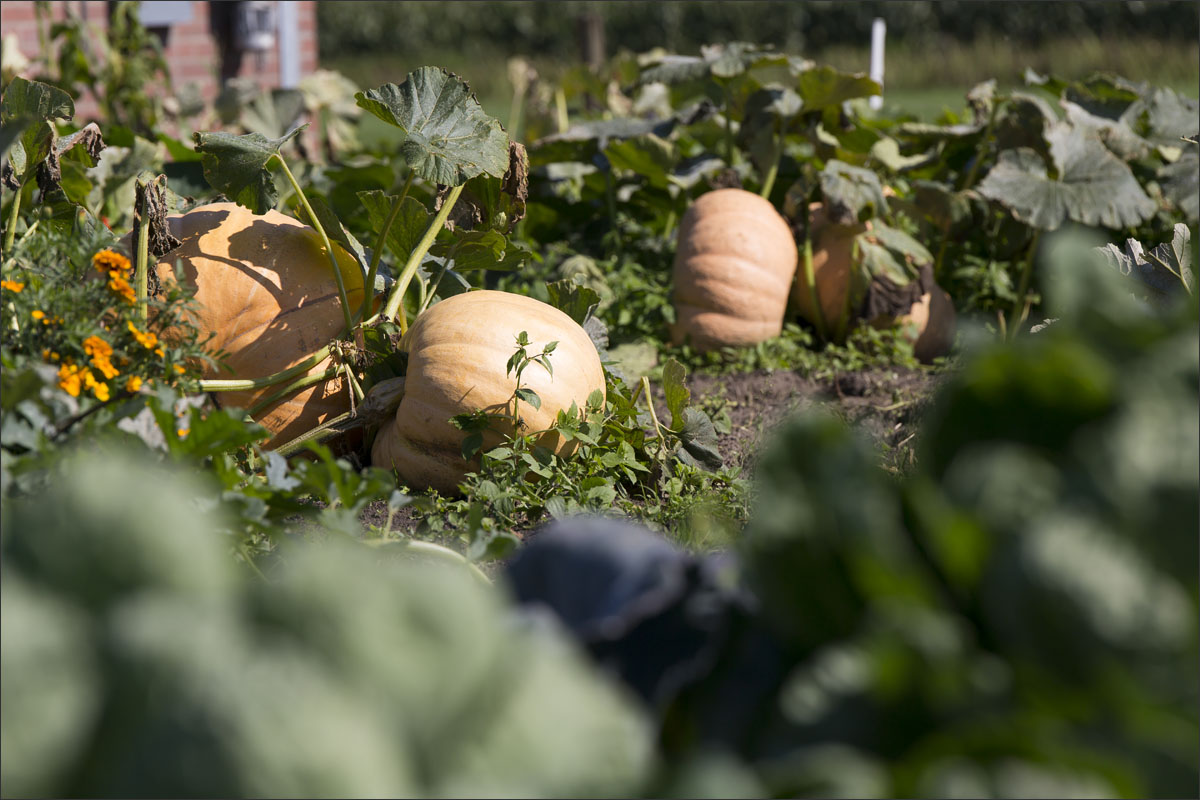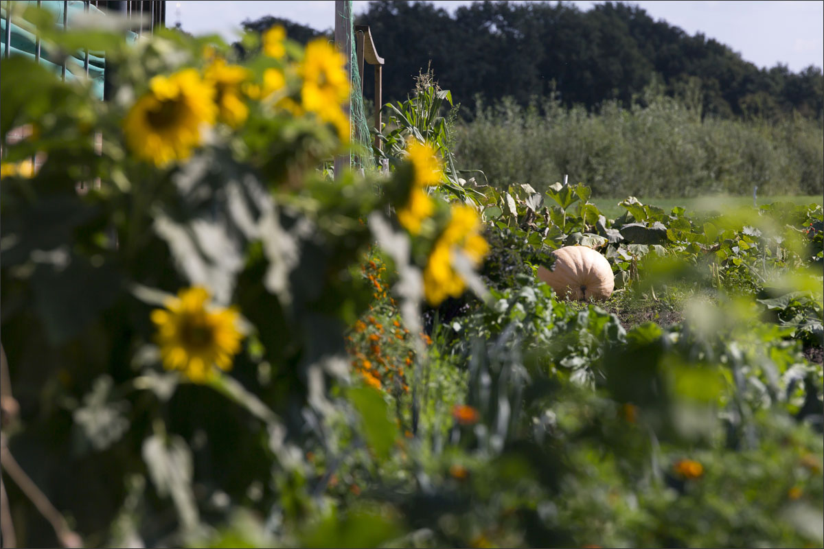 Foto’s van o.a. de voersilo’s, ingekuild gras, opslag strobalen, de moestuin met pompoenen en andere groenten, het laden en mengen van de voermengwagen voor het voeren van de geiten en het wiersen van het grasland.