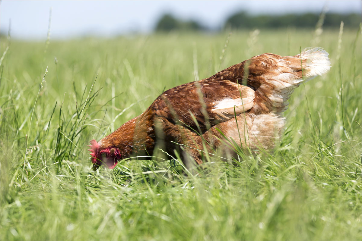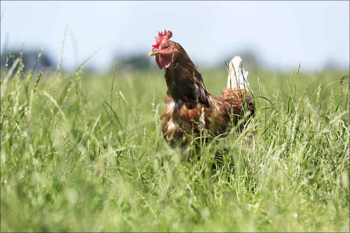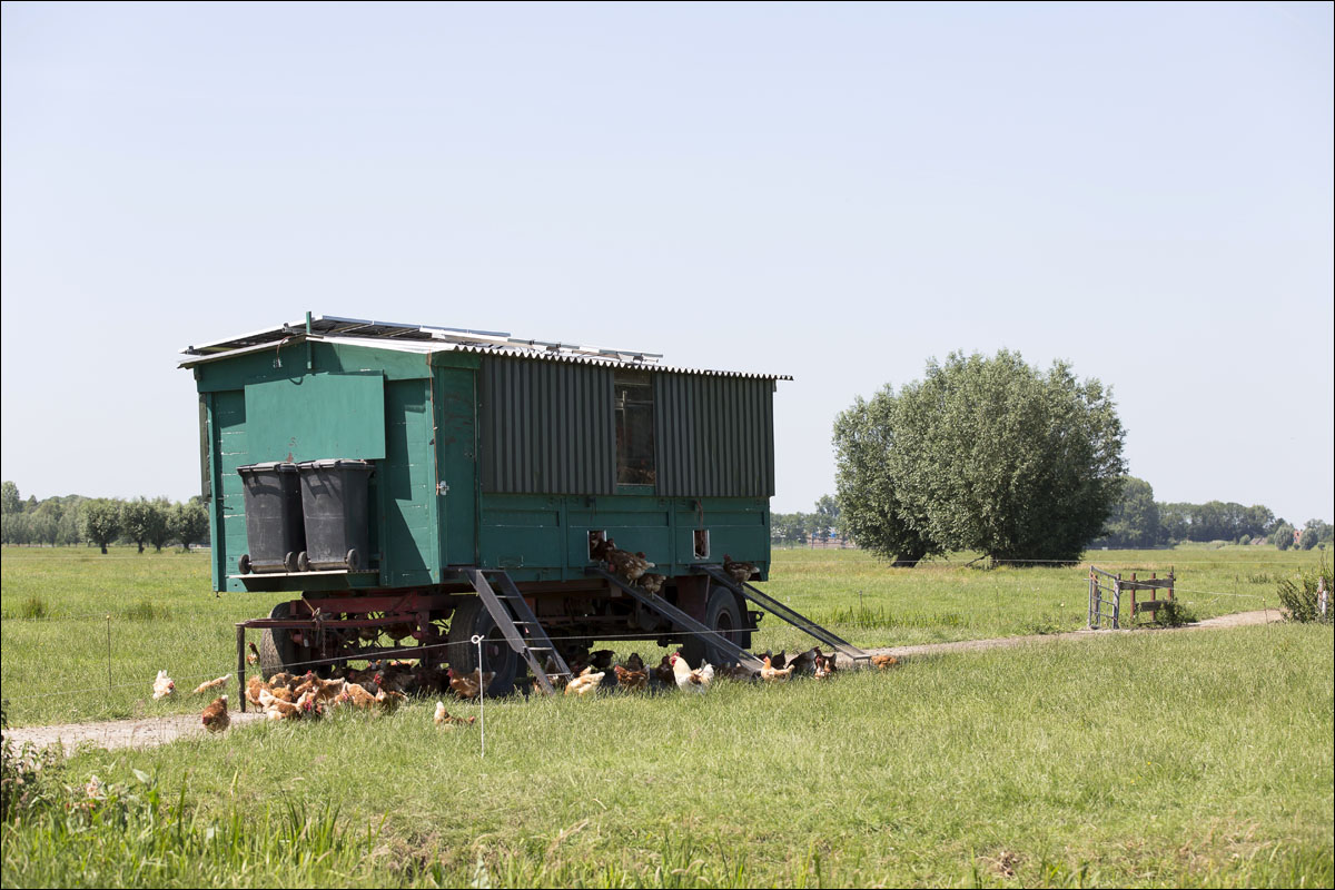Foto’s van de kippen in de weide op de boerderij van BoerBert, biologische boerderij in Woerden.
