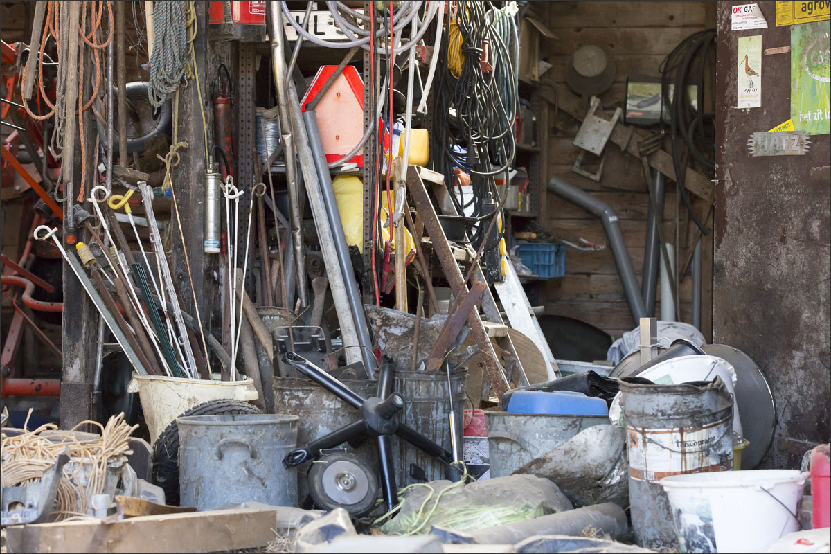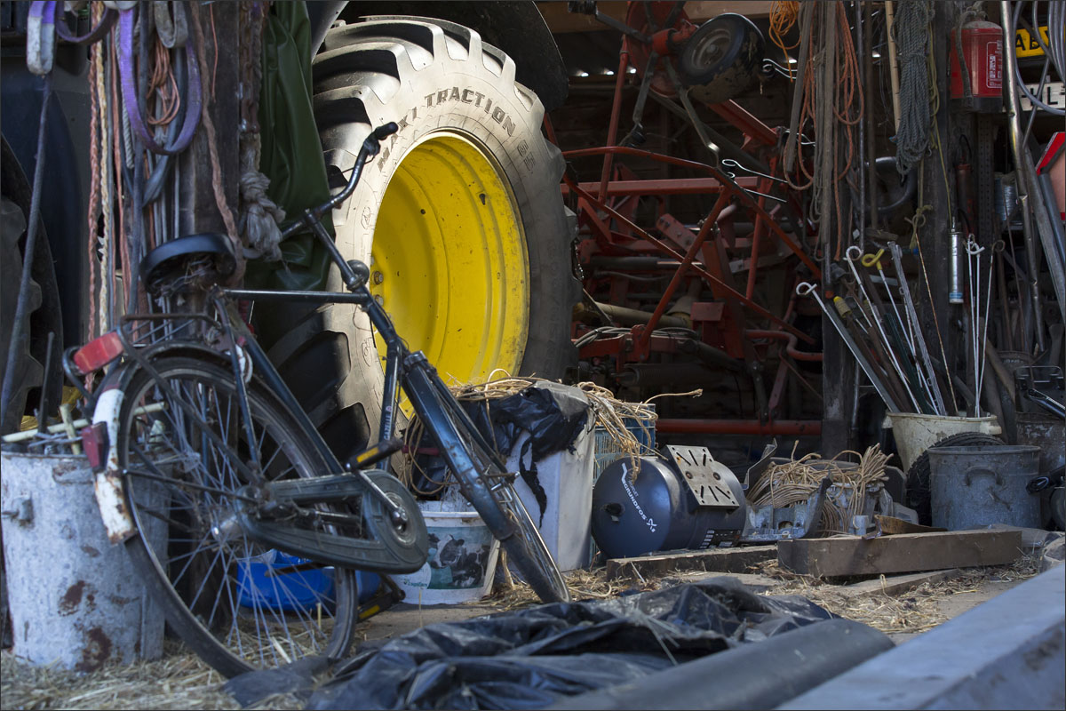Foto’s van o.a. de landbouwmachines op de boerderij, de huisdieren zoals de hond en kat, de details in de schuur en de stal en het ontbijt bij het boerengezin in de keuken.