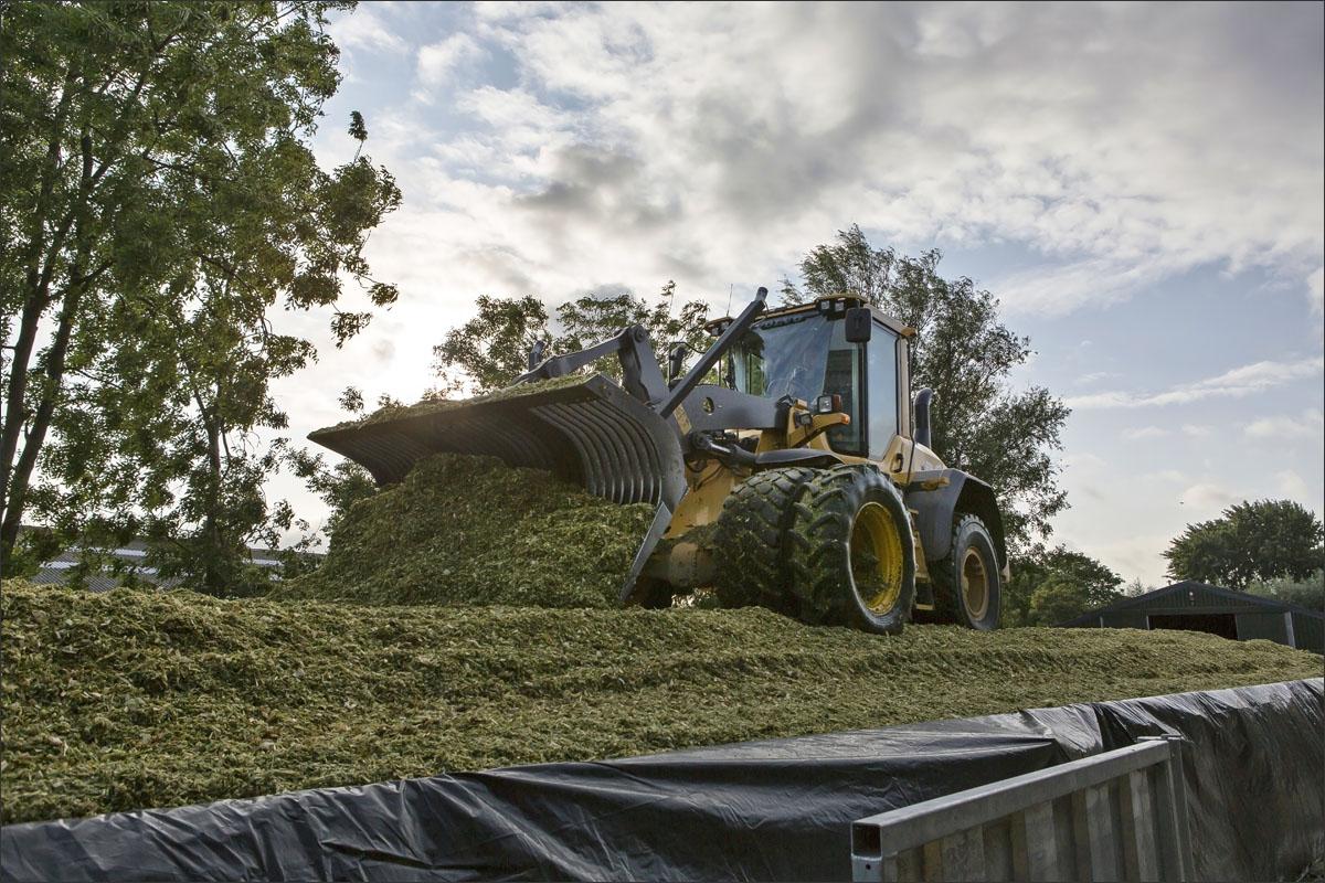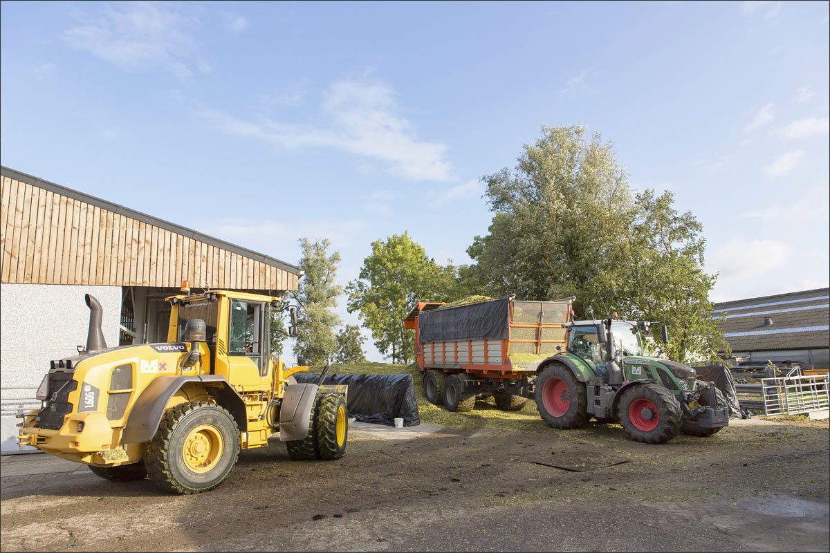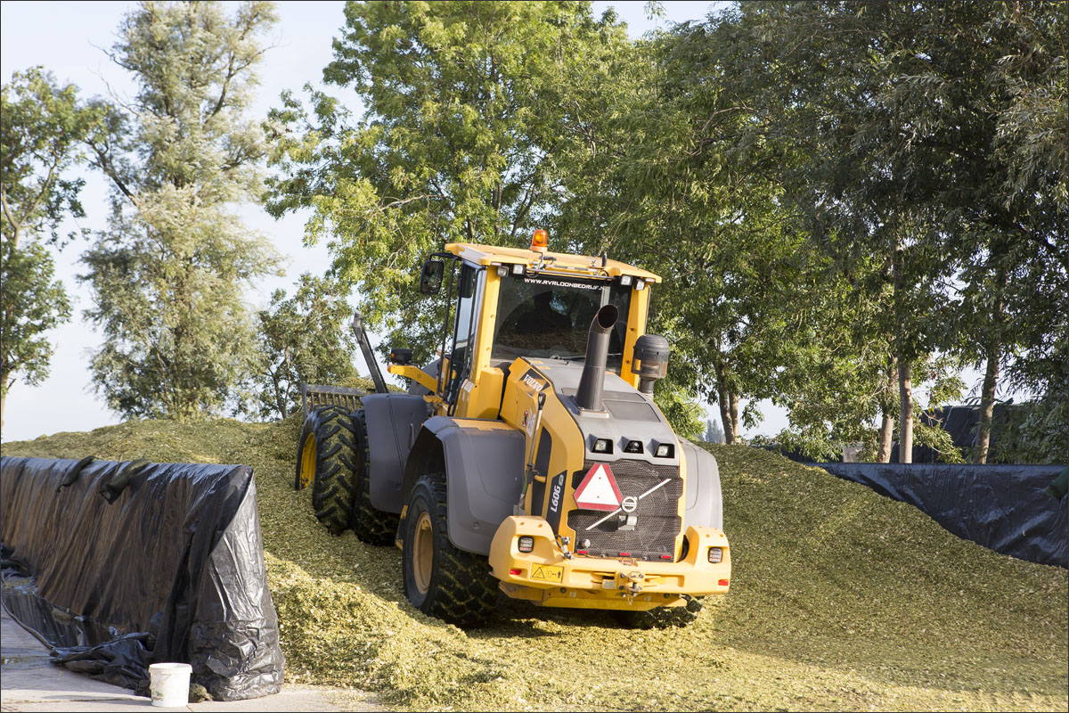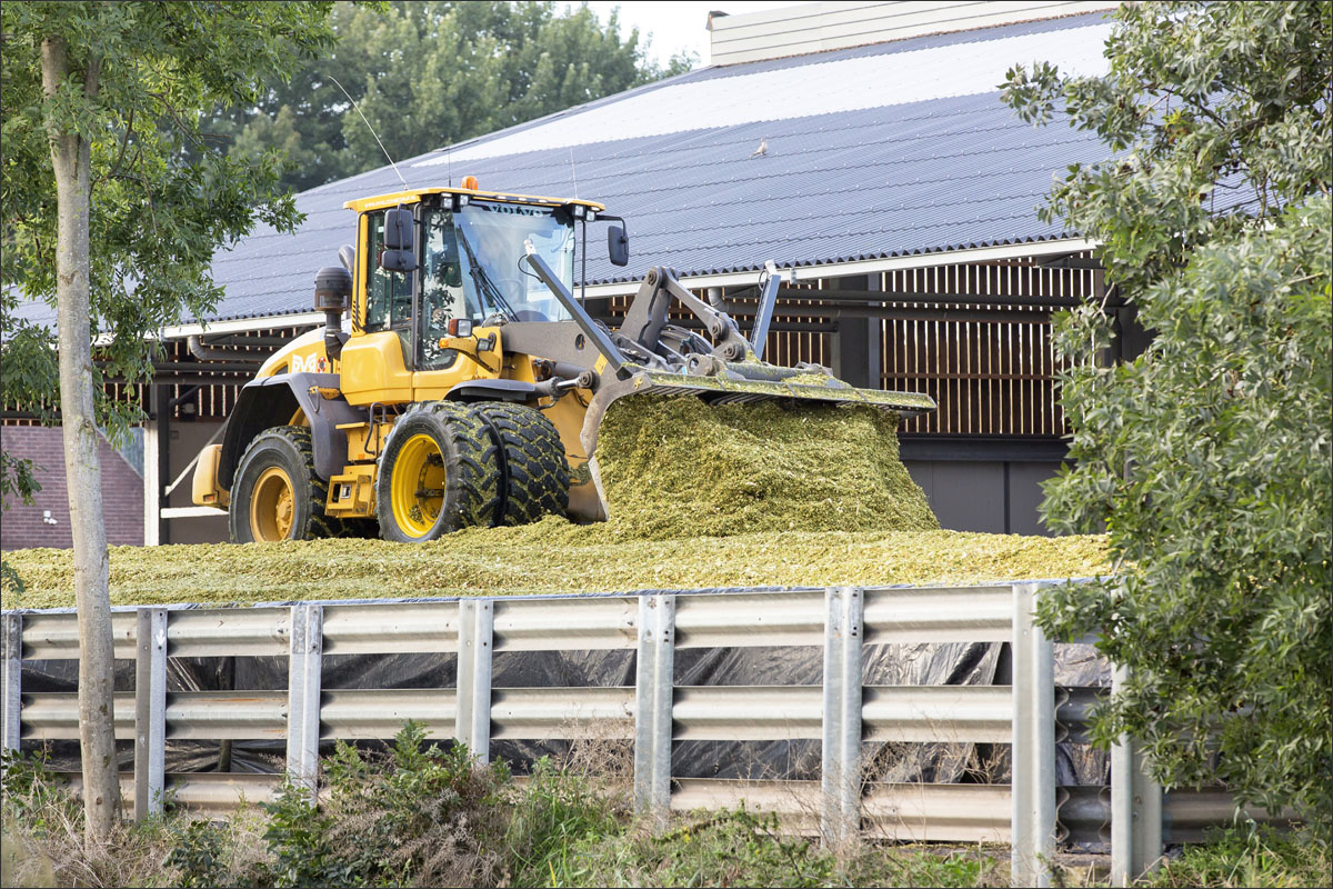 Foto’s van het mais hakselen en inkuilen bij veehouderijbedrijf Groene Hart Rund uit Zoetermeer.
