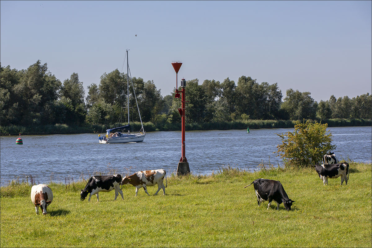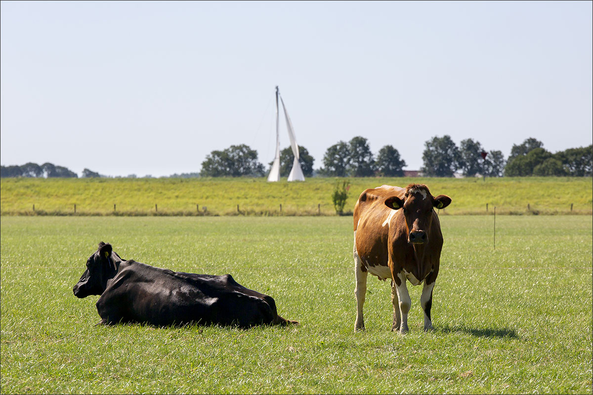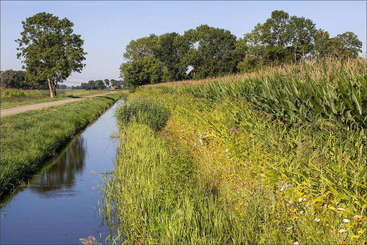 Foto’s van o.a. de Eilandbrug, boerderijen, koeien, gras inkuilen, bloemenrand langs akkers en recreatie op Kampereiland.