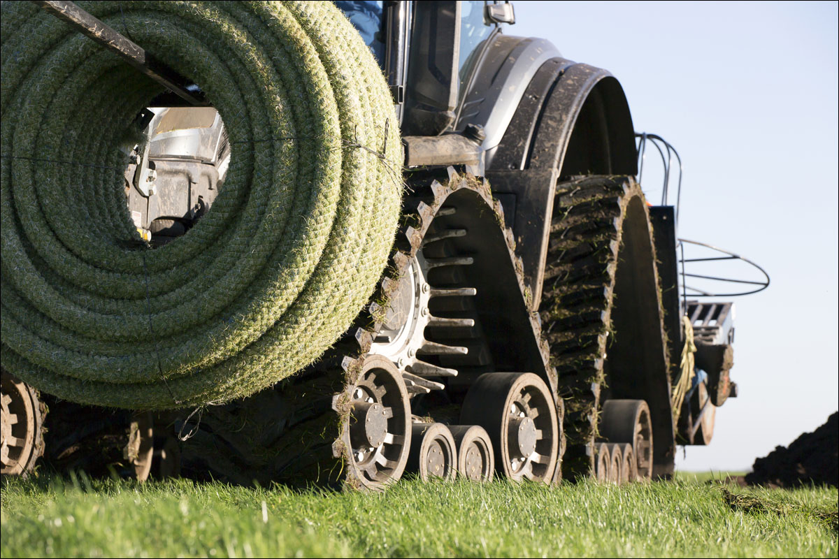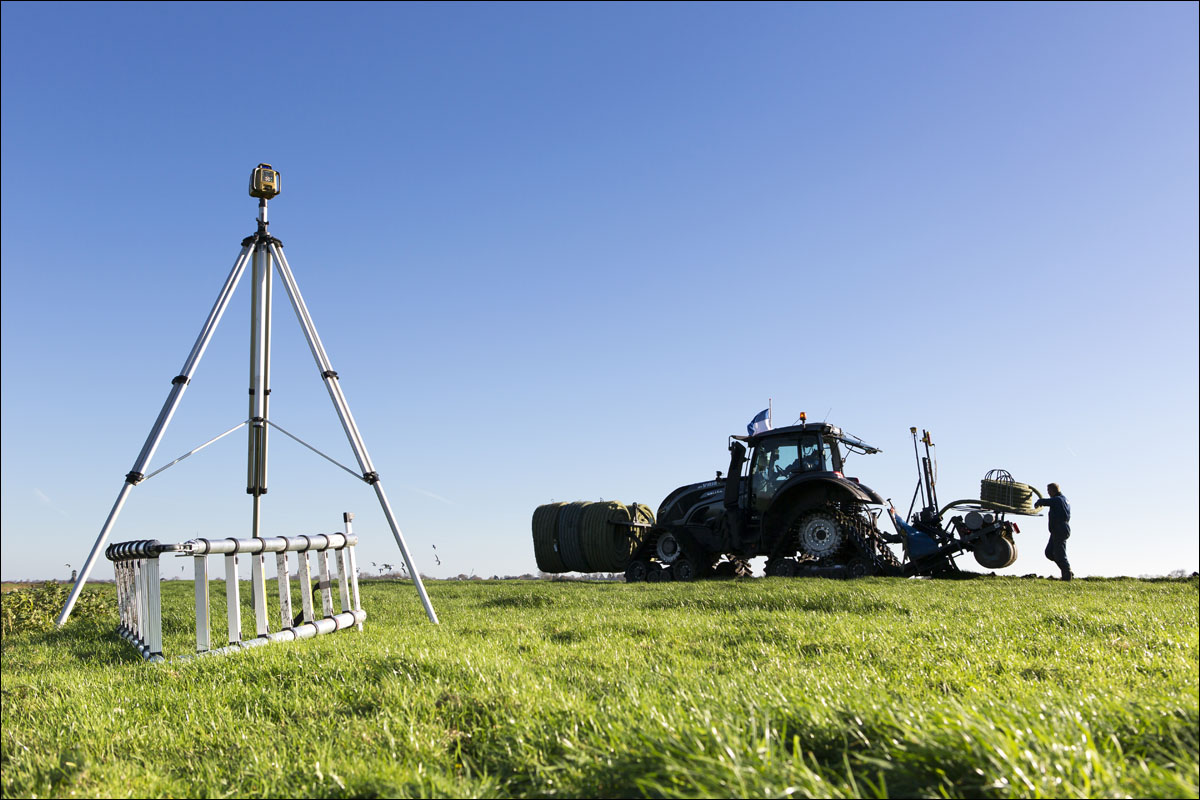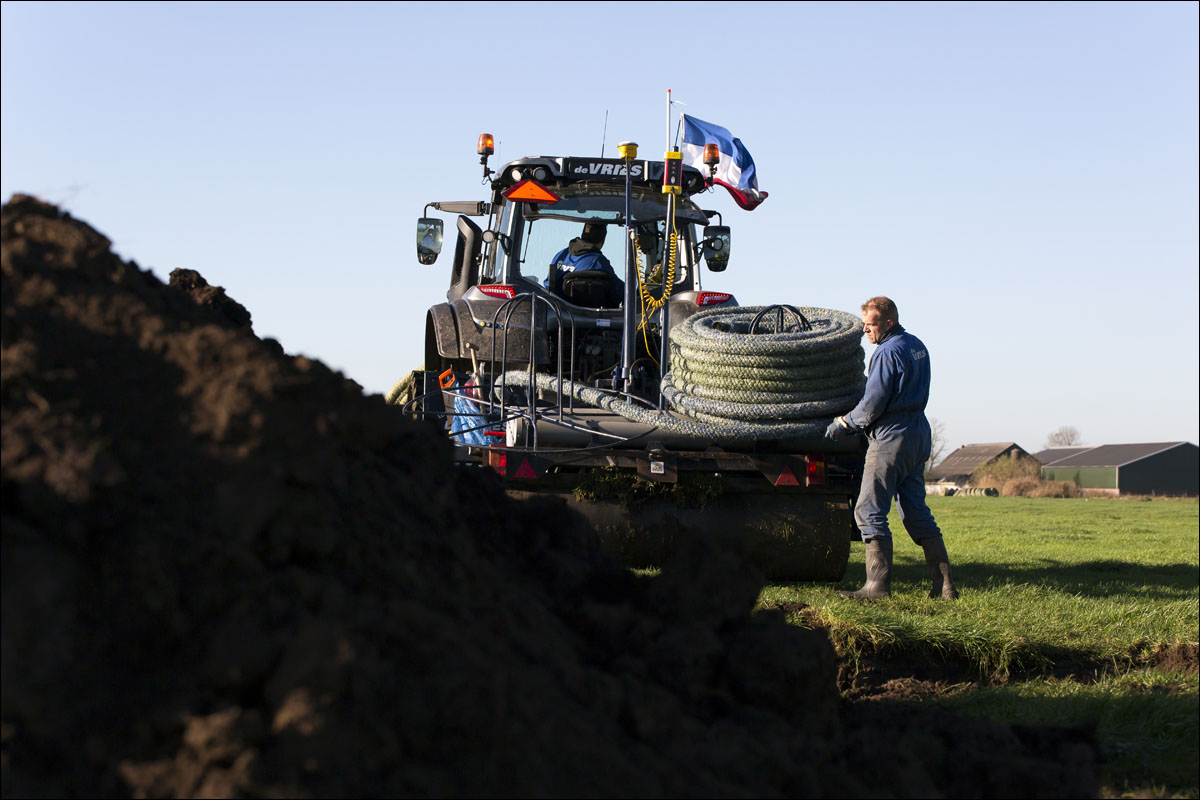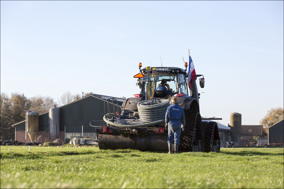 Voor de aanleg van ruim 550 kilometer onderwaterdrainage heeft De Vries Stolwijk B.V. hun Valtra-tractor om laten bouwen op tracks (rupsbanden).