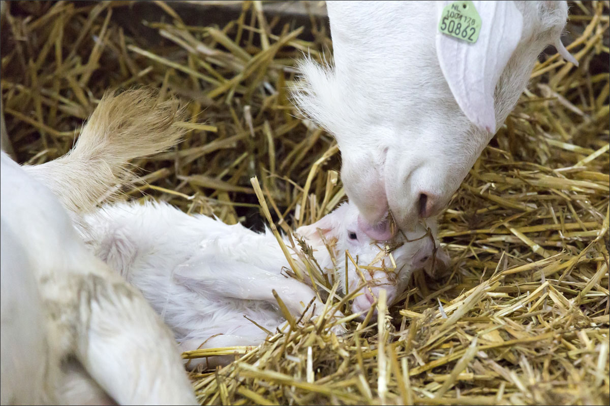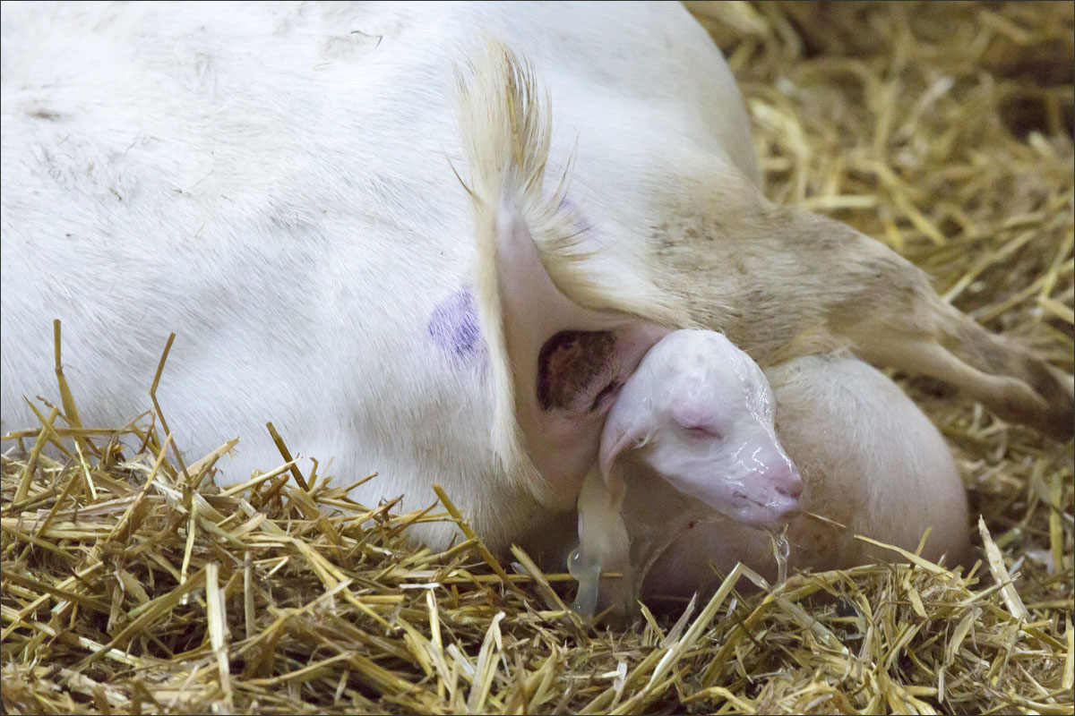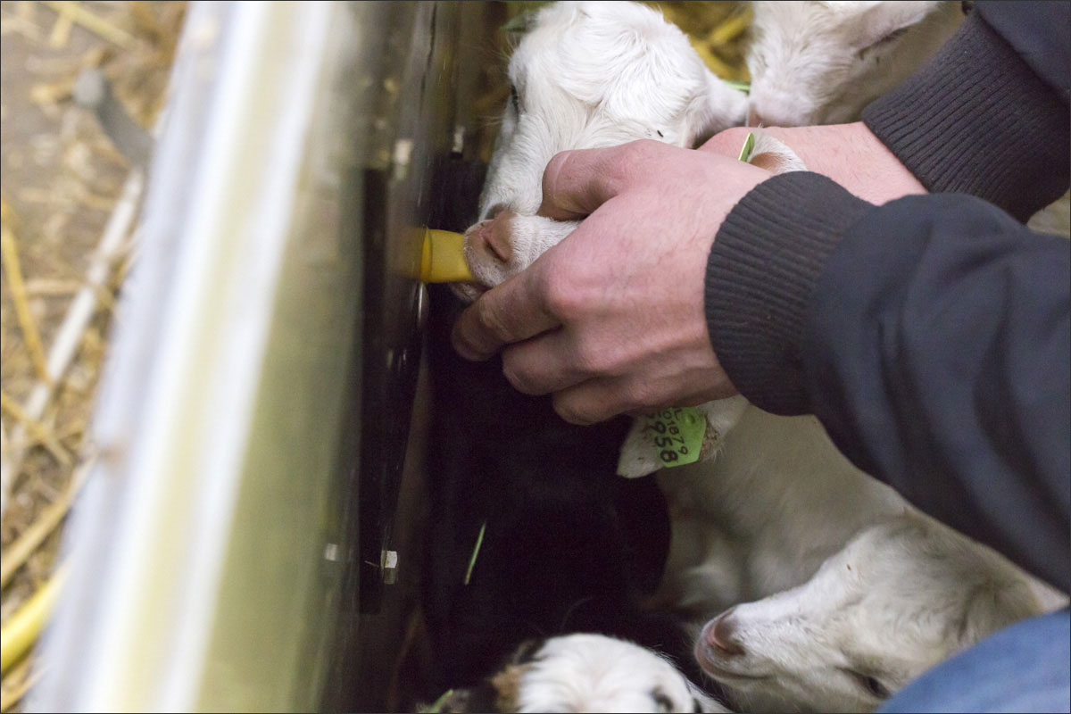 Foto’s van de geboorte van de lammetjes, de lammeren onder de warmtelamp en het voeren van de lammetjes.