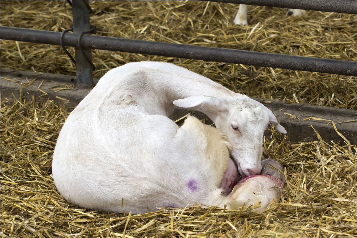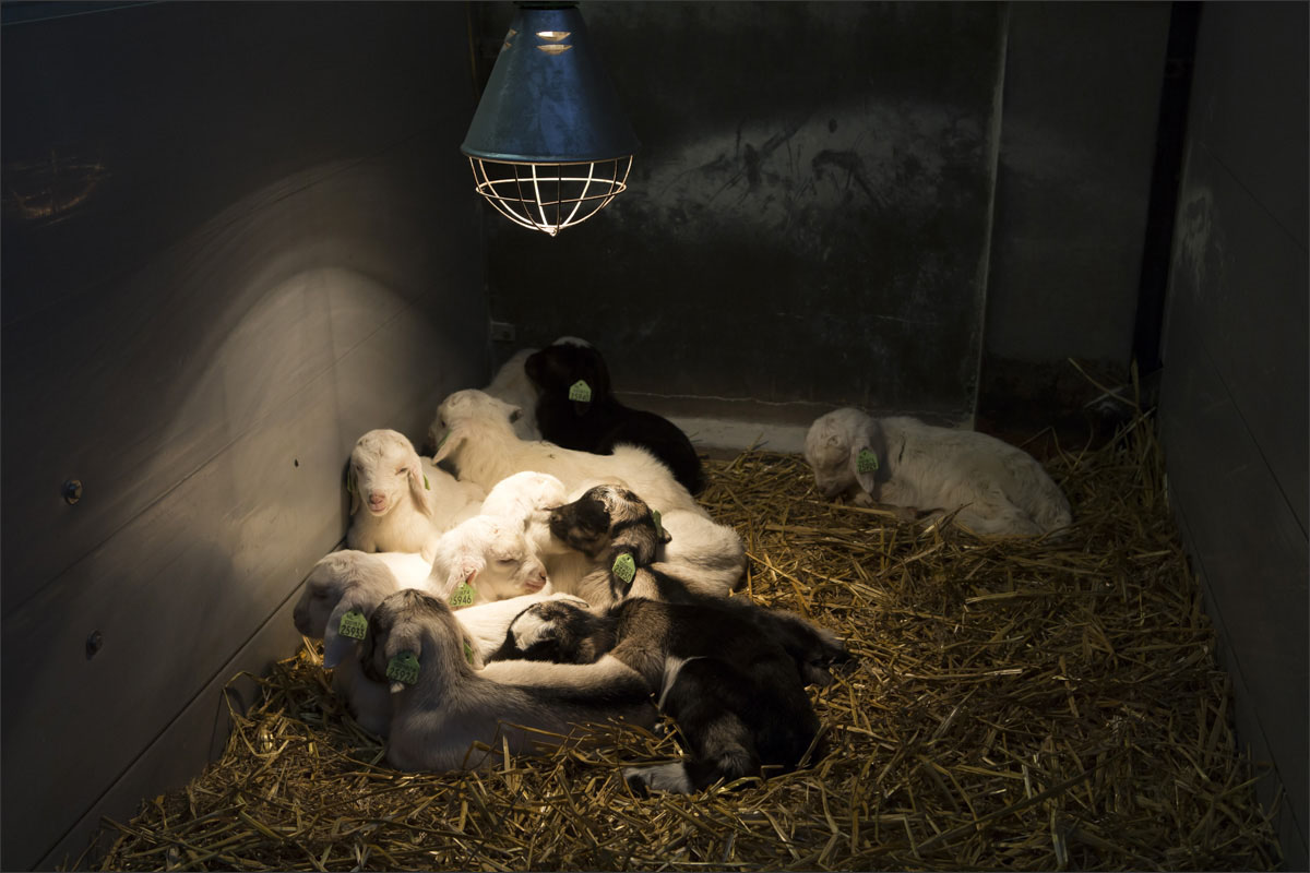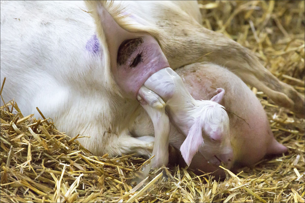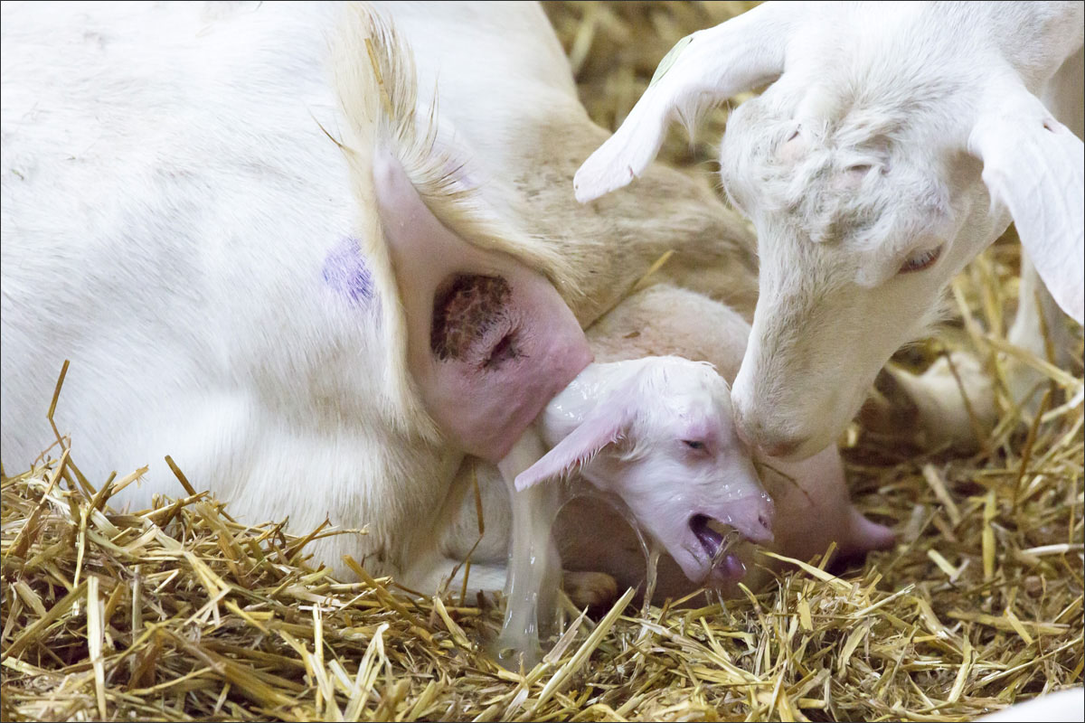 Foto’s van de geboorte van de lammetjes, de lammeren onder de warmtelamp en het voeren van de lammetjes.