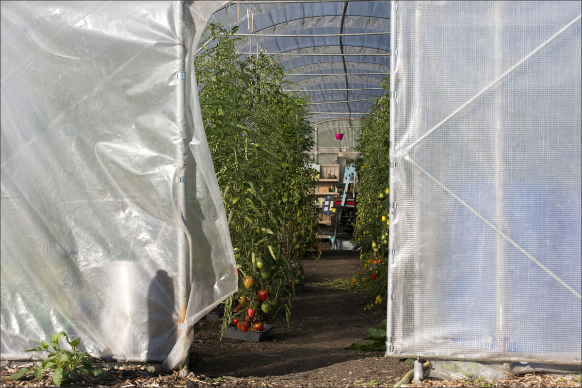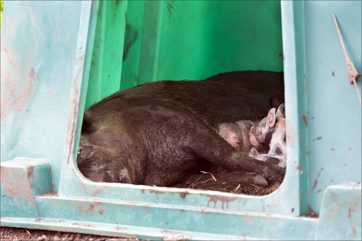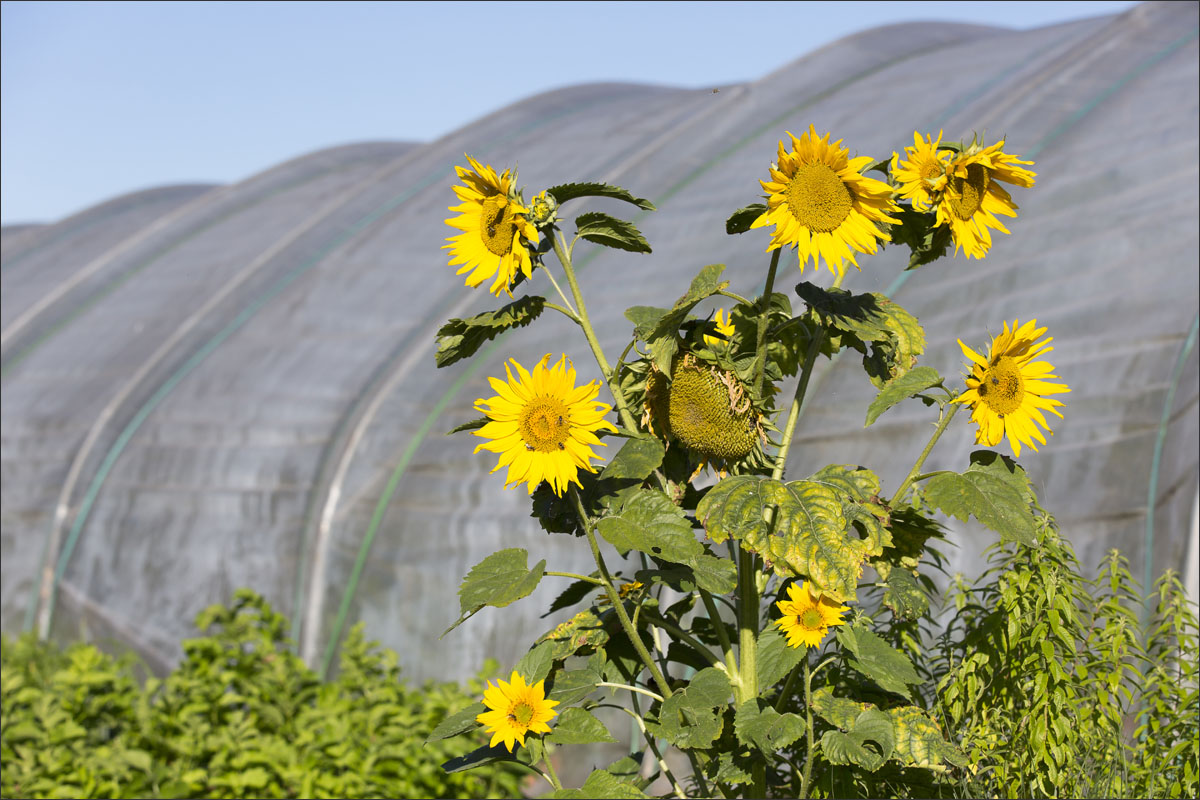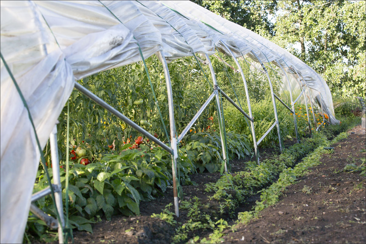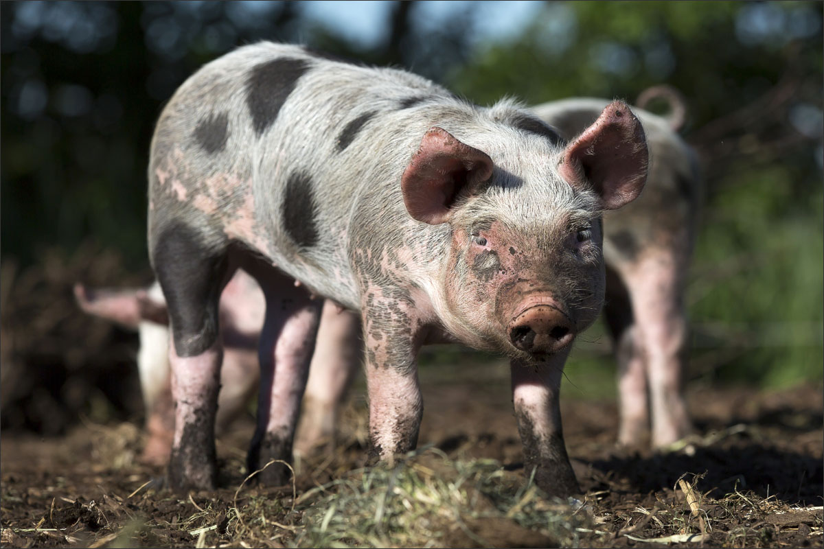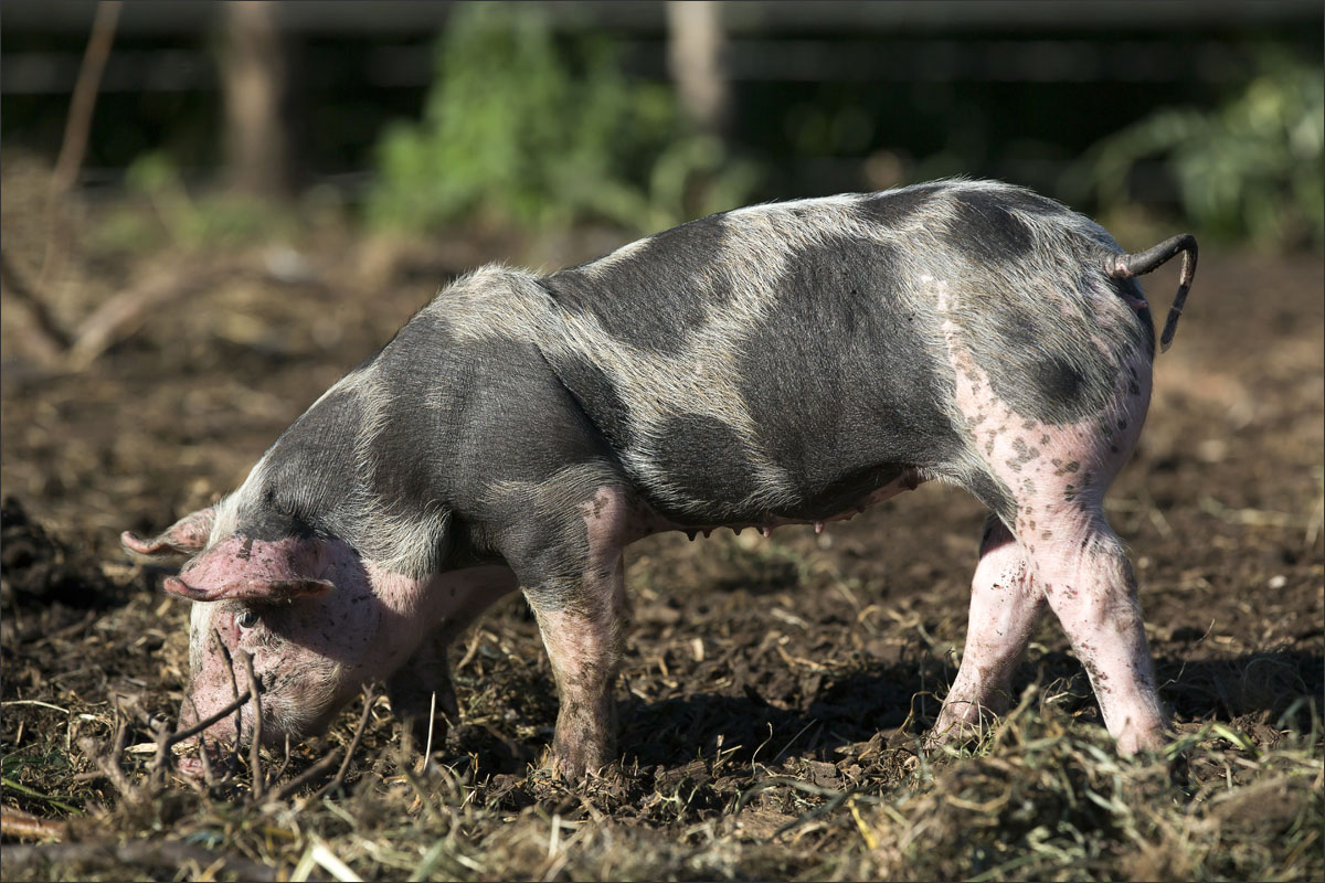 Foto’s van o.a. de boerderij, de bloeiende akkerrand, de biologische moestuin en het varken met haar biggen.