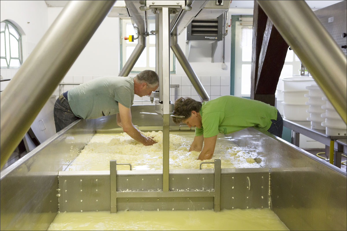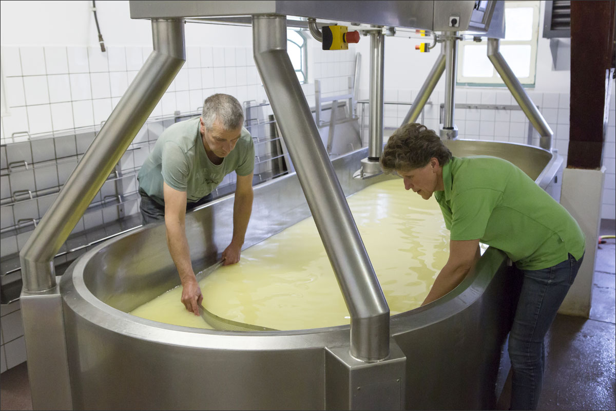 Foto’s van het maken van boerenkaas op de boerderij van de familie van Schie uit Polsbroek.