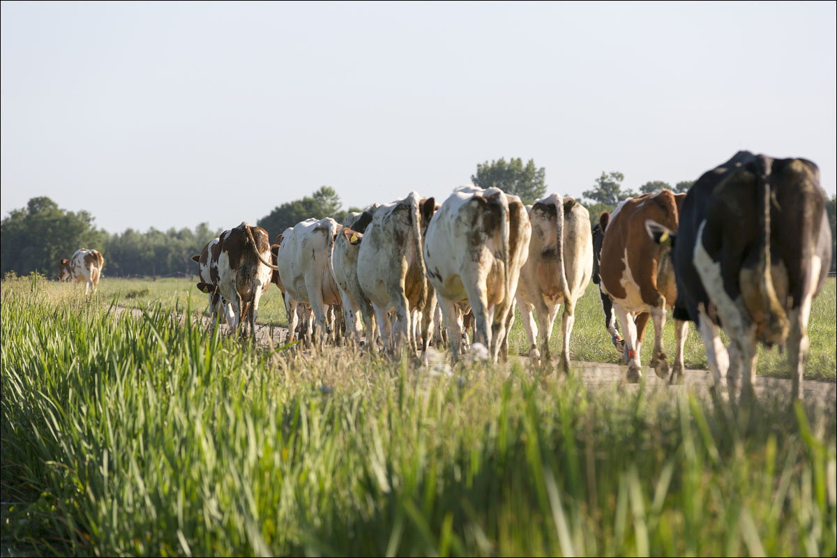 Foto’s van de weidegang (begrazen door koeien van graslanden in de melkveehouderij) en de koeien op het pad naar de weide na het melken.