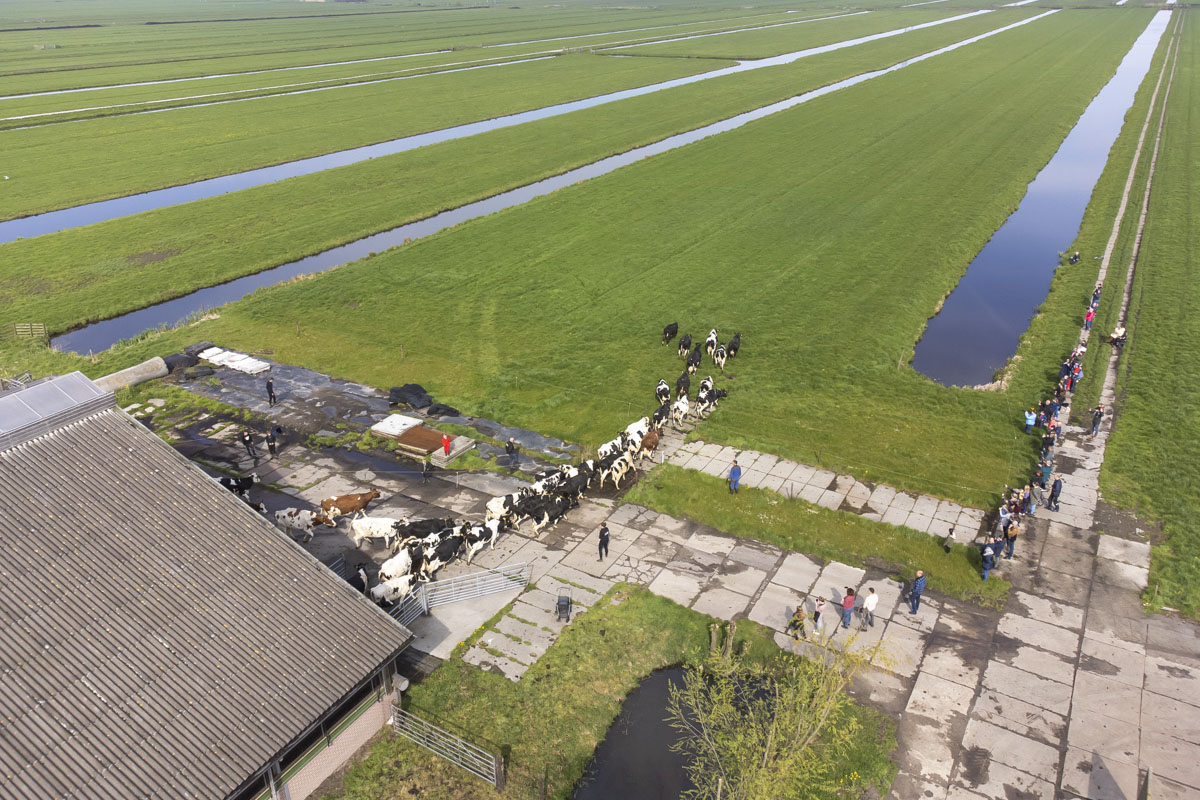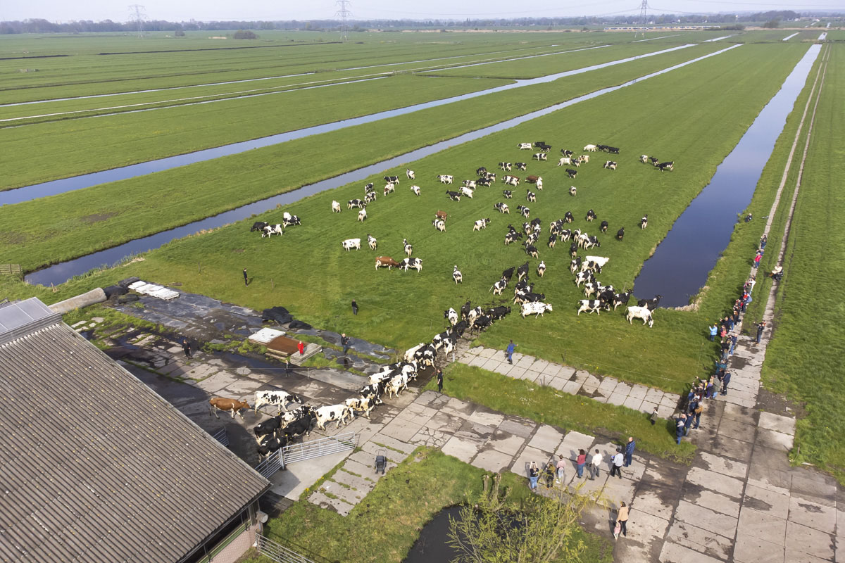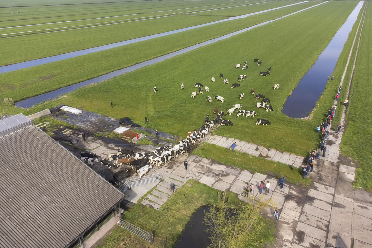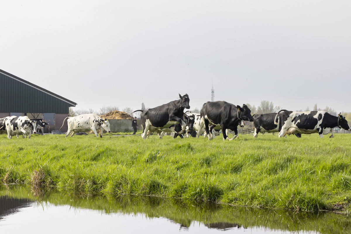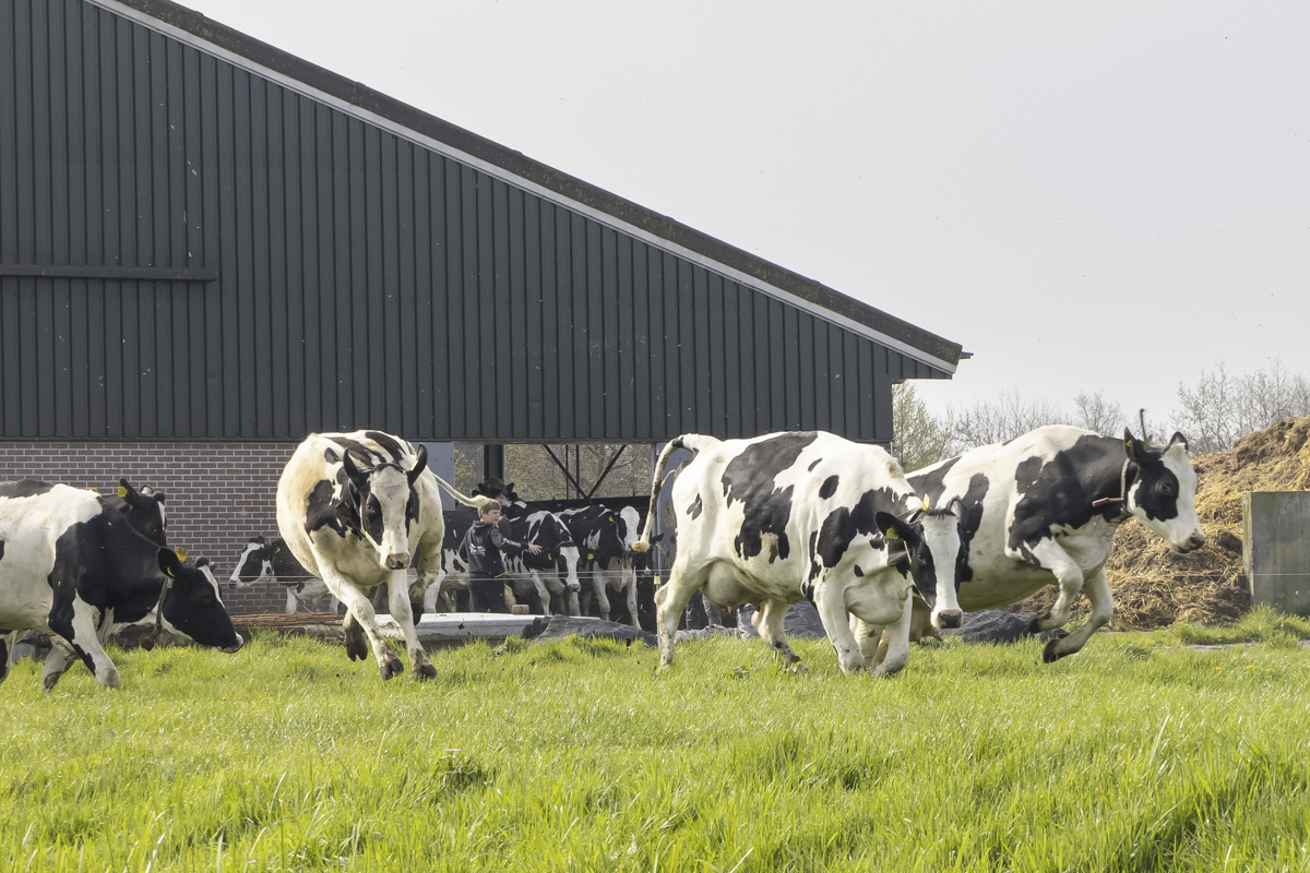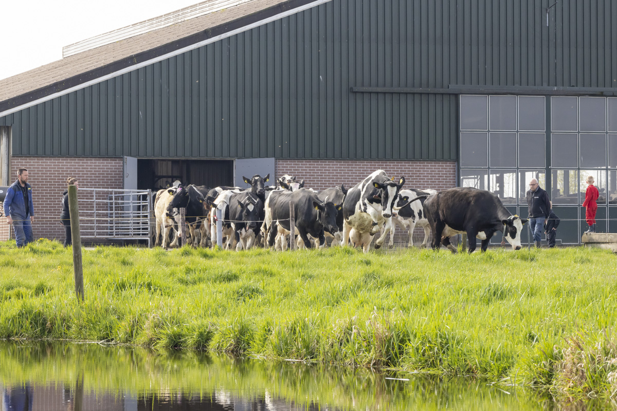 De koeien gaan voor het eerst weer naar buiten de weide in.
