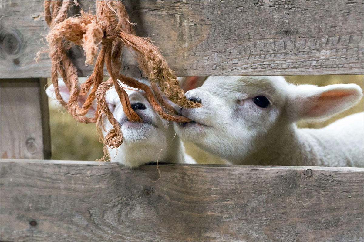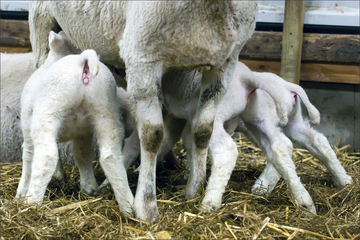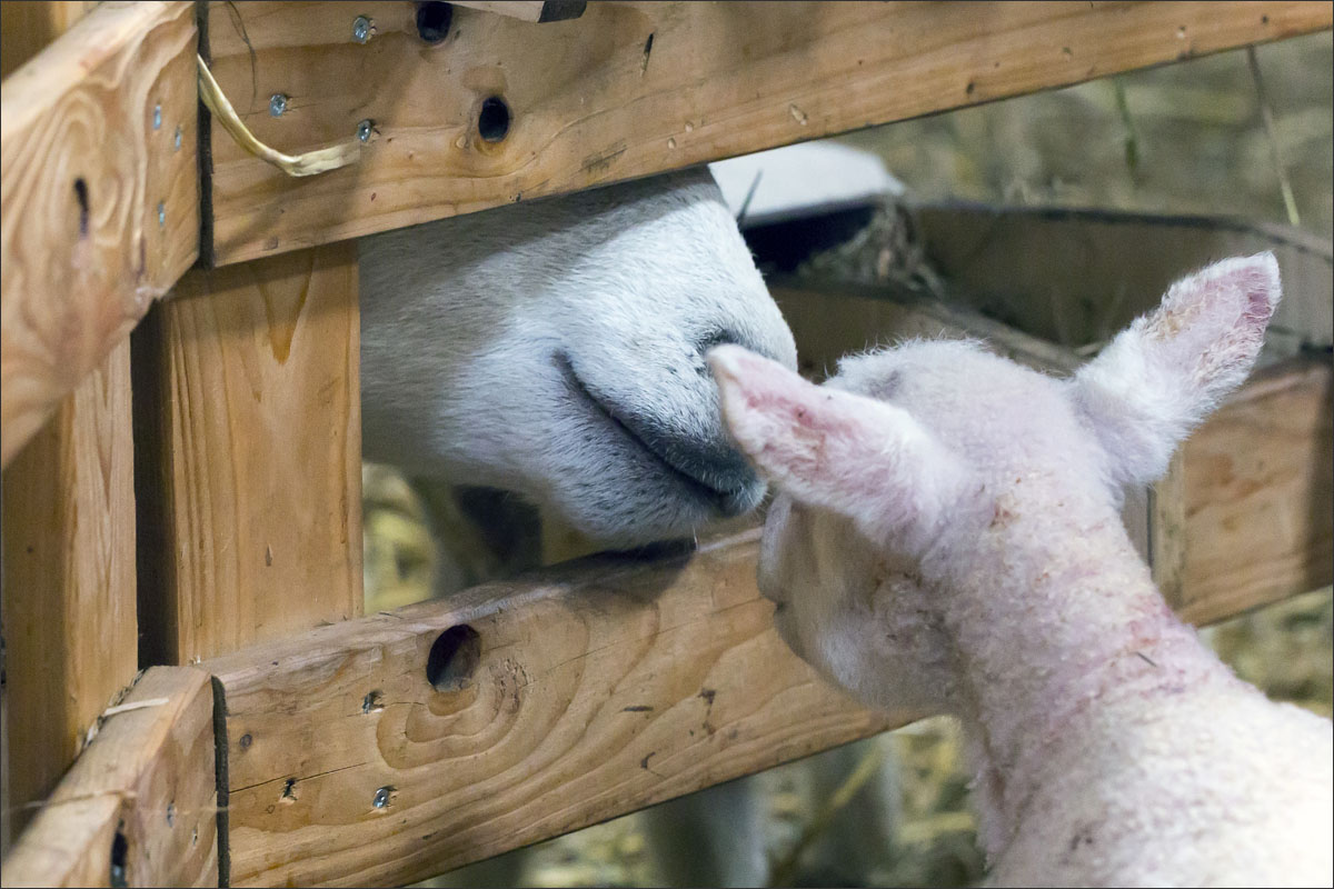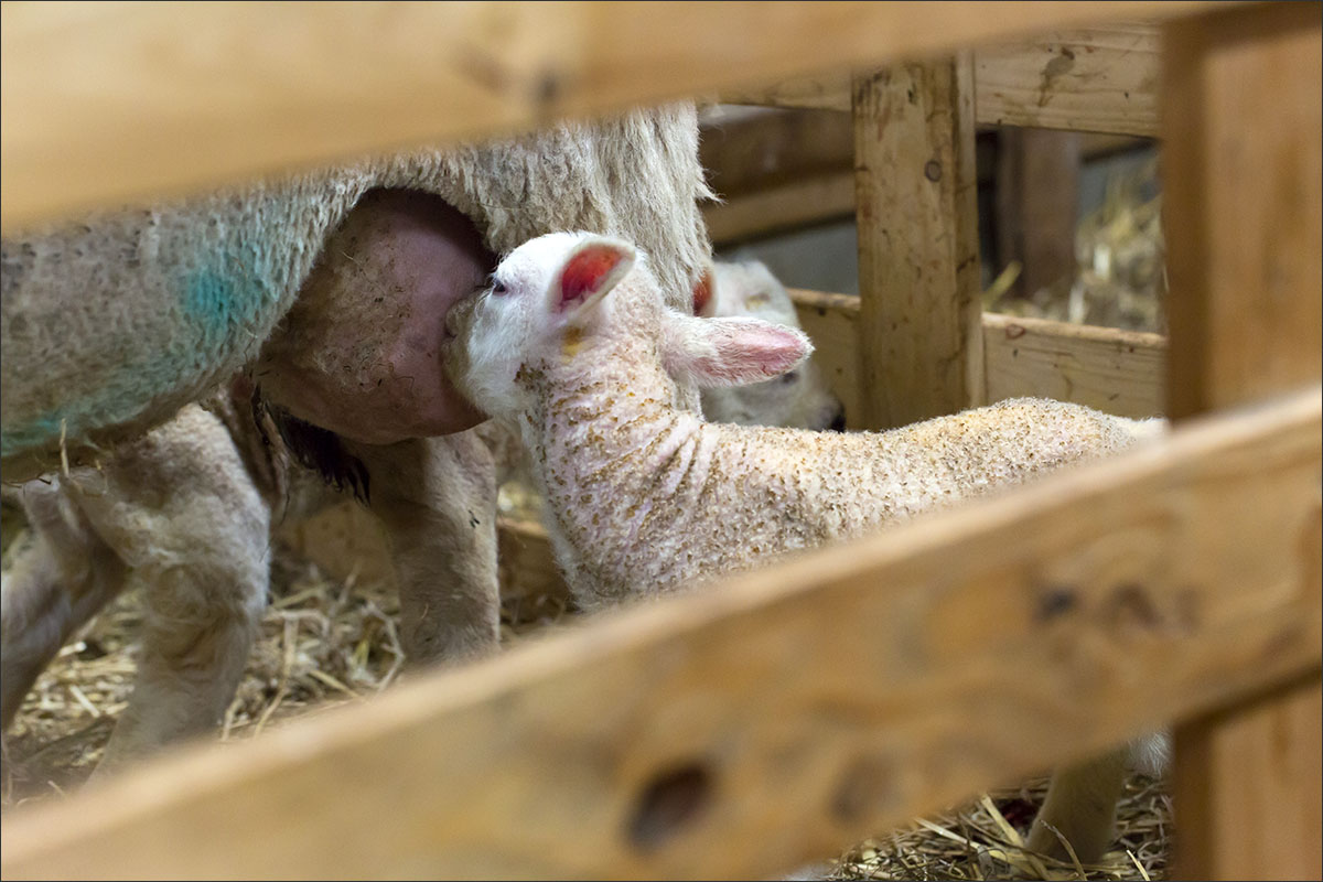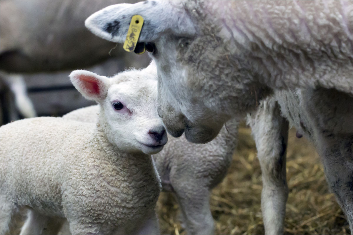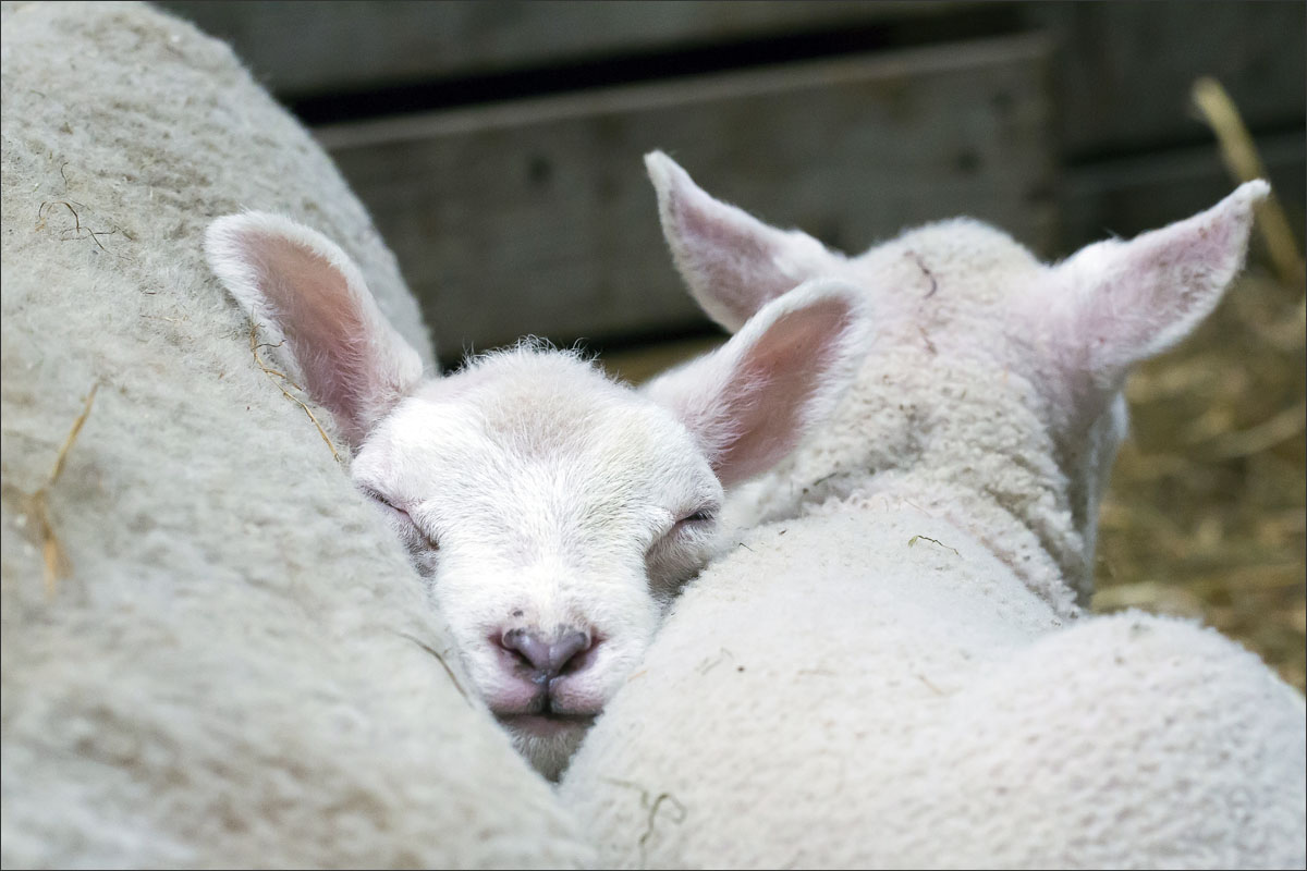 Foto’s van de lammeren binnen in de schuur op boerderij Zonneveld.