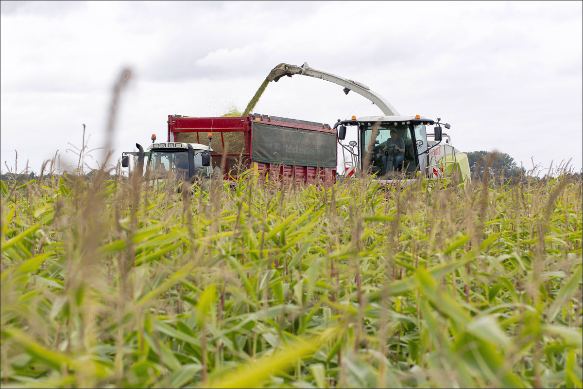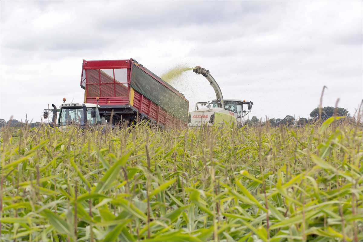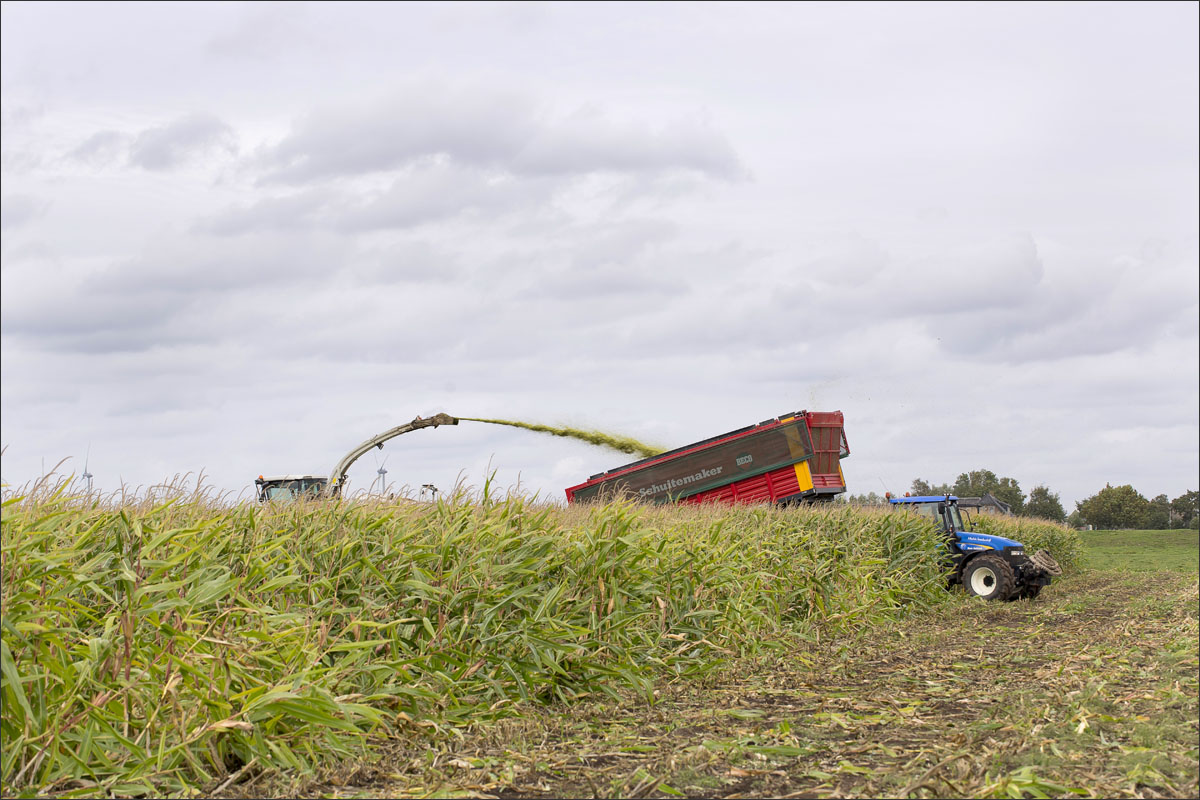 Foto’s van het mais hakselen op het land van de familie Zonneveld.
