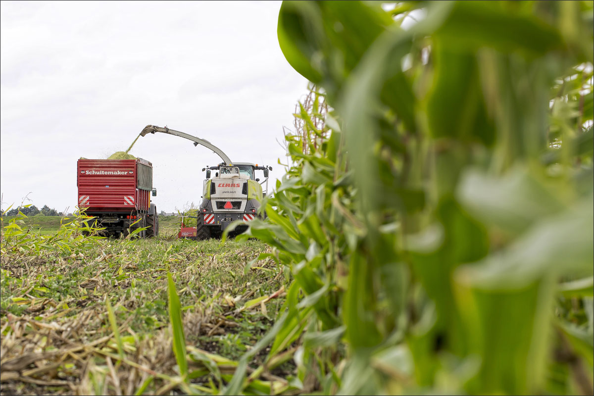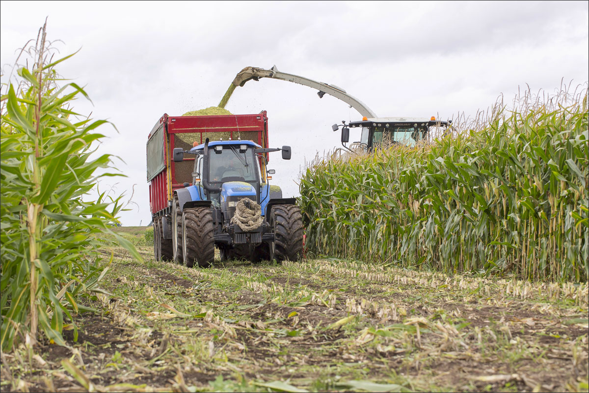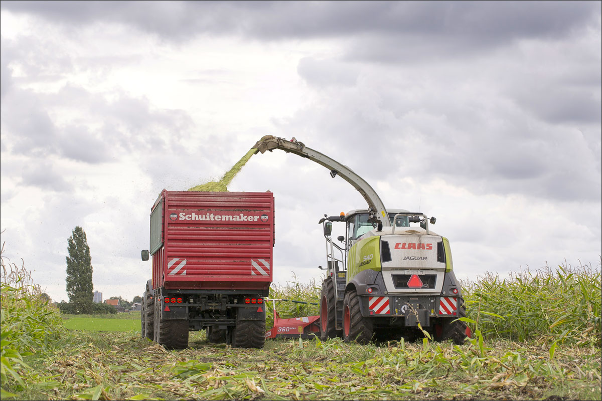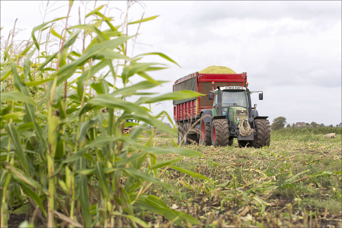 Foto’s van het mais hakselen op het land van de familie Zonneveld.