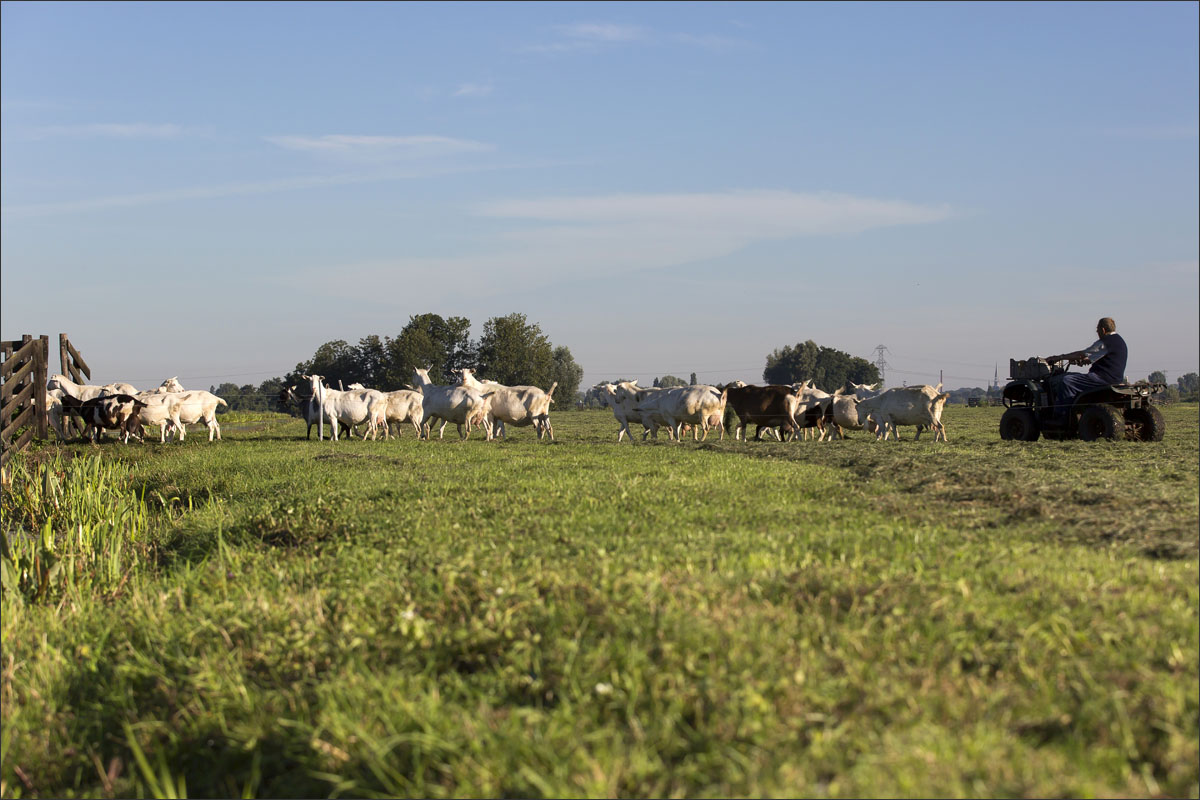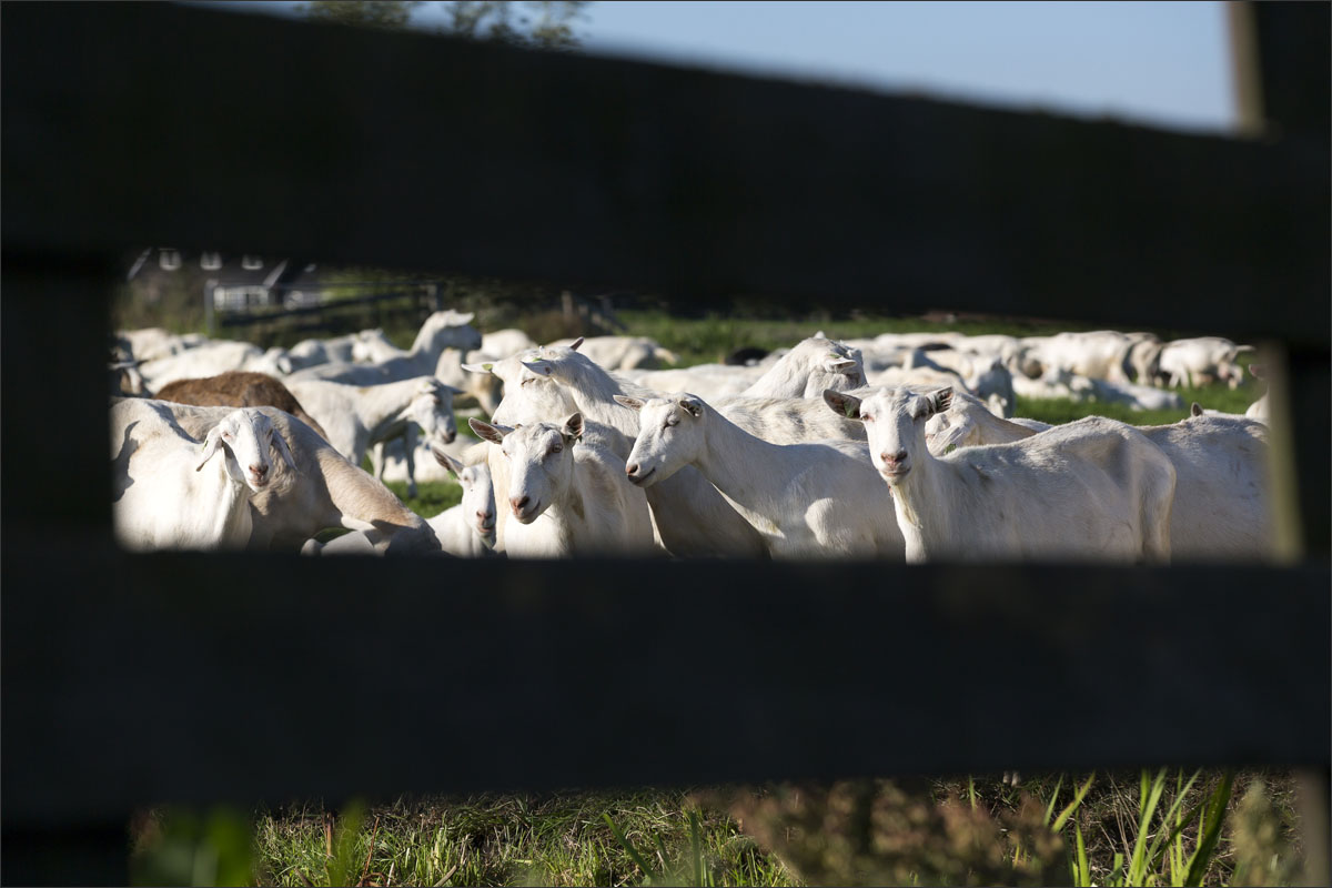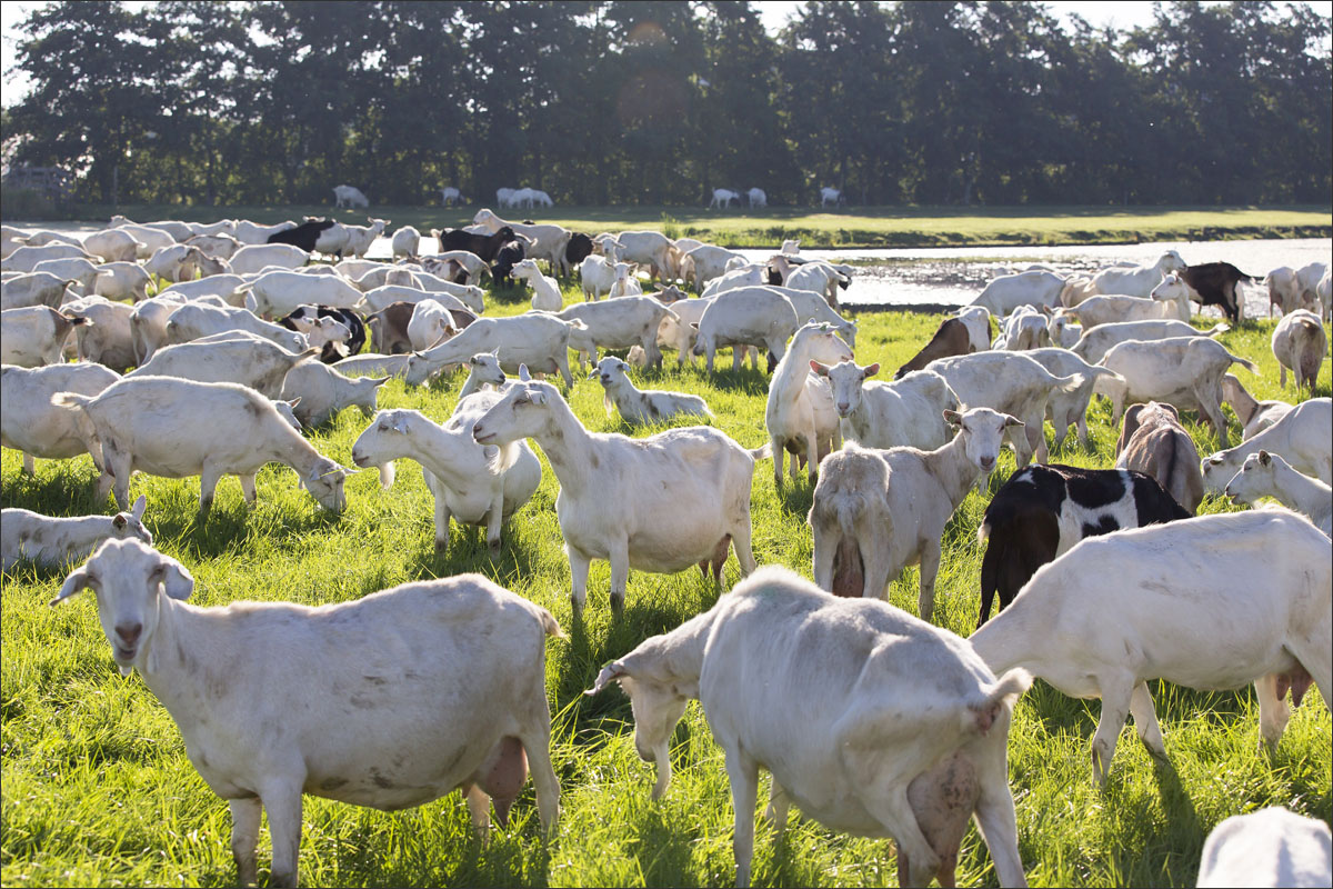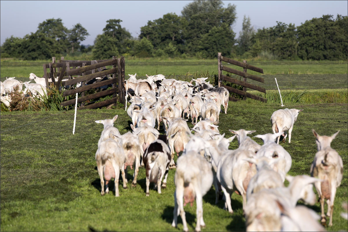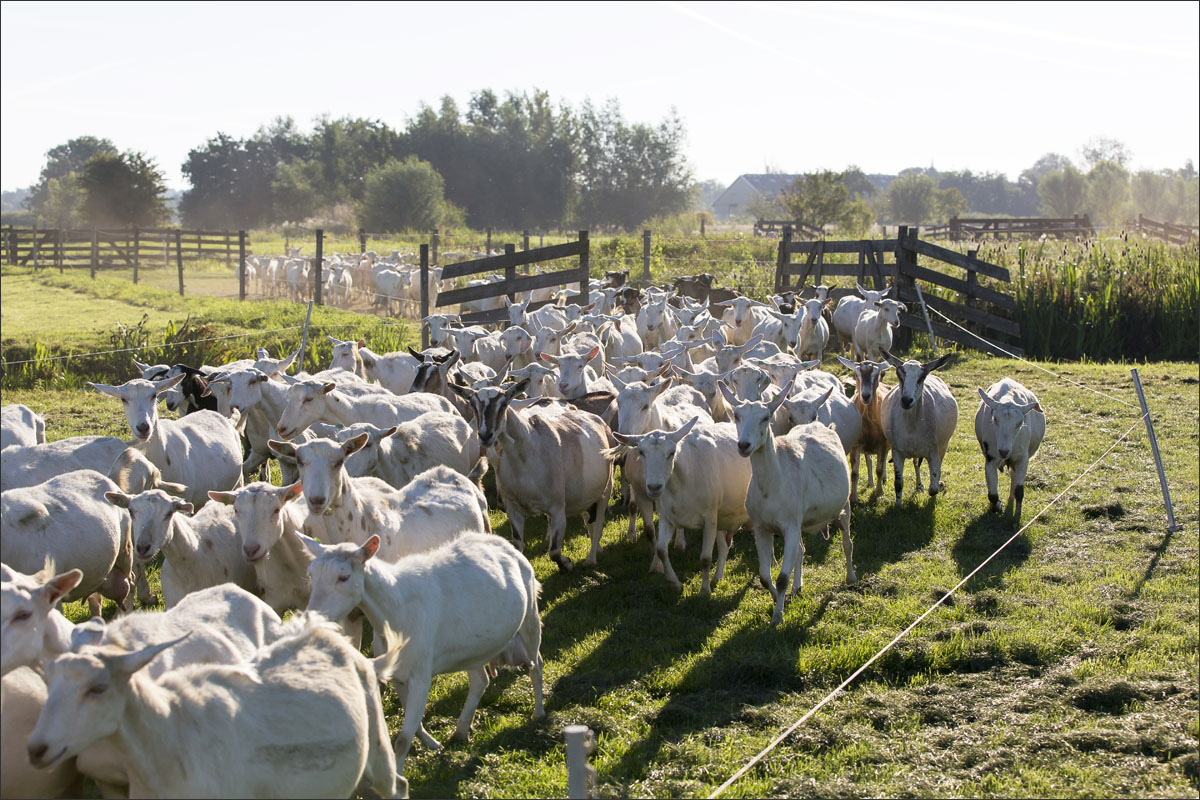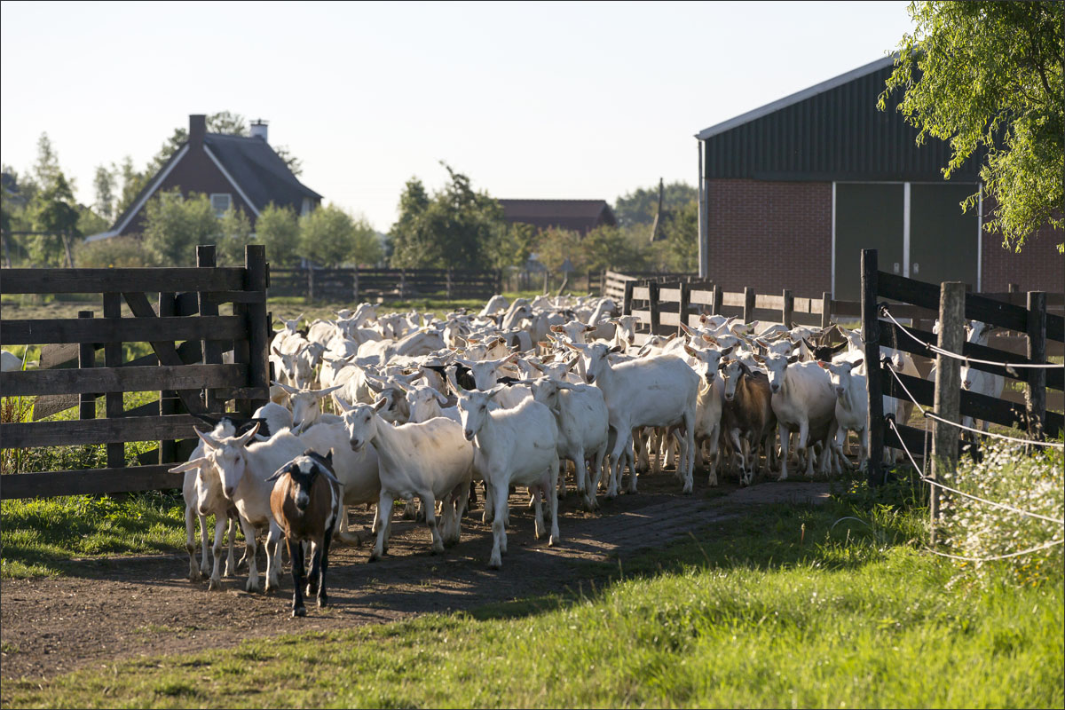 Na het melken gaan de geiten weer de weide in (weidegang).
