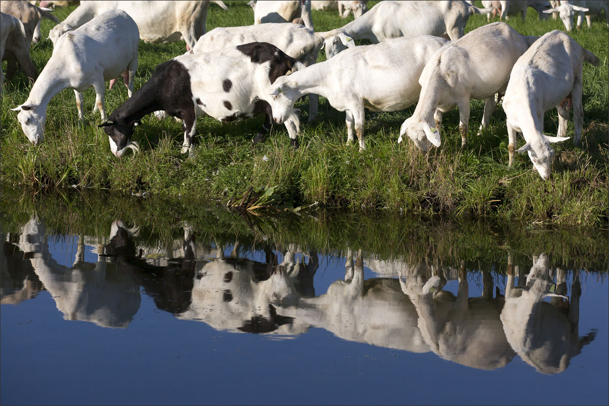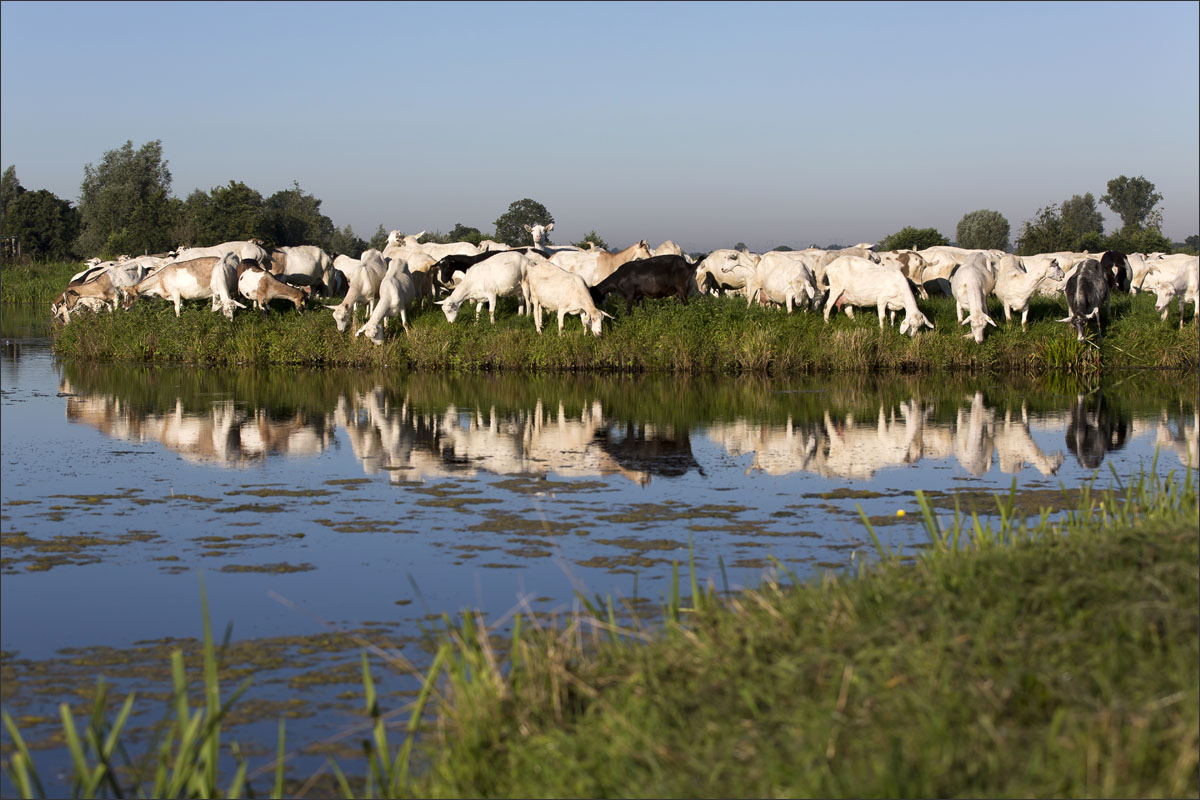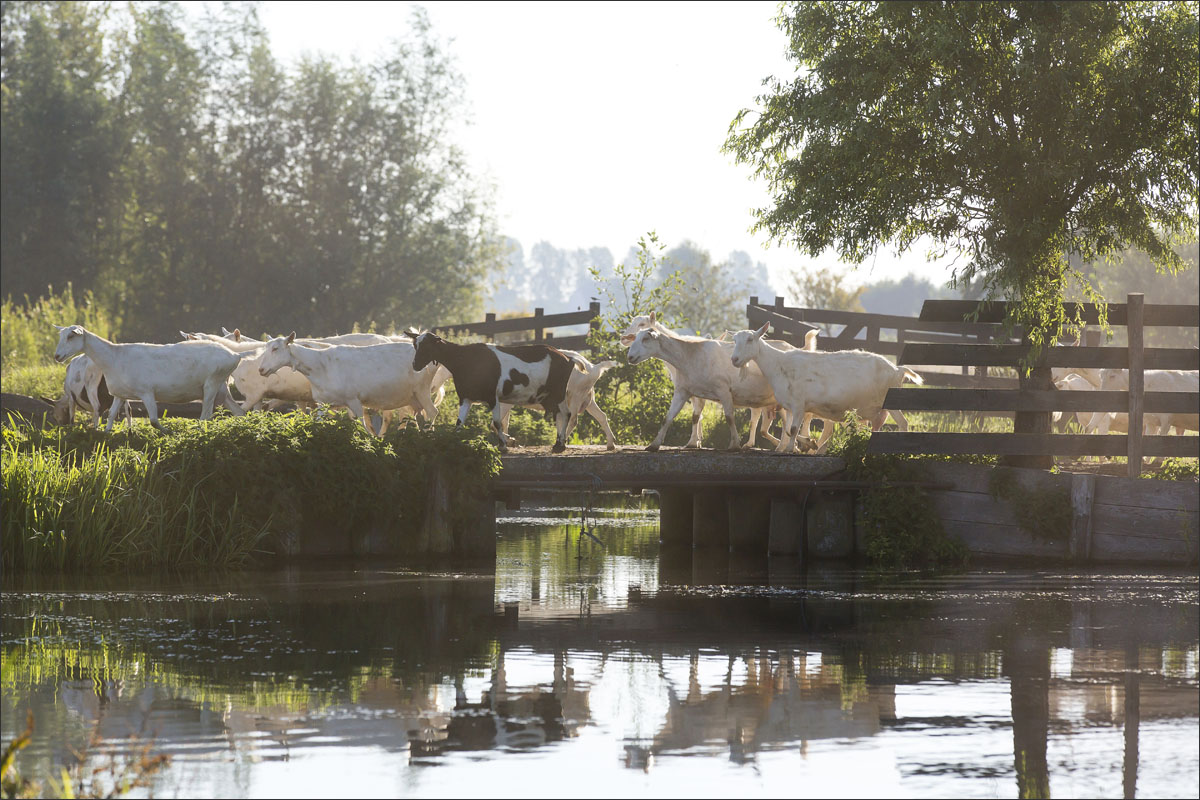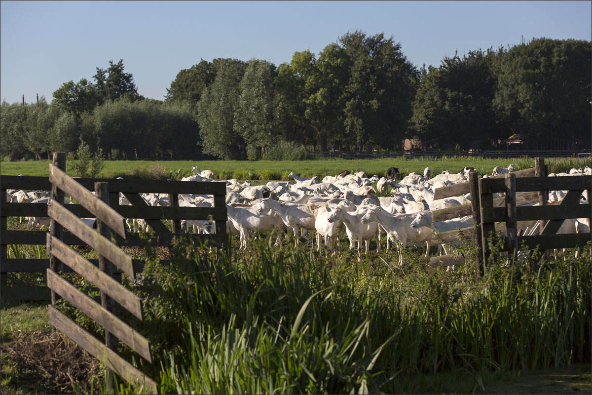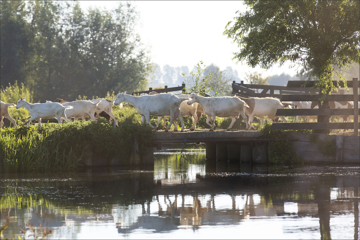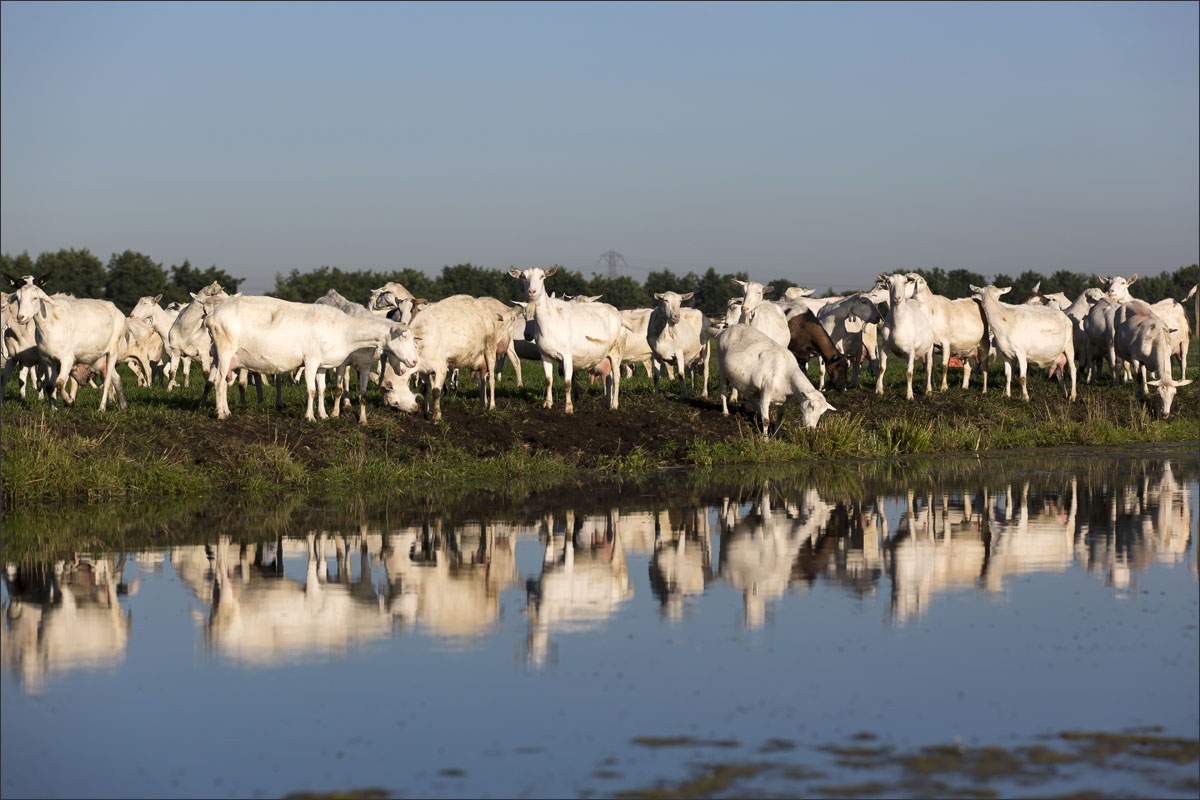 Na het melken gaan de geiten weer de weide in (weidegang).