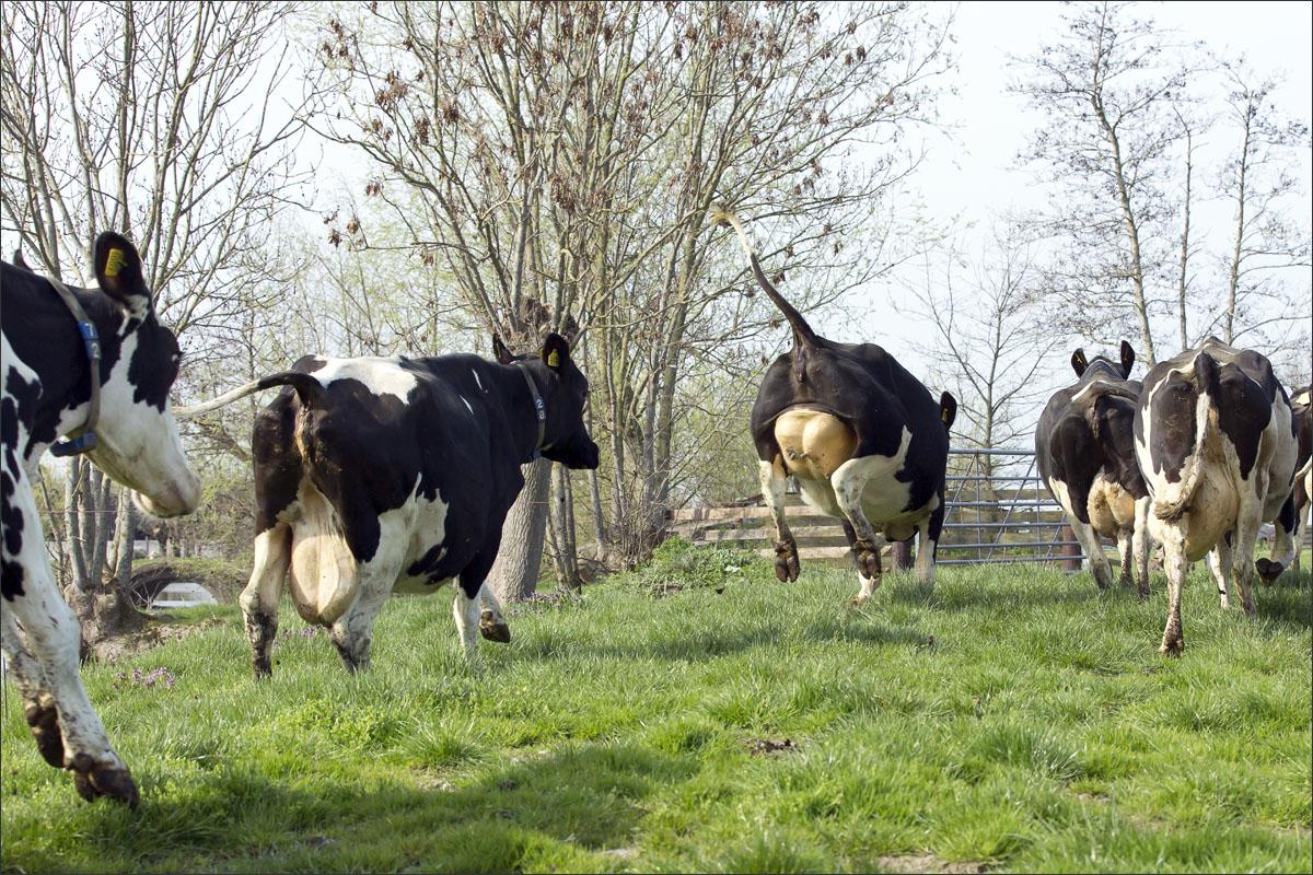 Foto’s van o.a. de koeien en kalveren in de stal, het insemineren van de melkkoe en de koeiendans (de koeien weer de wei in na een lange winter op stal).