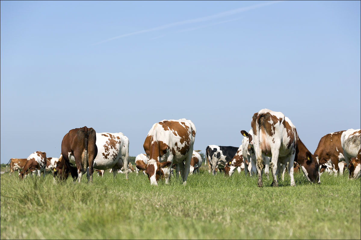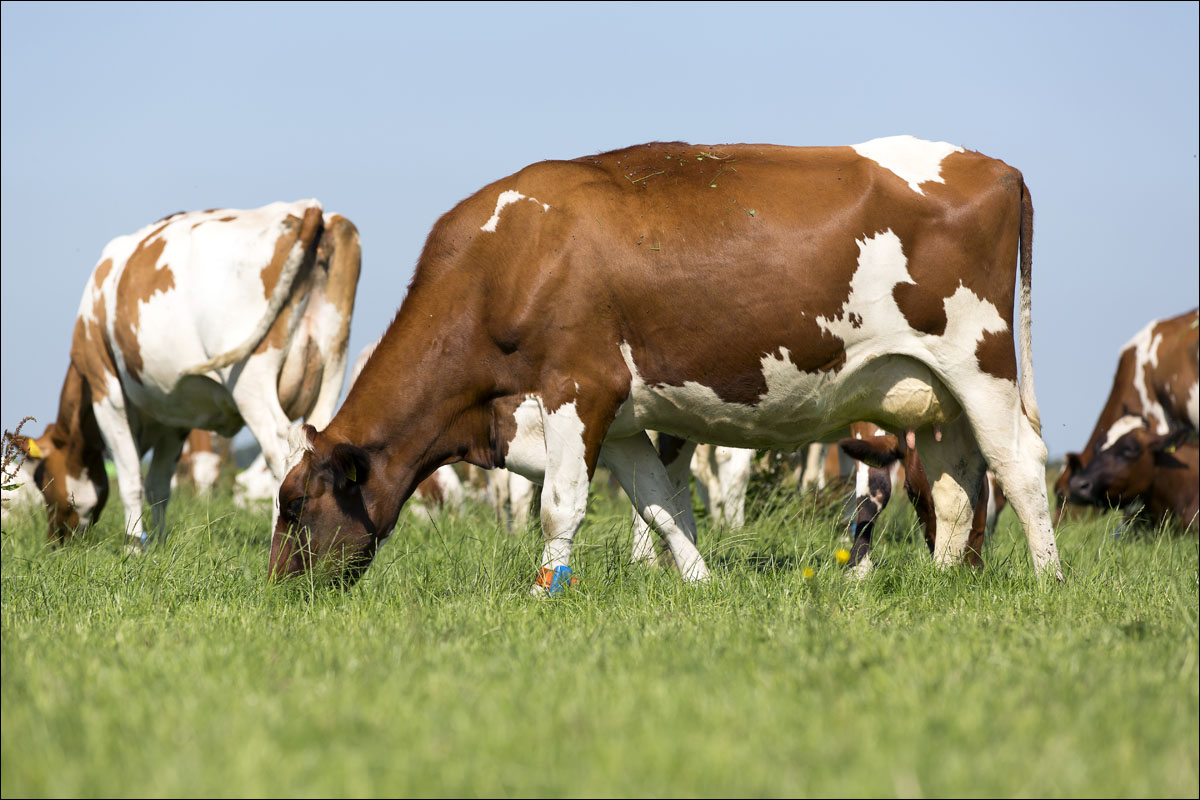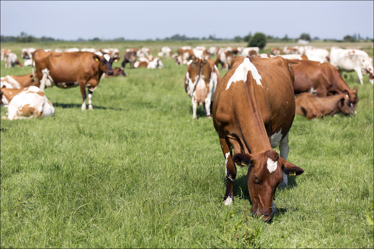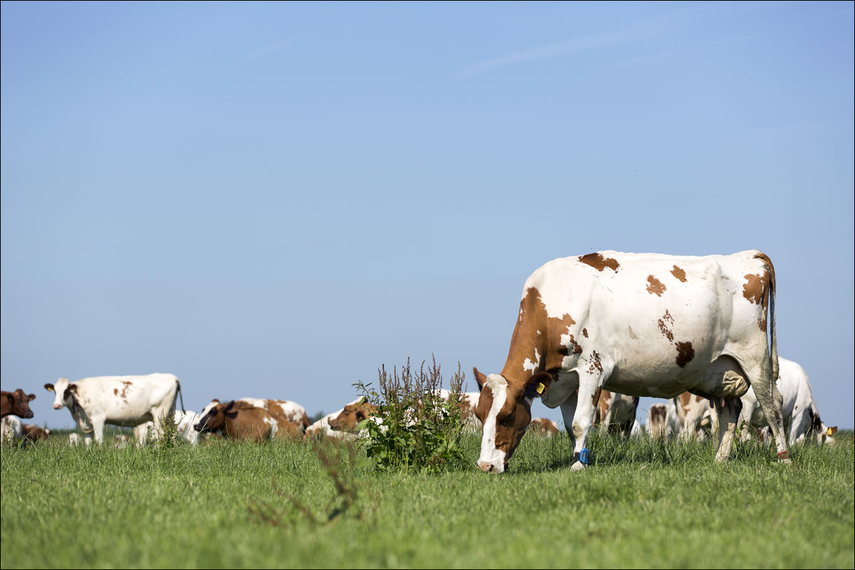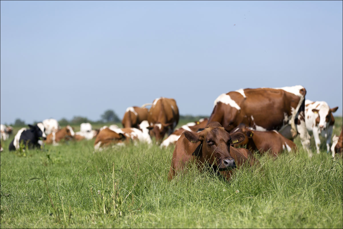 Foto’s van de roodbonte koeien in de wei (weidegang) bij biologische boerderij BoerBert.