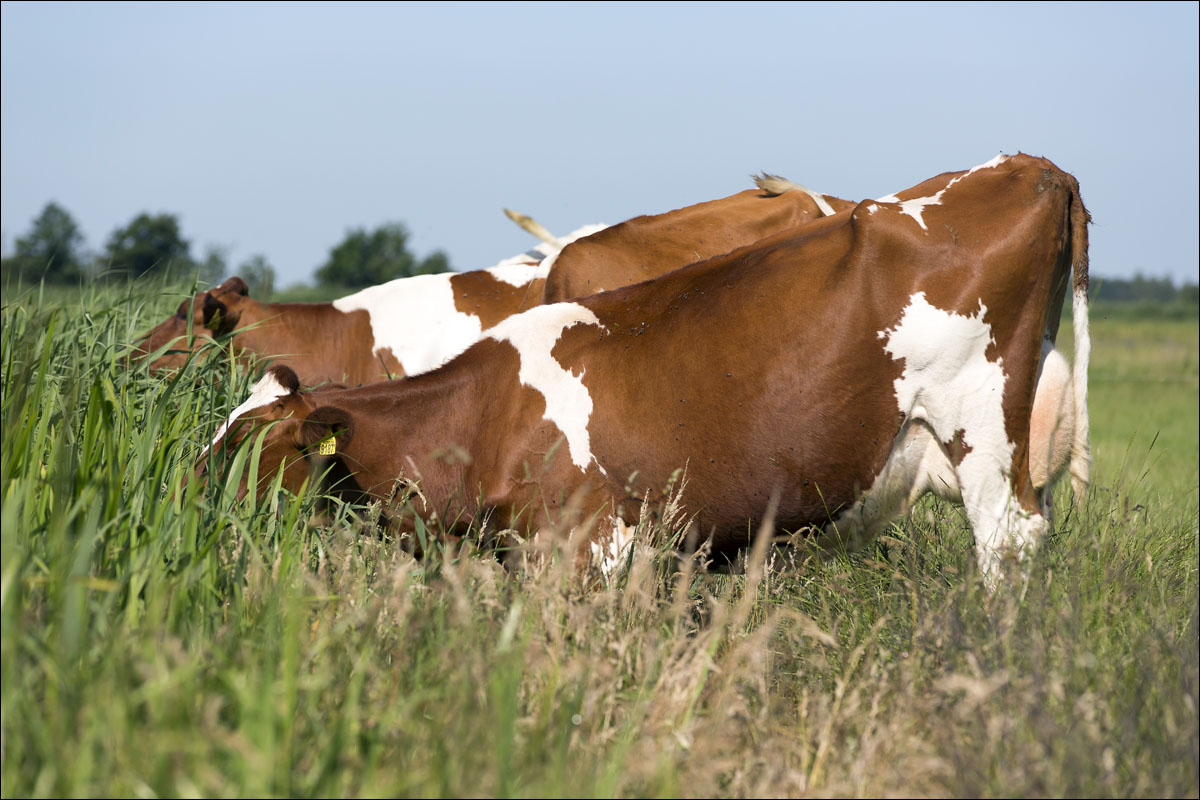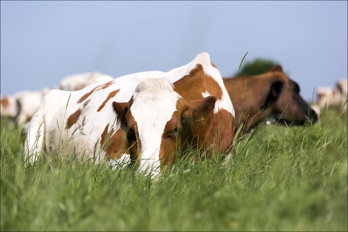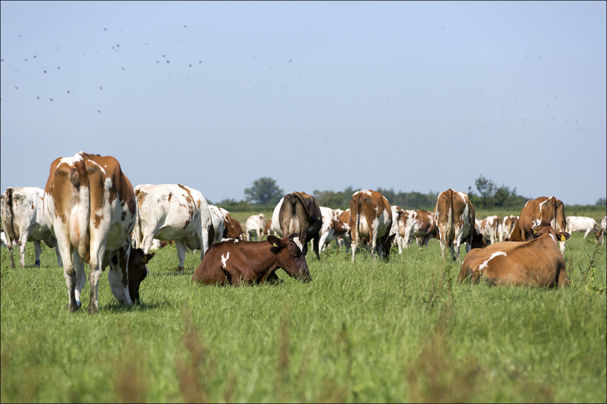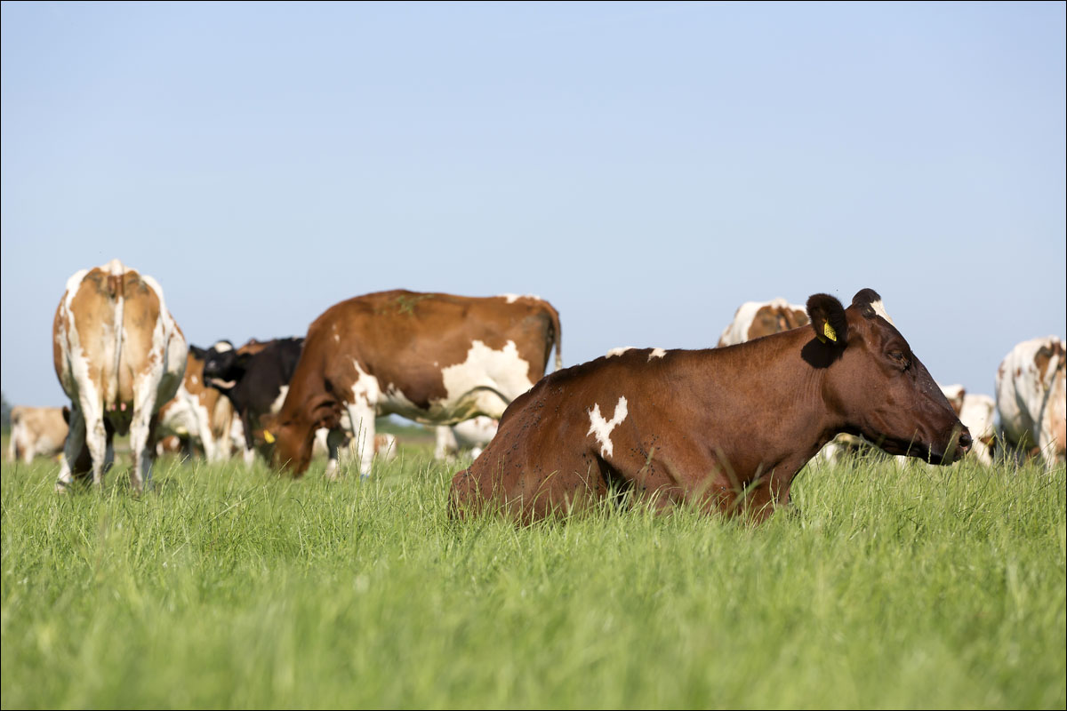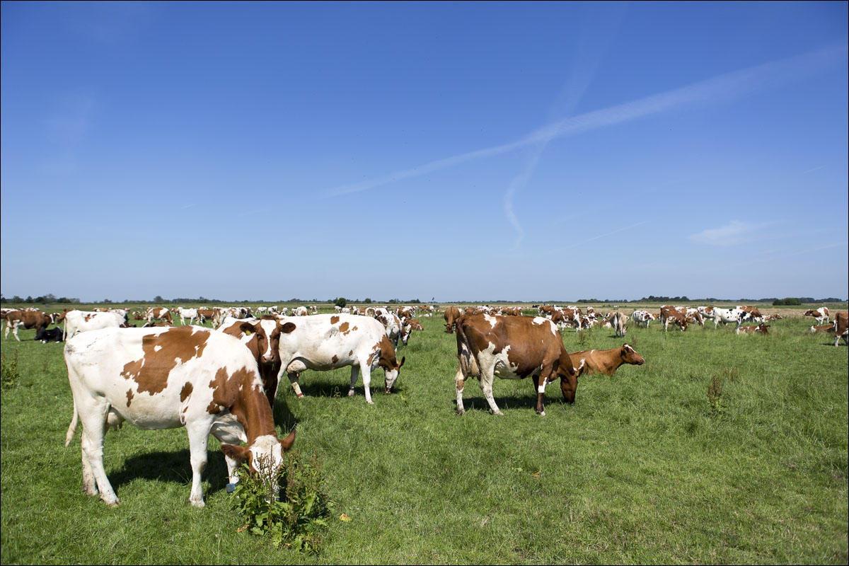 Foto’s van de roodbonte koeien in de wei (weidegang) bij biologische boerderij BoerBert.