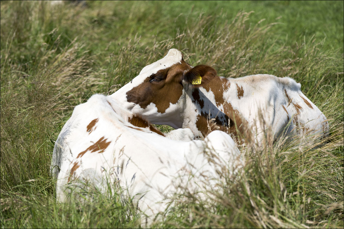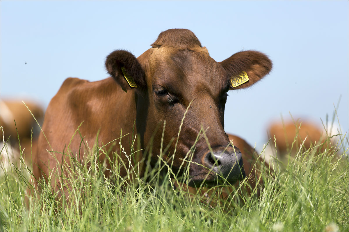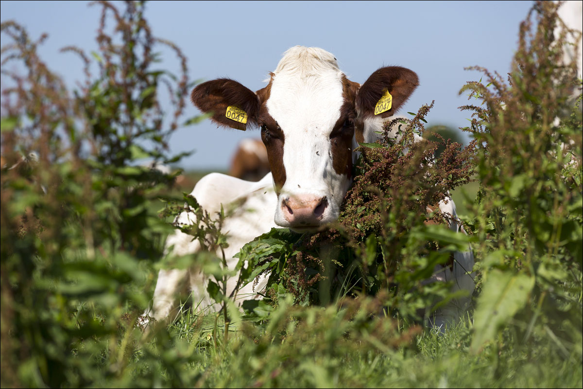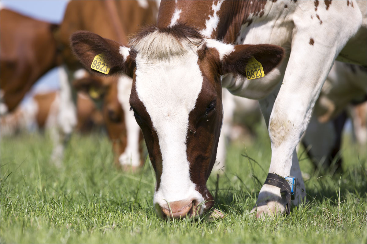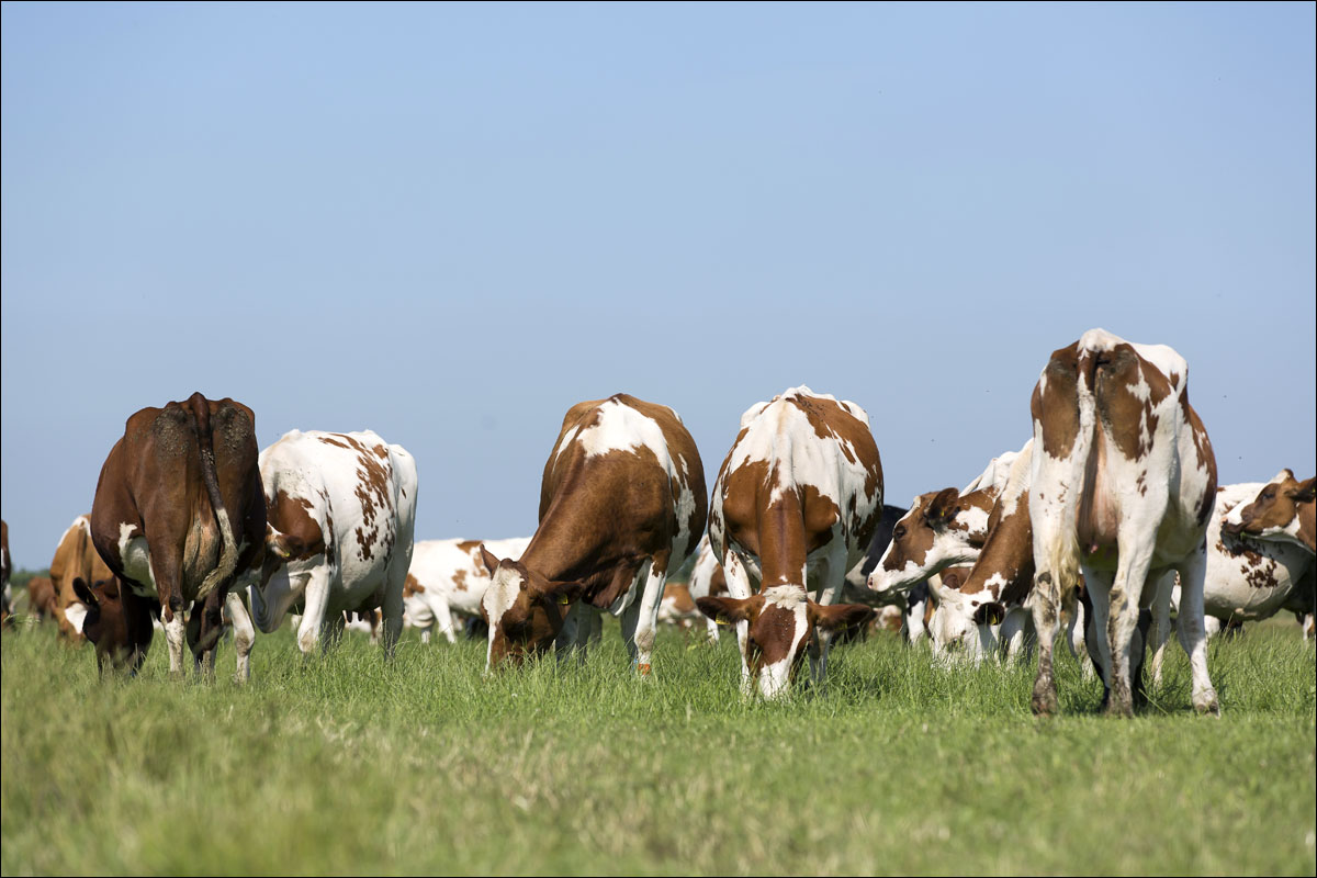Foto’s van de roodbonte koeien in de wei (weidegang) bij biologische boerderij BoerBert.