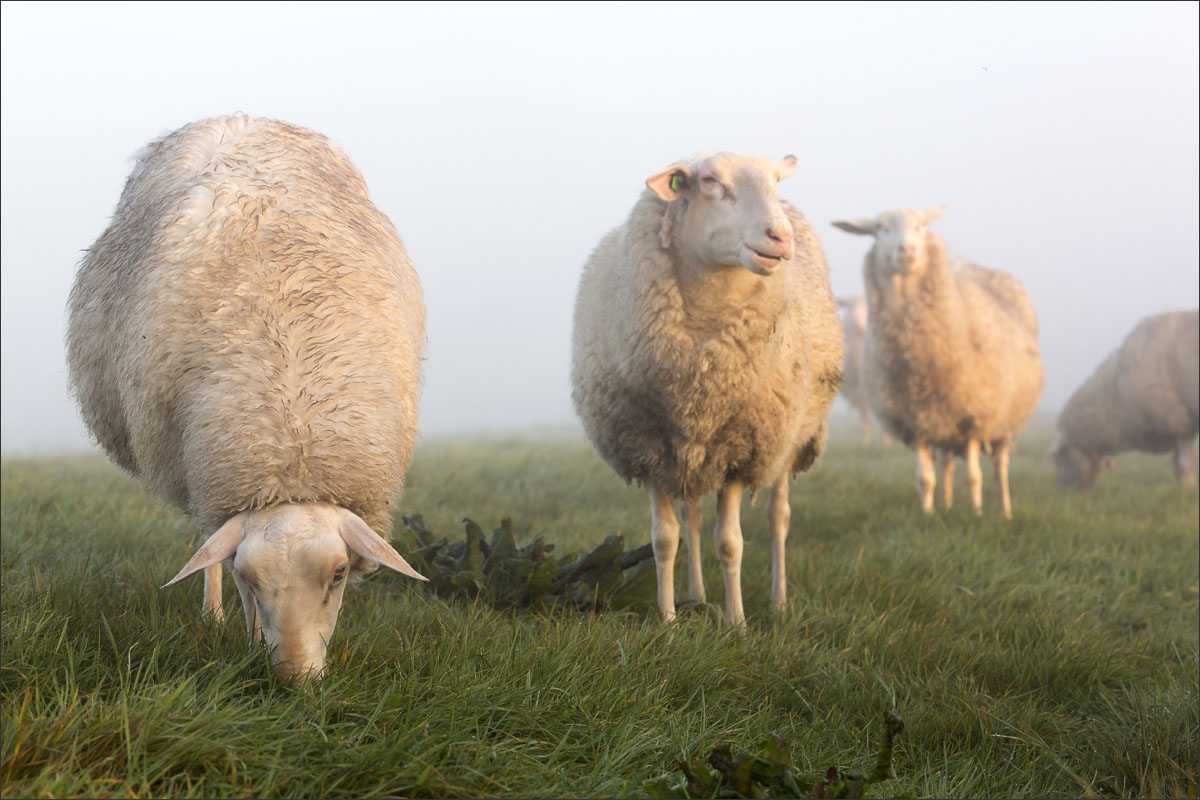 De melkschapen buiten in de weide bij Westhoek Schapenbedrijf.