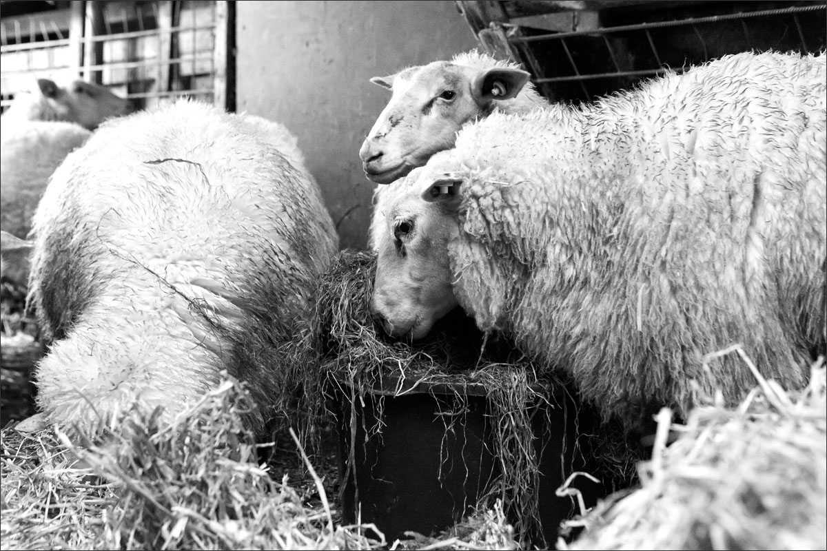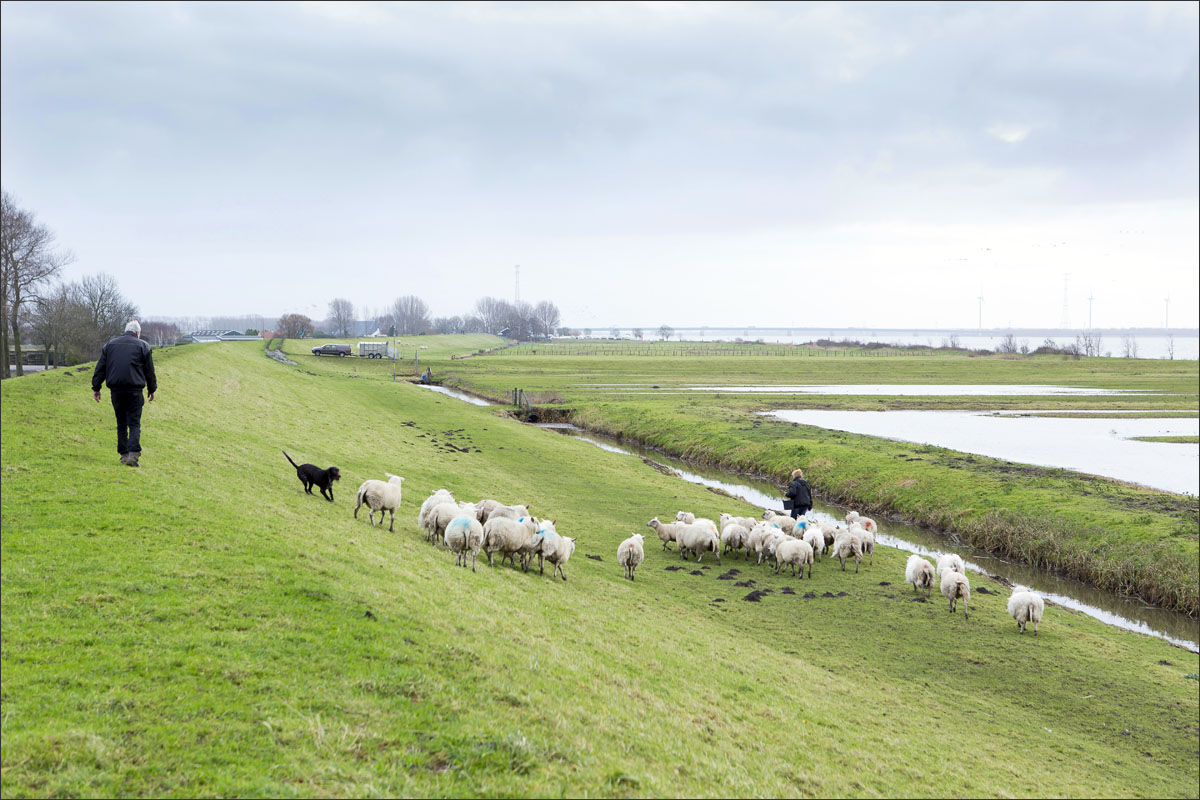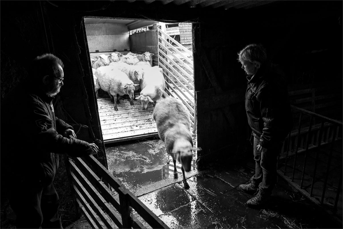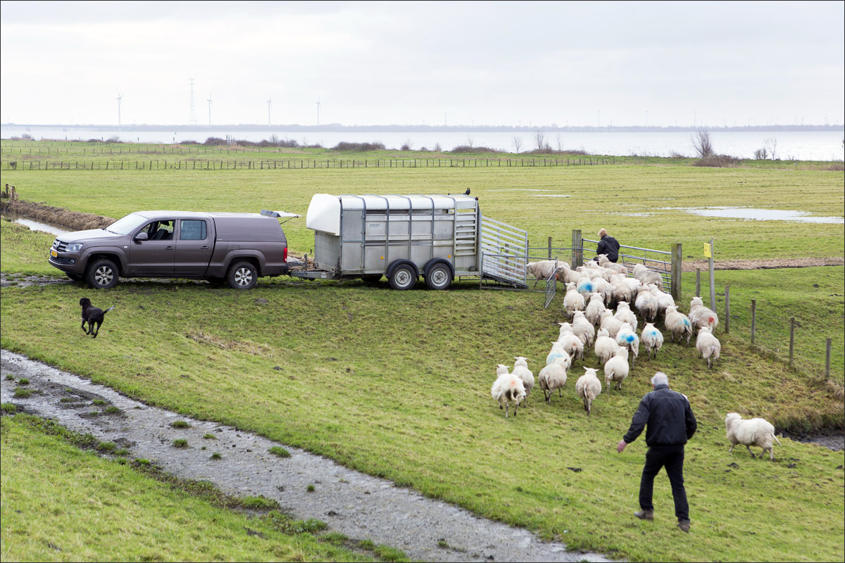 De schapen worden bij elkaar gedreven en naar de stal gebracht.