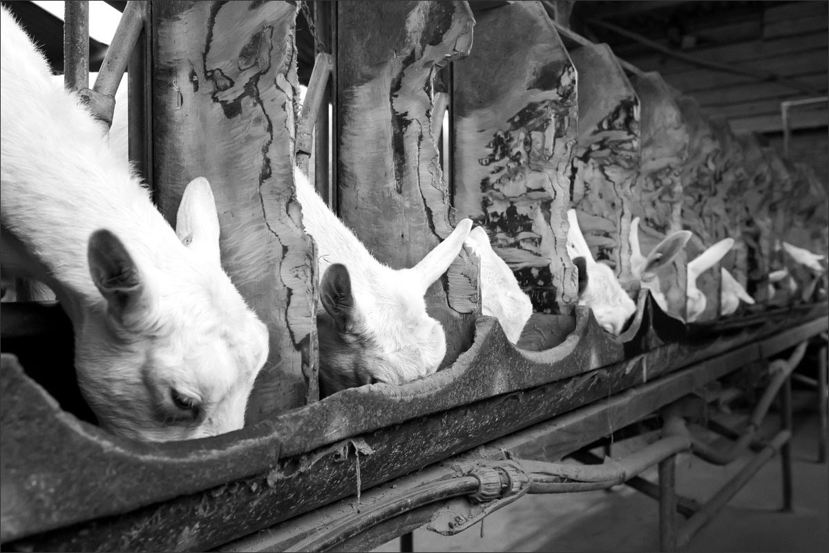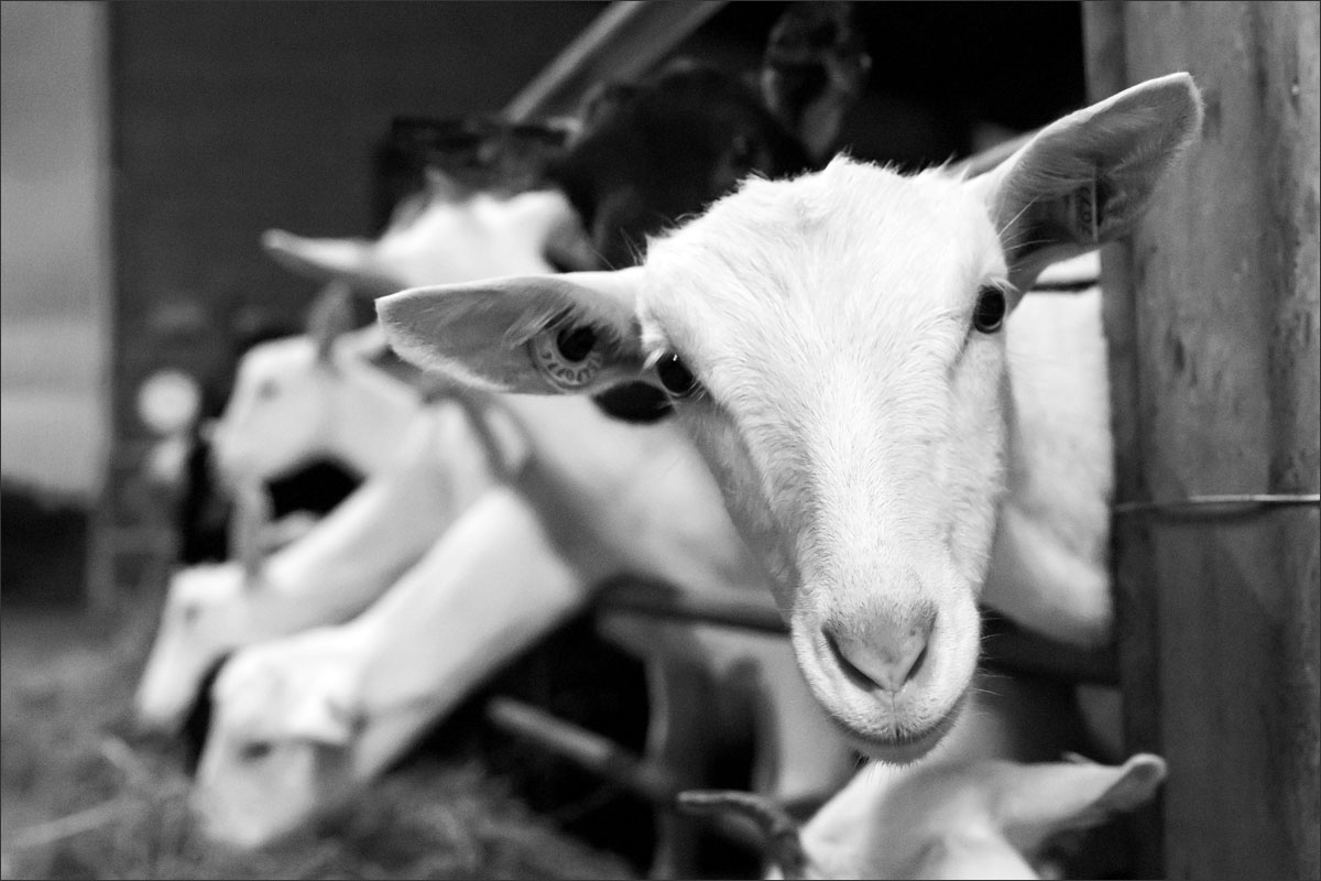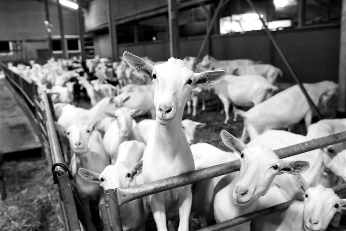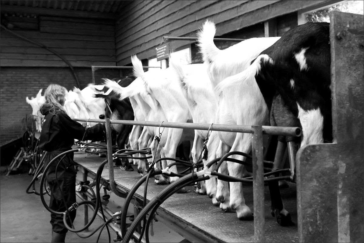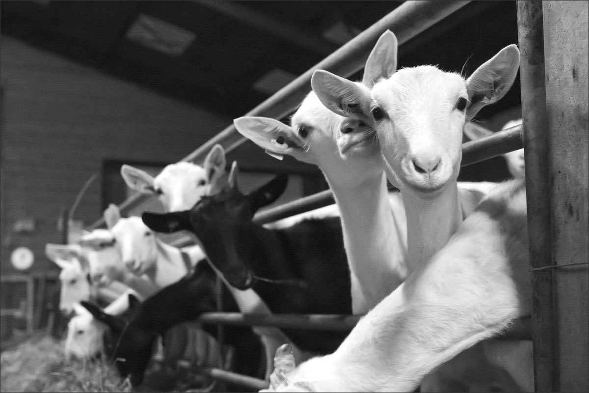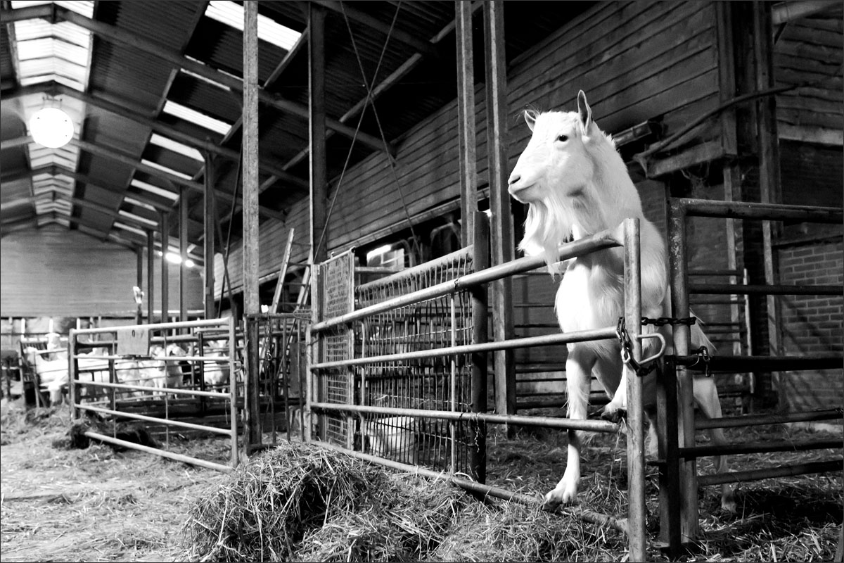 De geiten, vooral witte Saanen geiten en een aantal Nederlandse bonte geiten, hebben hier een relaxed leventje. Ze lopen in een potstal op een dikke laag stro dat droog, zacht en comfortabel voor ze is. Twee keer per dag worden zij gemolken waarbij zij totaal zo’n 3 liter melk leveren.