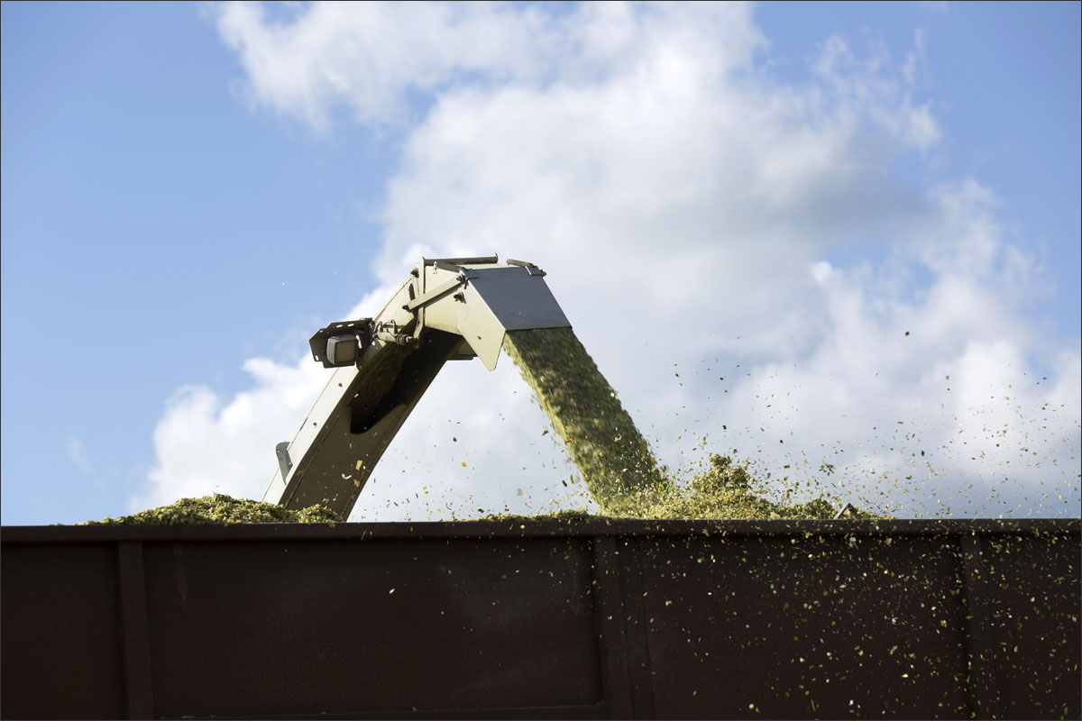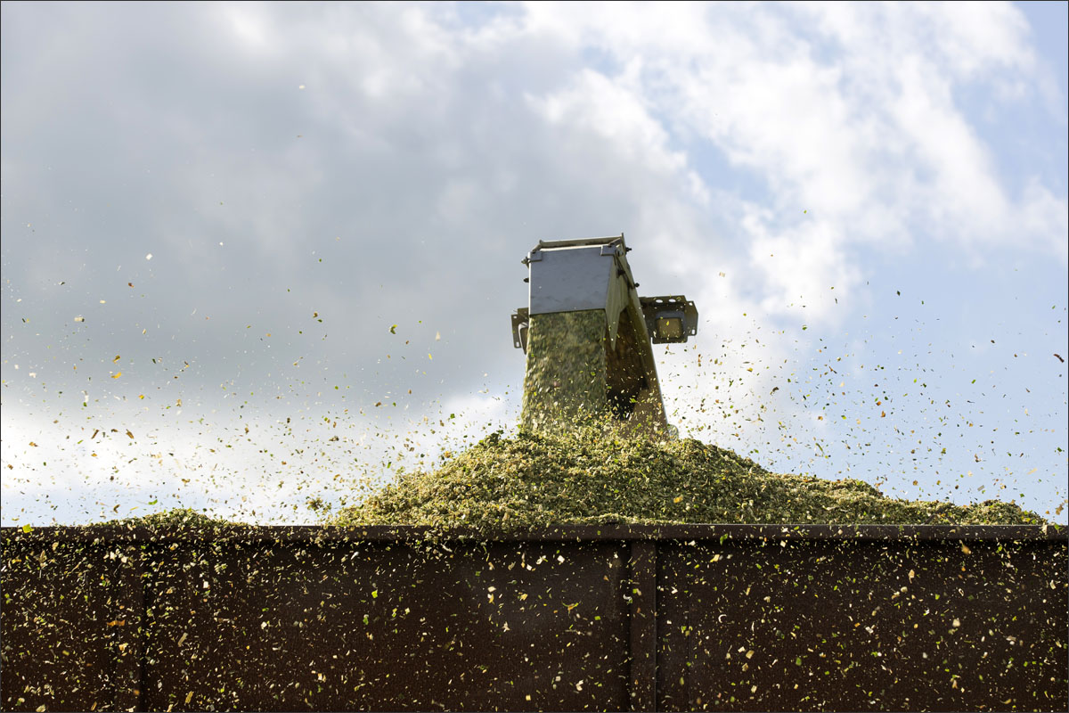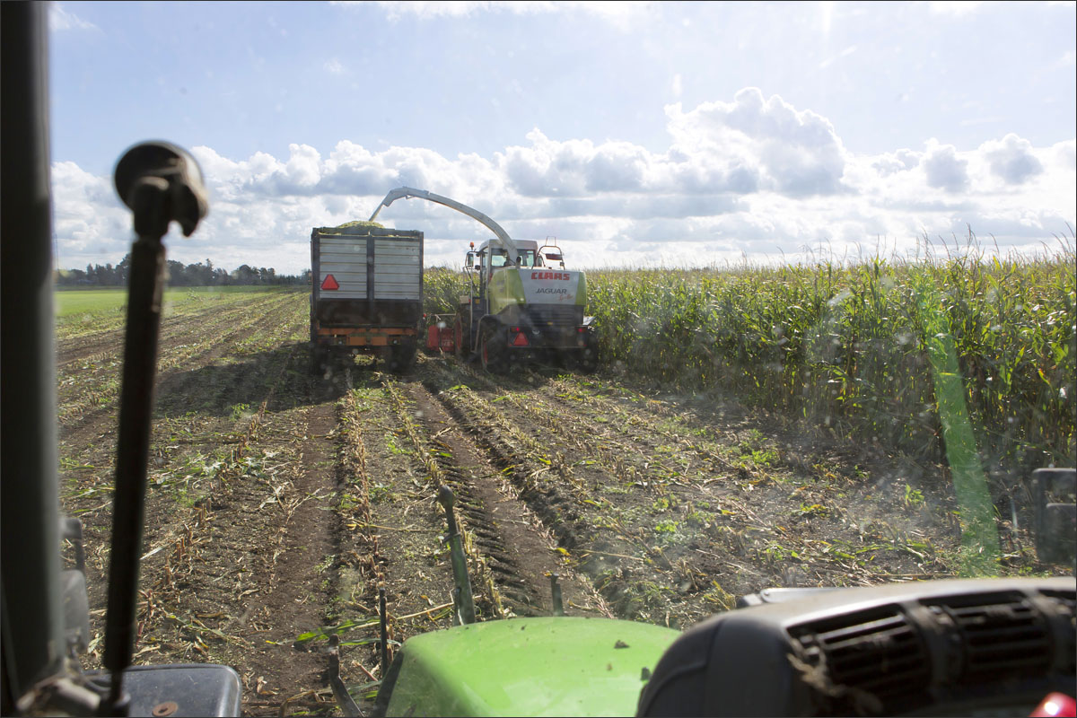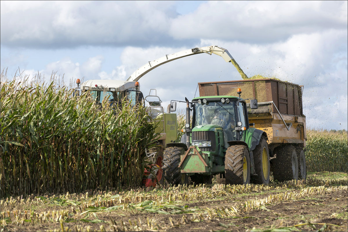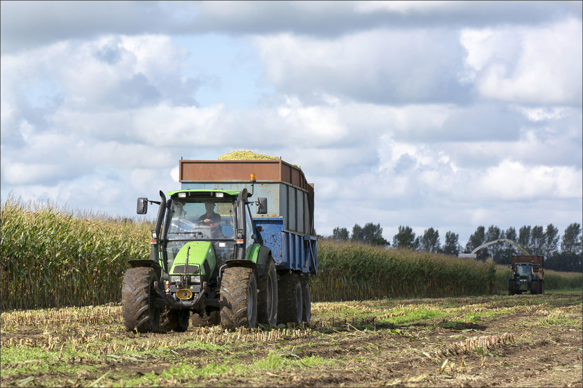 Foto’s van het zaaien van de maïs, de ontwikkeling (groei) en het hakselen van de snijmaïs.