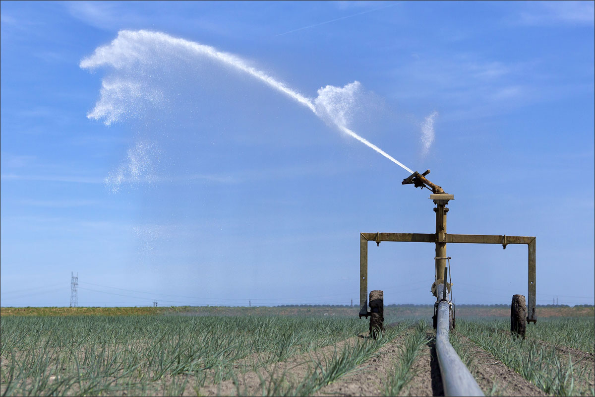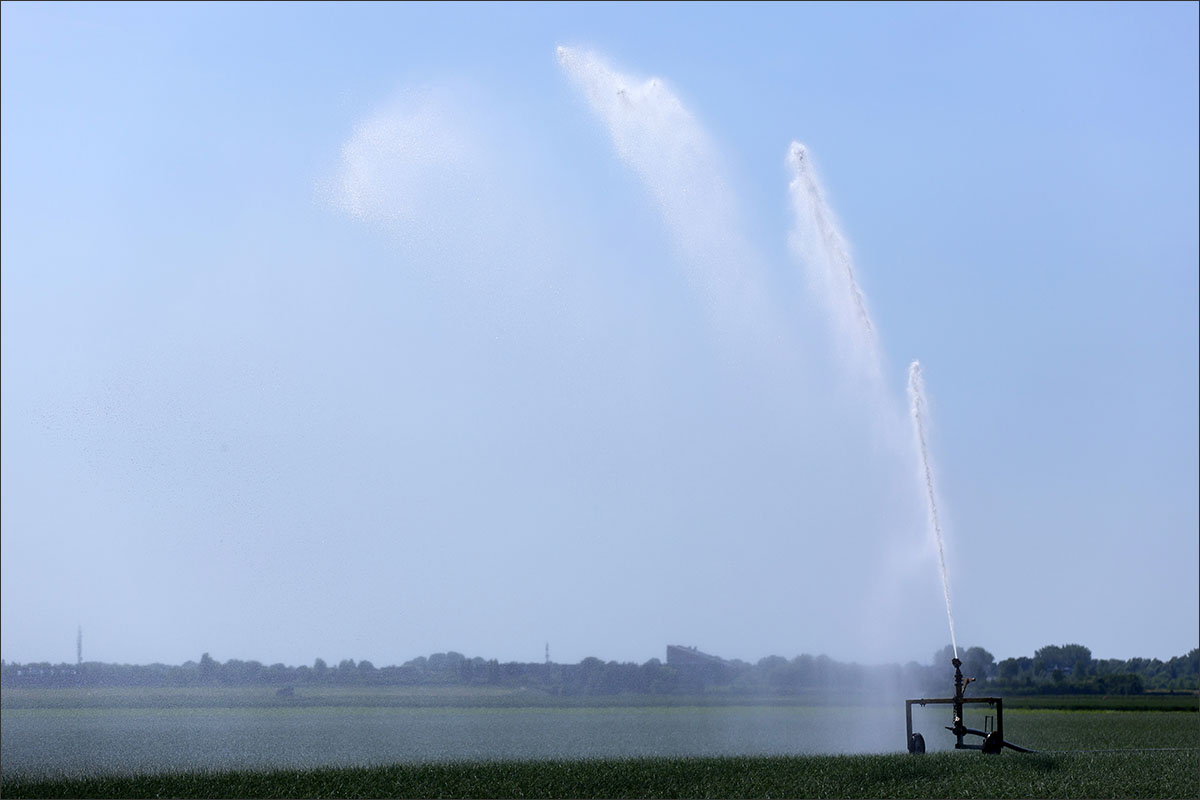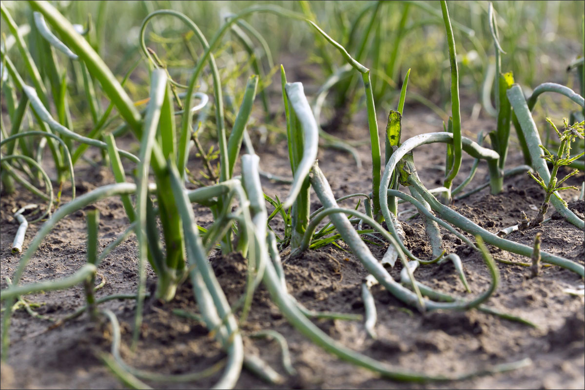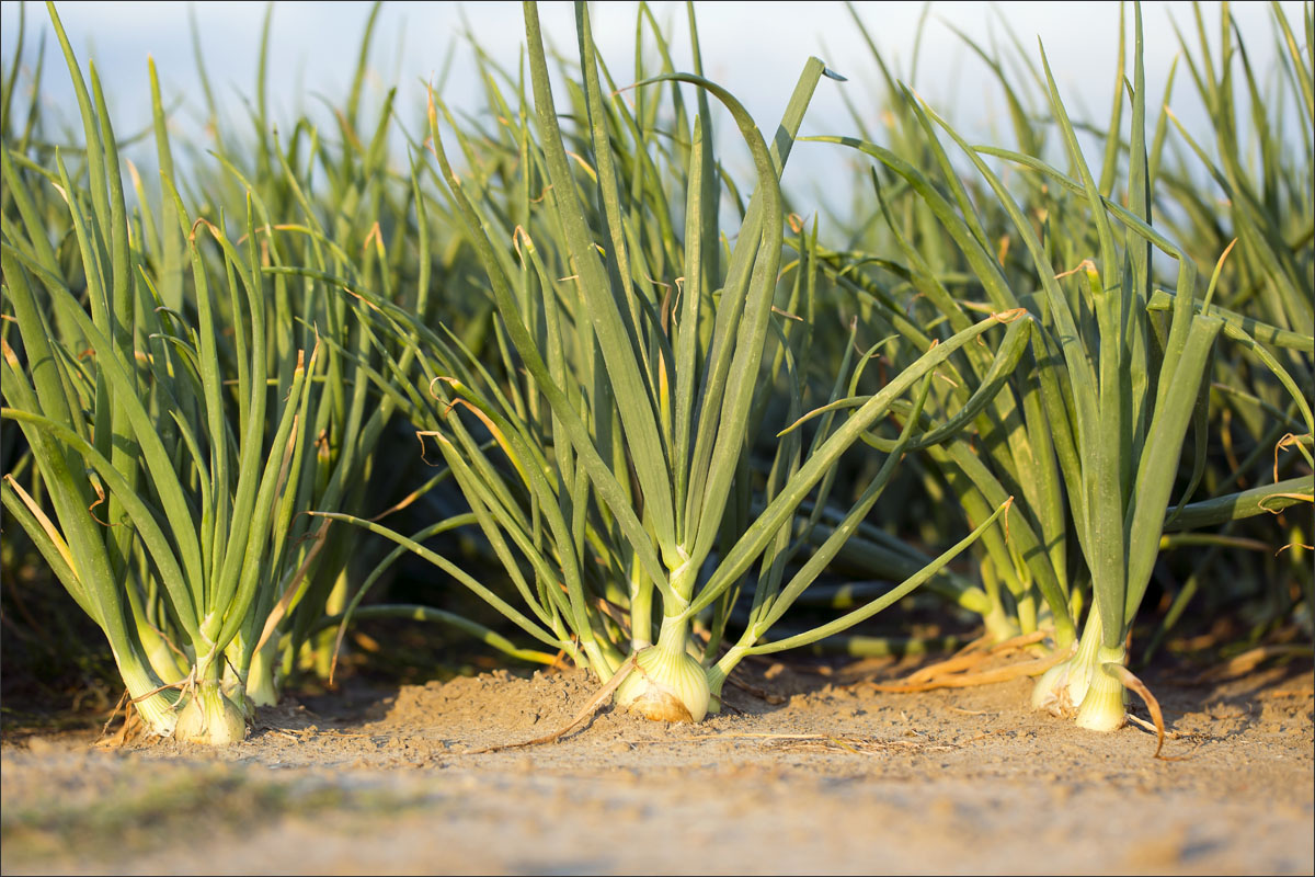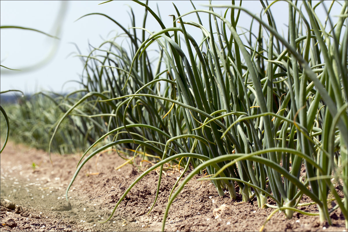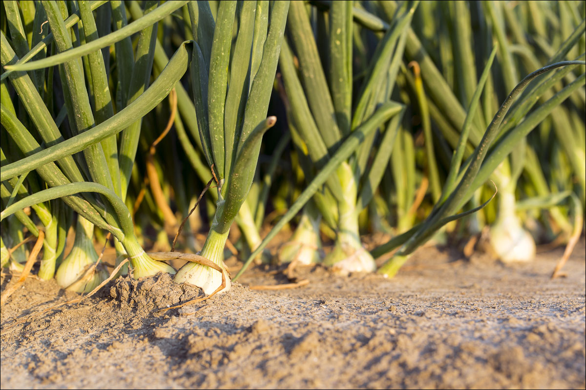 Foto’s van de teelt van uien, het zaaien & beregenen van de akker en het rooien van de uien.