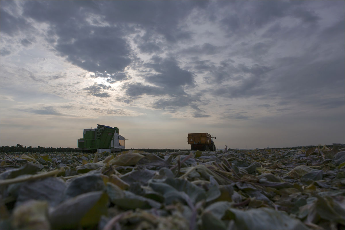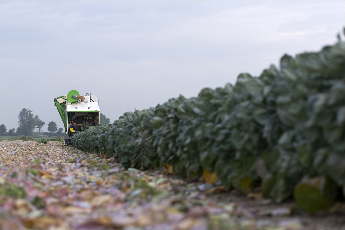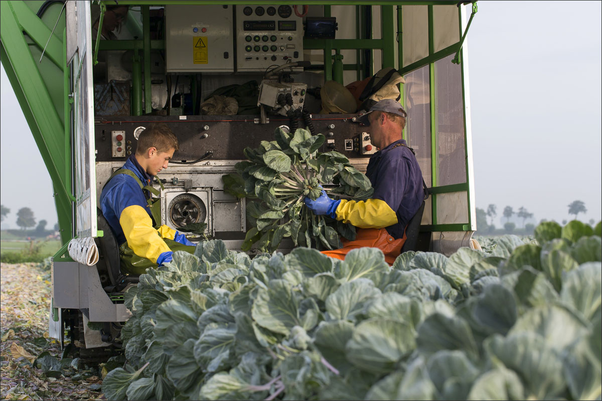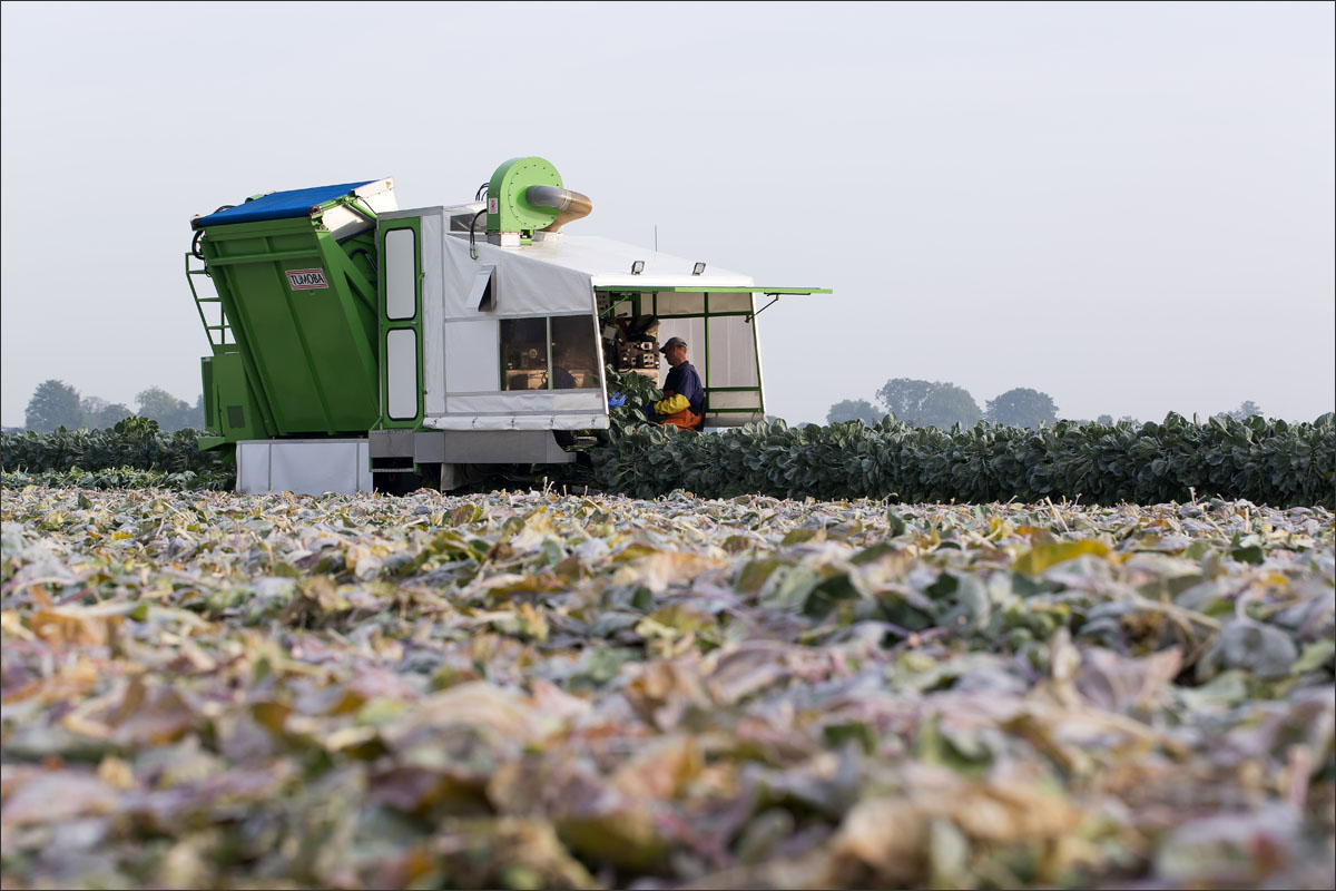 Foto’s van de spruitkoolplanten op de akkers van akkerbouwbedrijf Zonneveld uit Gelderswoude.