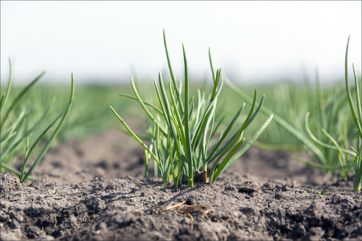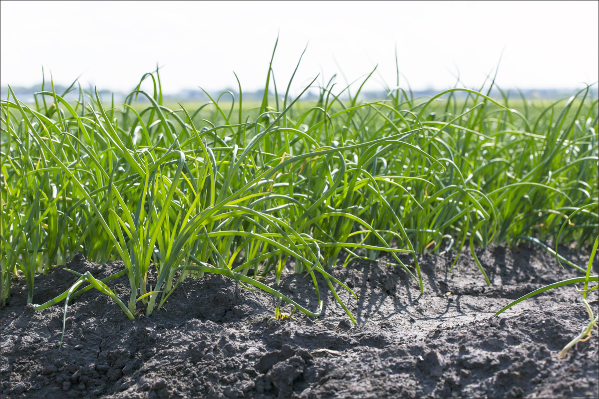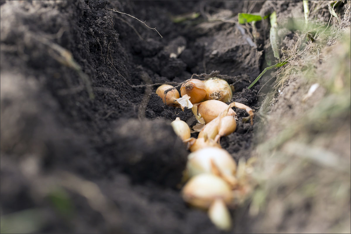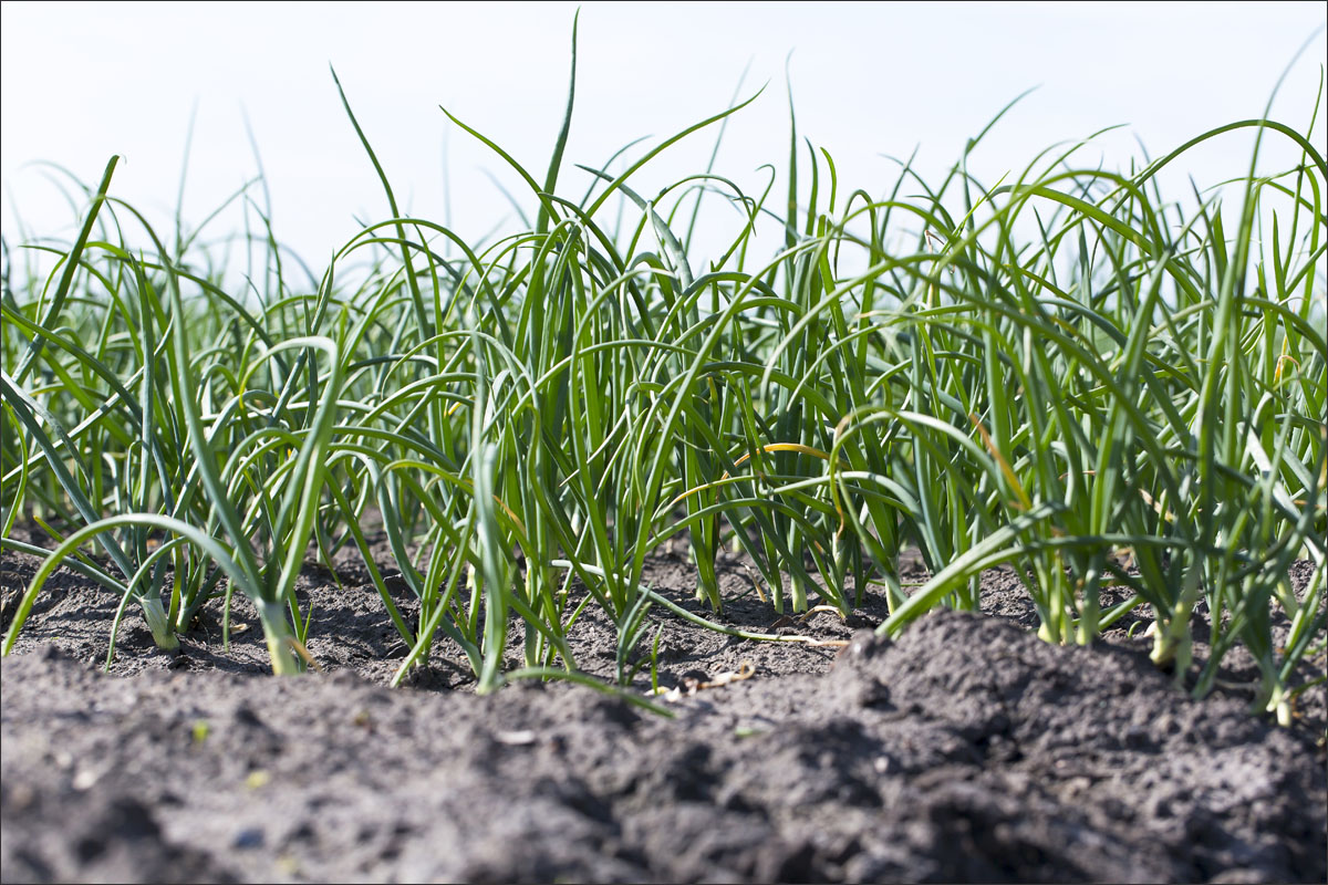 De uien worden geplant (gepoot) op een akker van akkerbouwbedrijf Zonneveld.