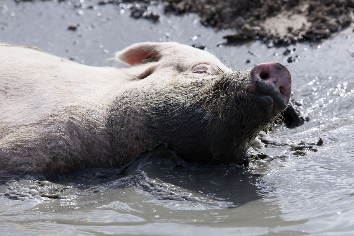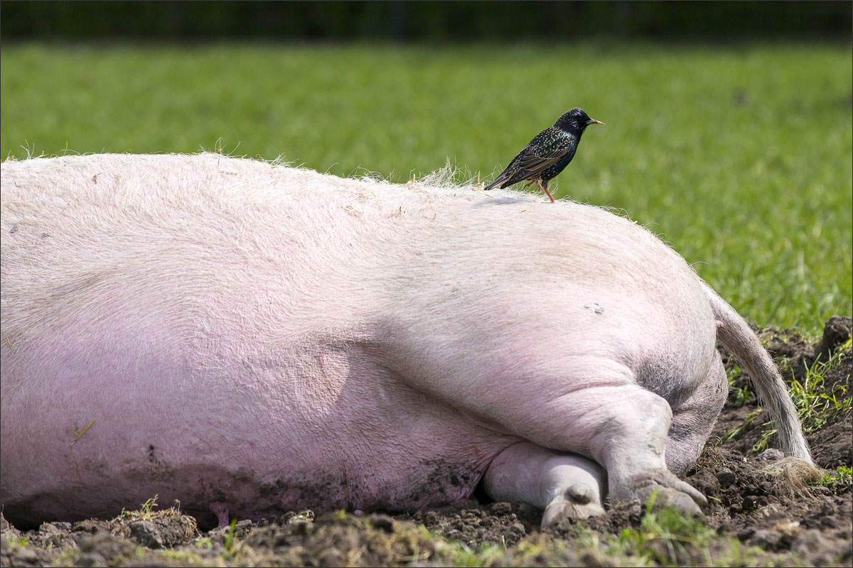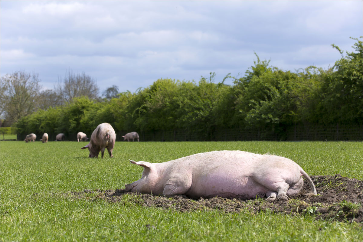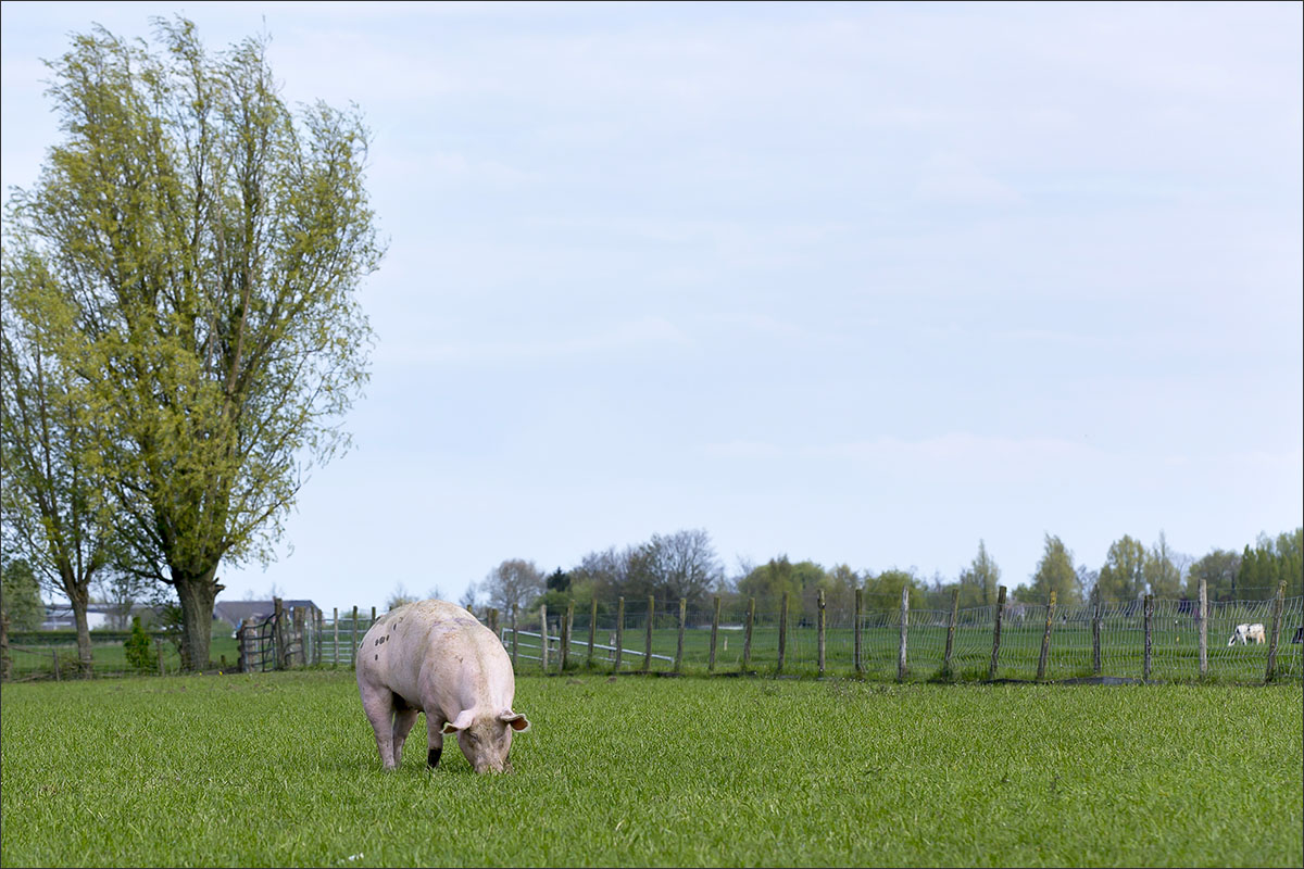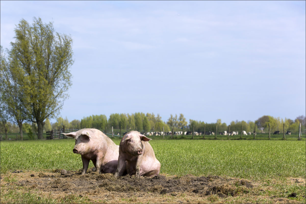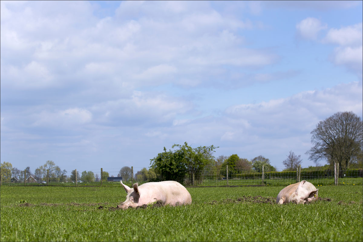 Foto’s van varkens, lopend en liggend in de groene weide. Met de neus in de bagger. Genieten van het zonnetje........