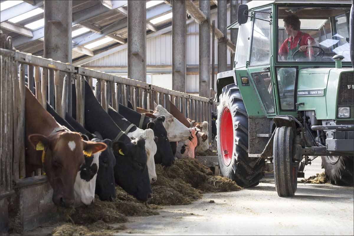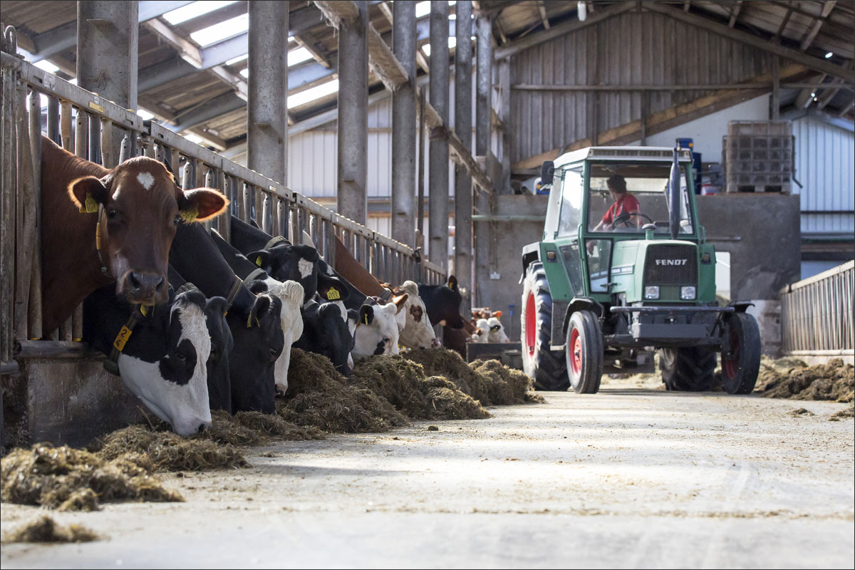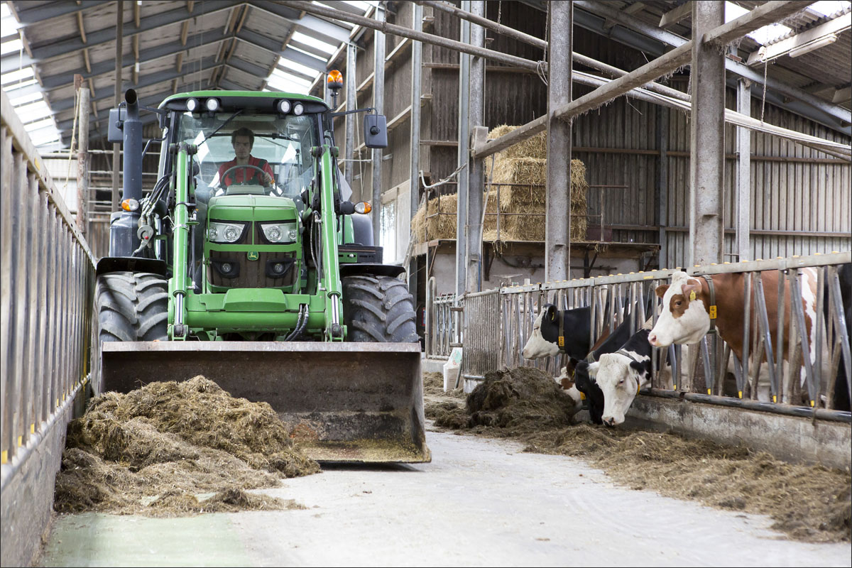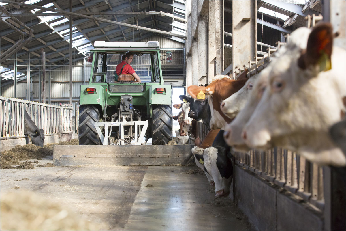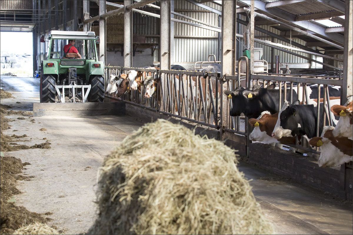 Foto’s van de paarden, kalveren, ligboxstal, koeien voeren, reparatie landbouwmachine, werkzaamheden aan de kuil.