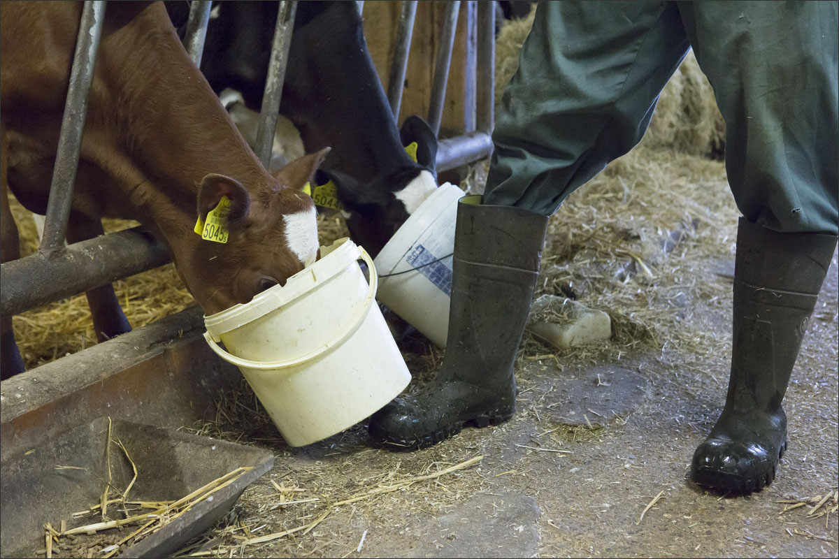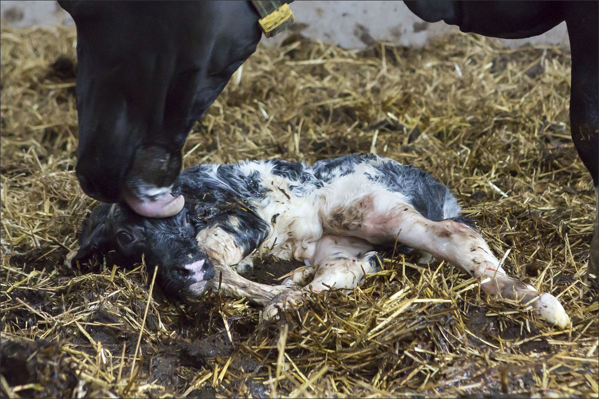 Foto’s van de koeien en kalveren die worden gevoerd. En de geboorte van een kalfje.