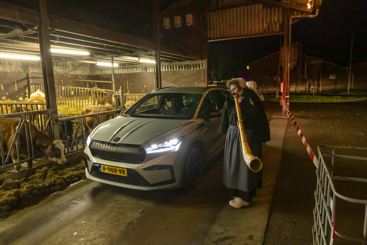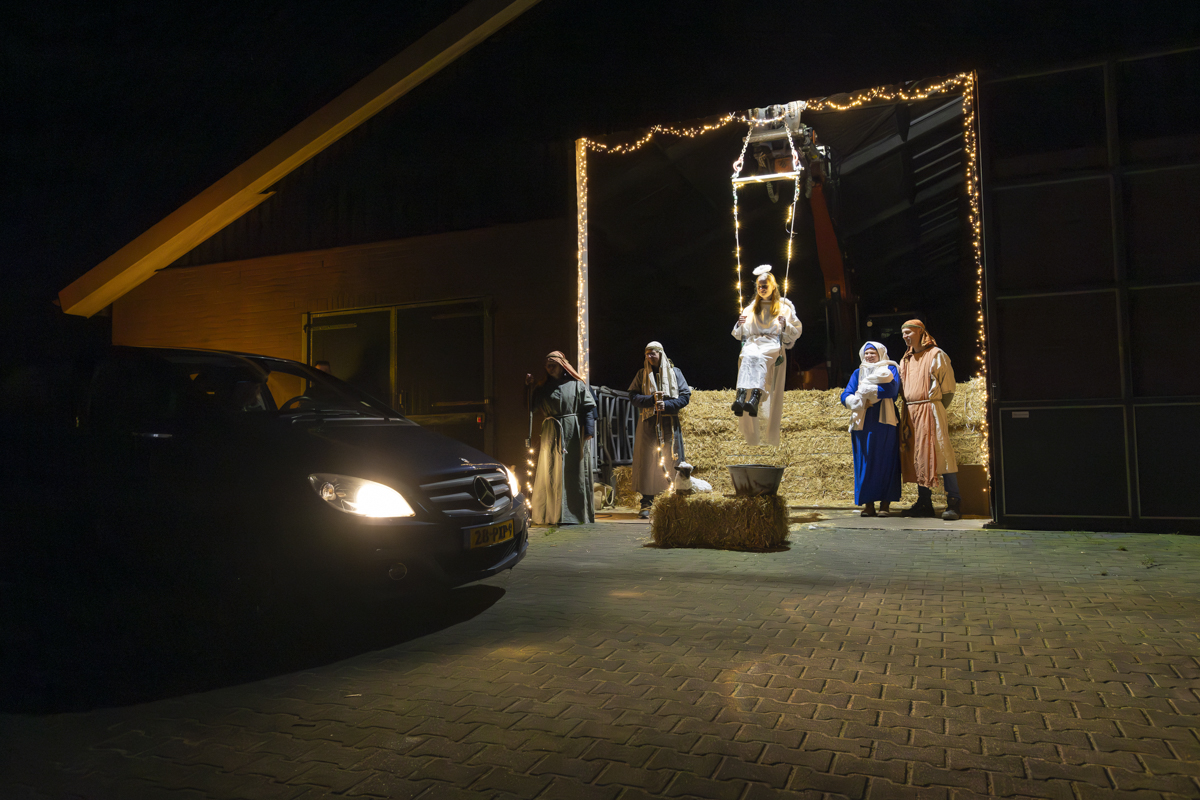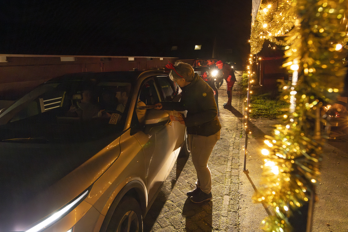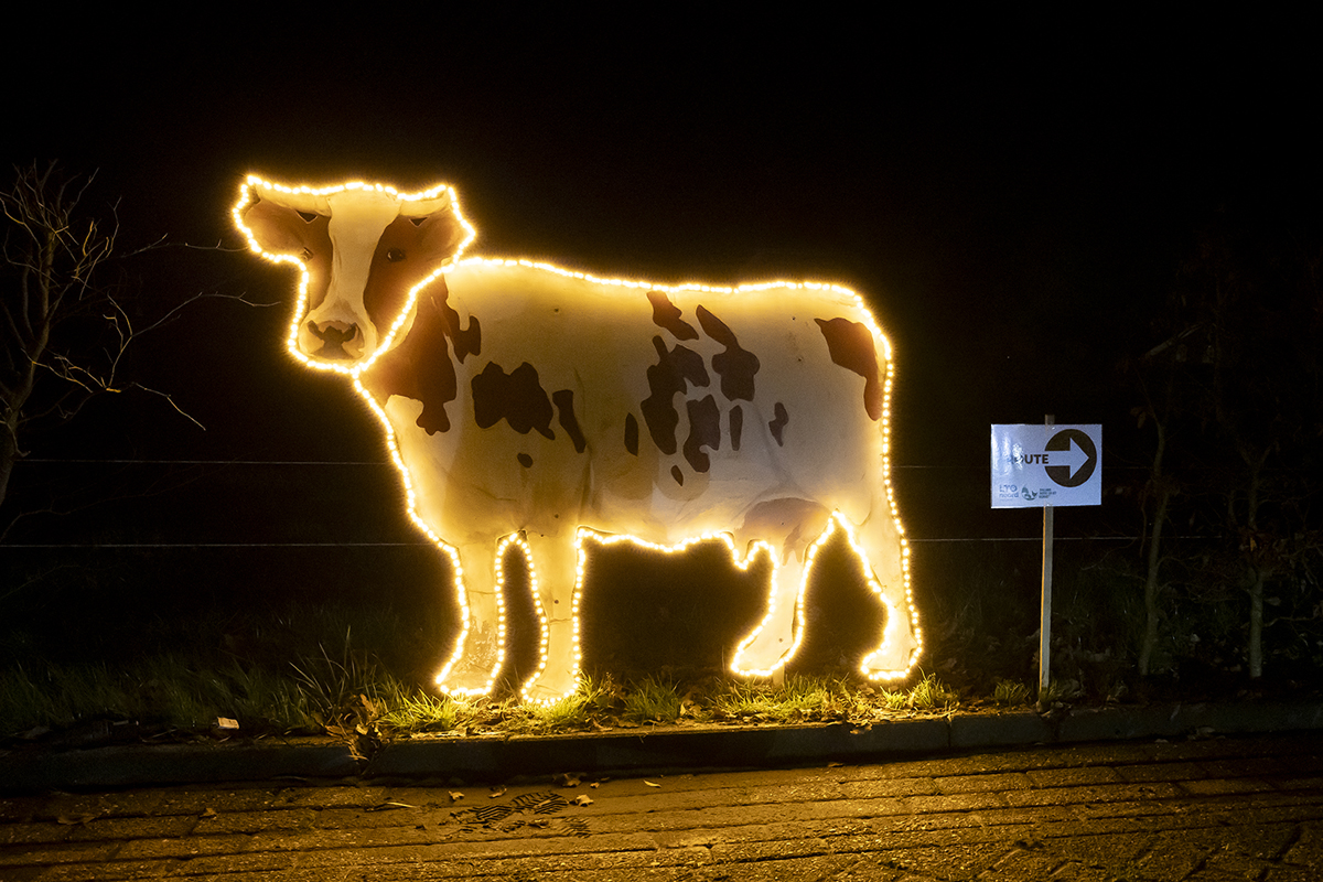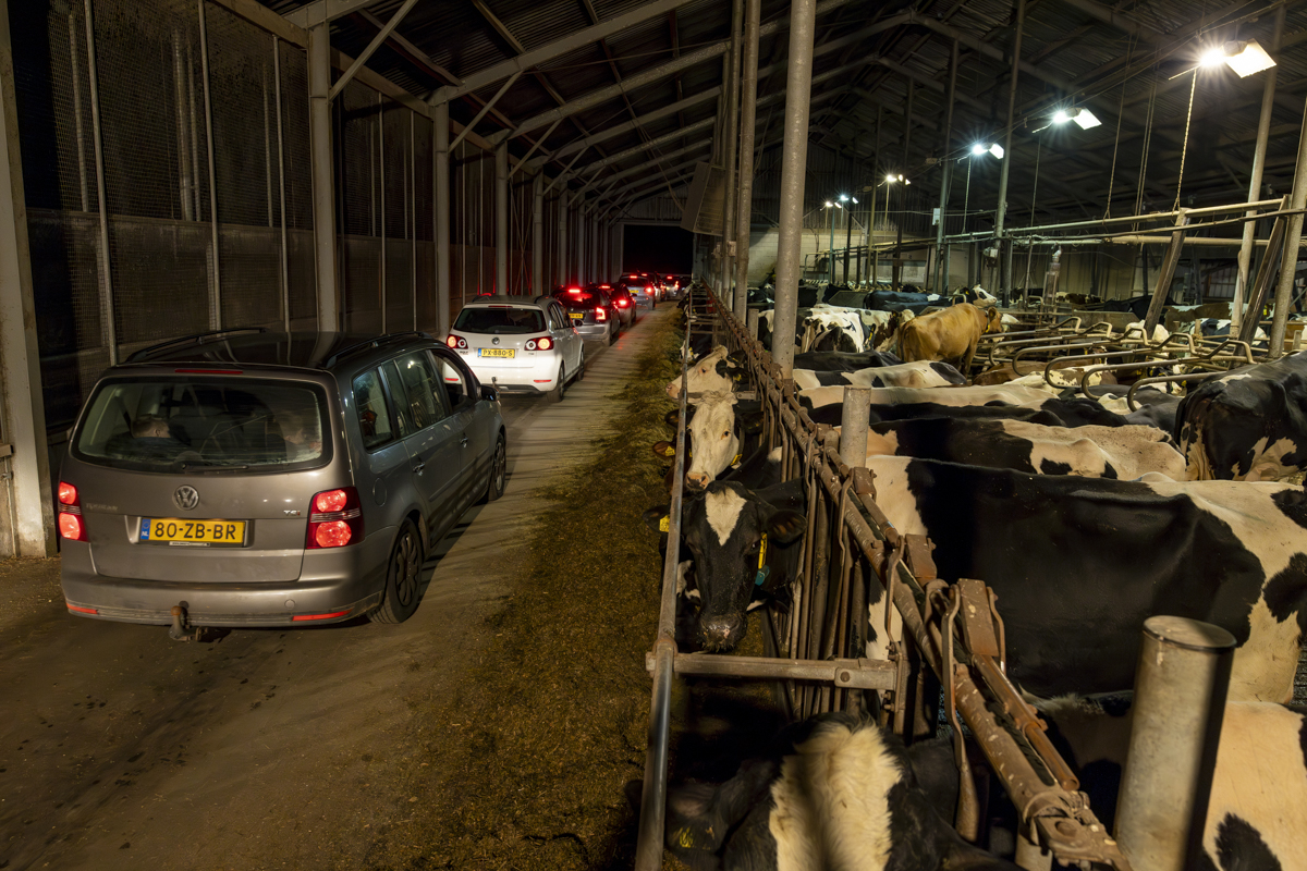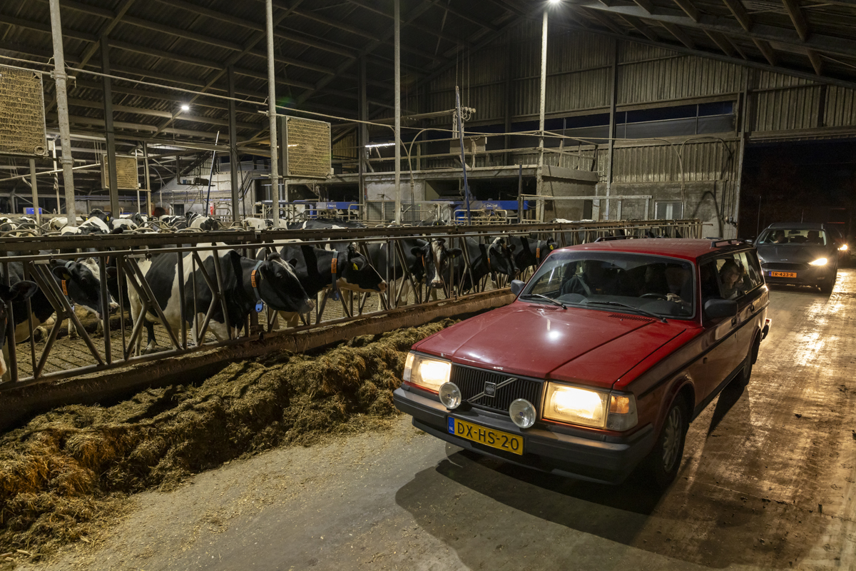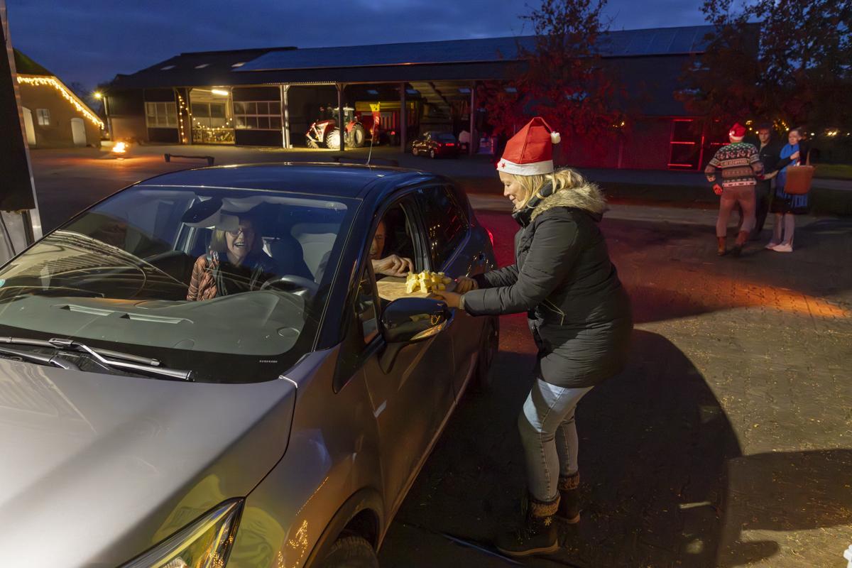 Zo’n 600 auto’s reden over kleine weggetjes en kavelpaden dwars door koeienstallen heen, langs woningen en over boerenerven in kerstsfeer.