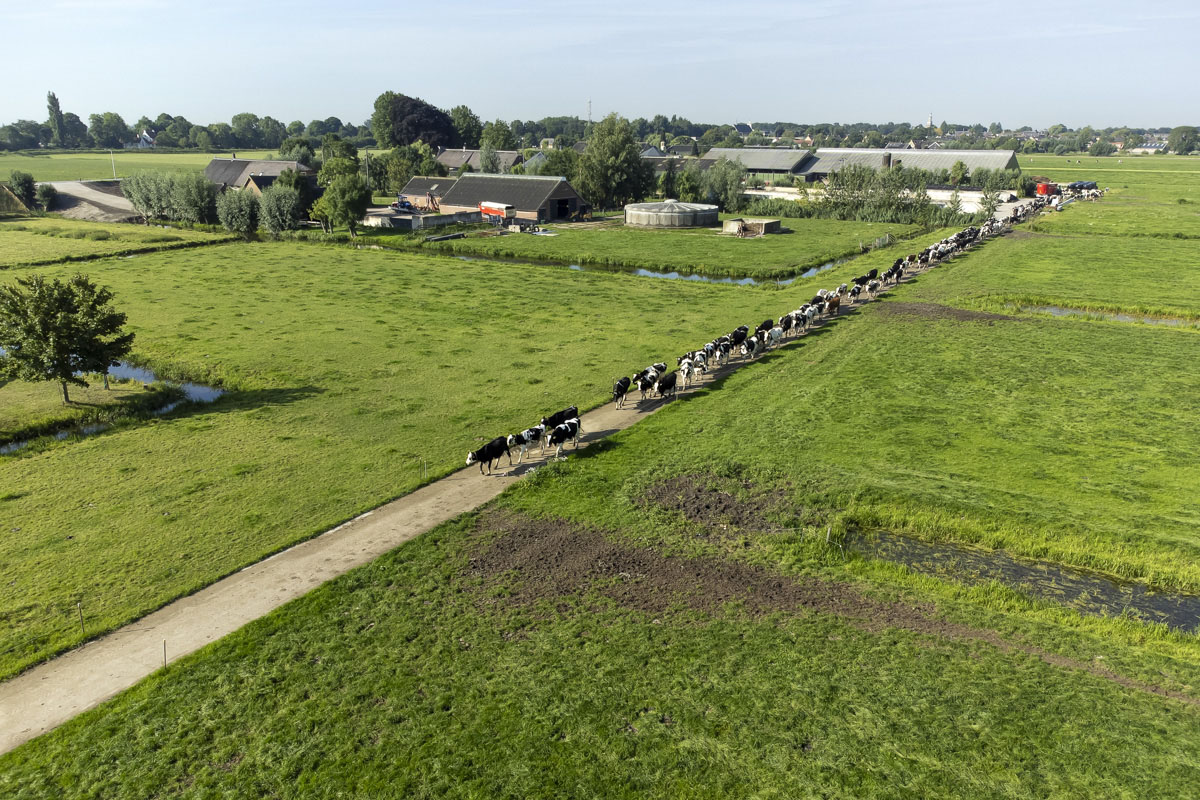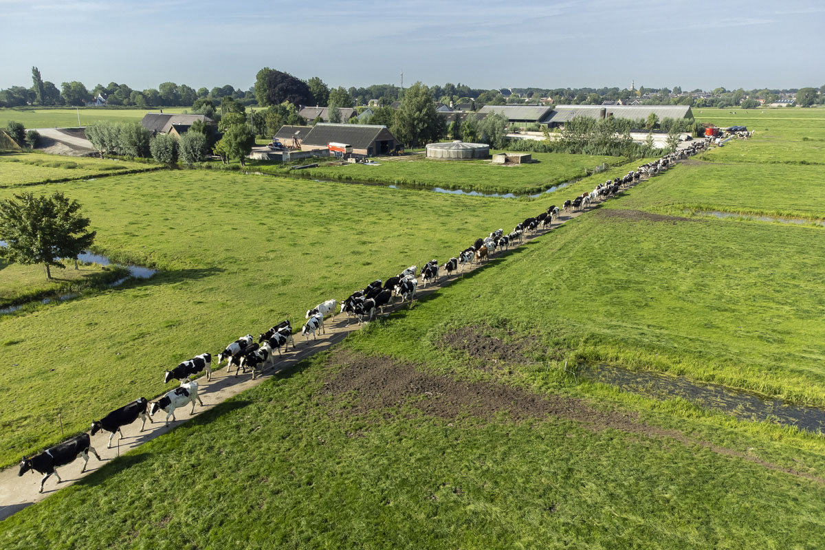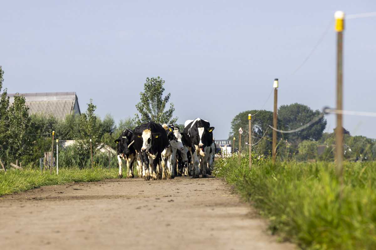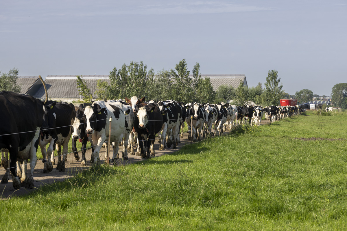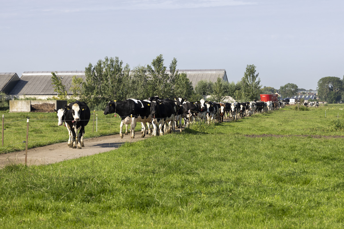Na het melken gaan de koeien de weide in om te grazen.