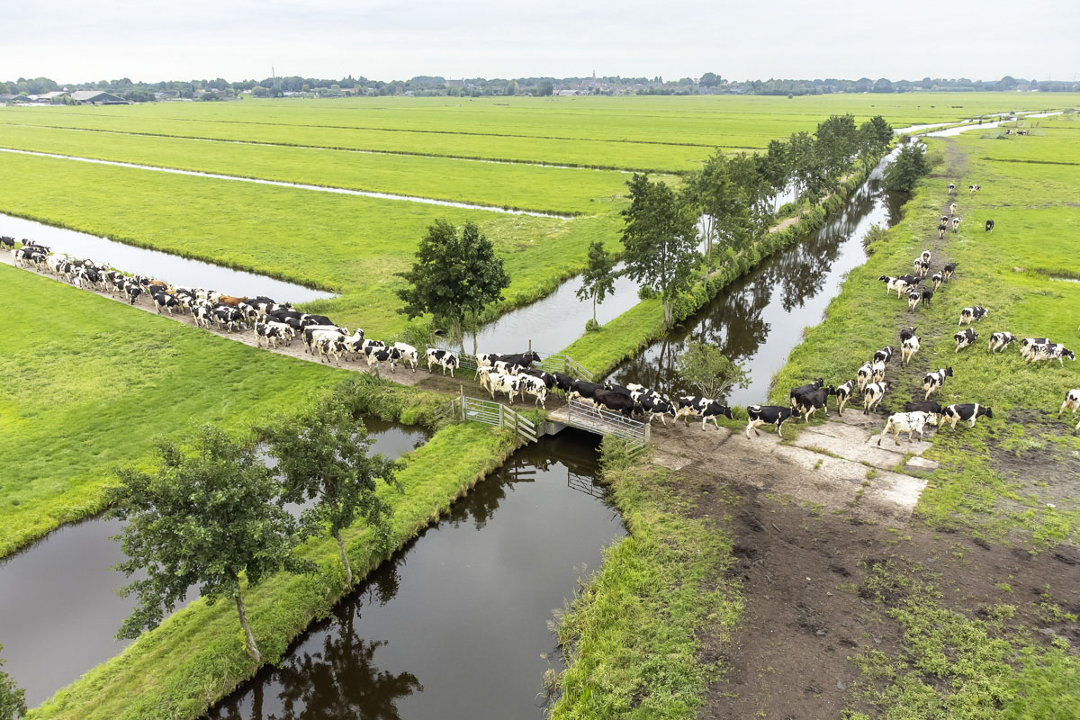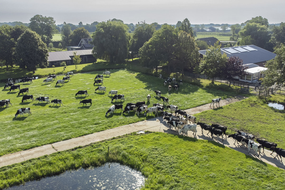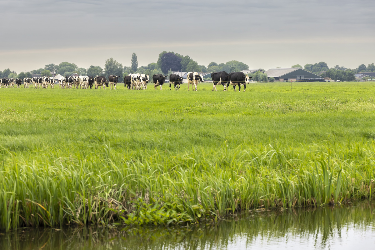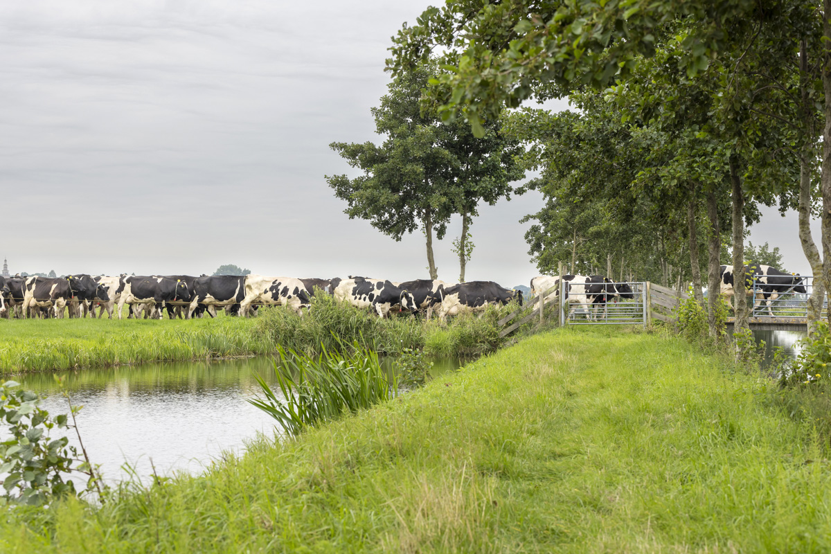 Na het melken gaan de koeien de weide in om te grazen.