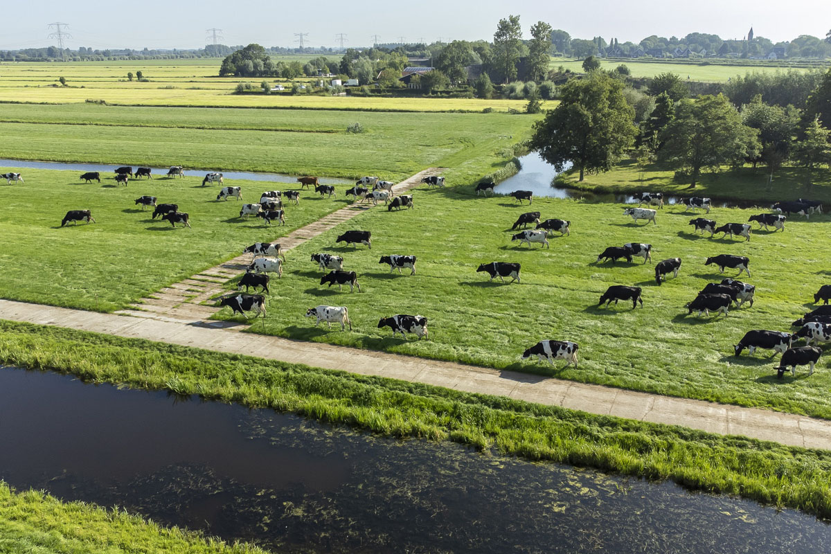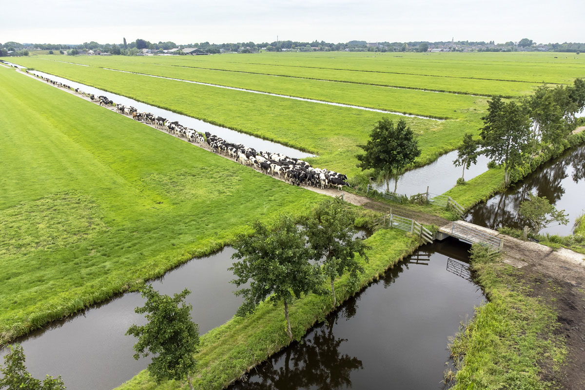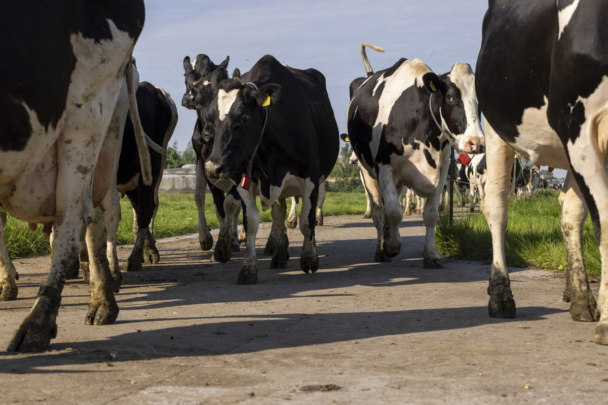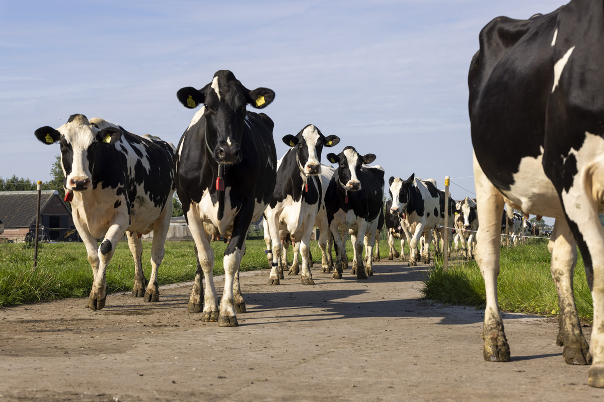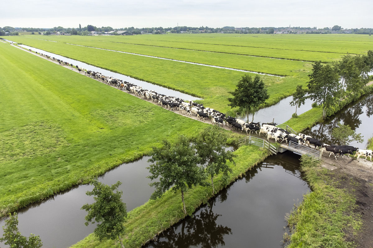 Na het melken gaan de koeien de weide in om te grazen.