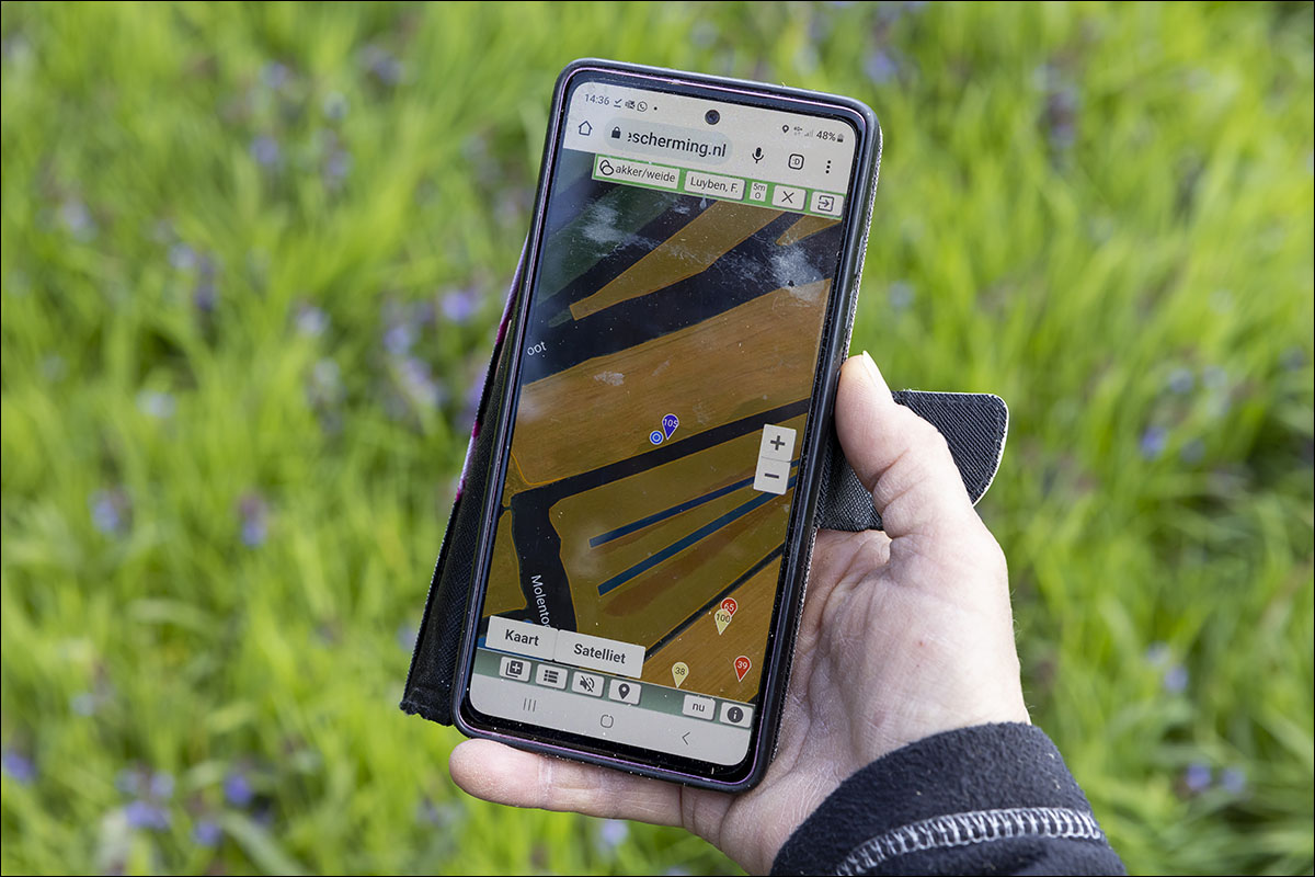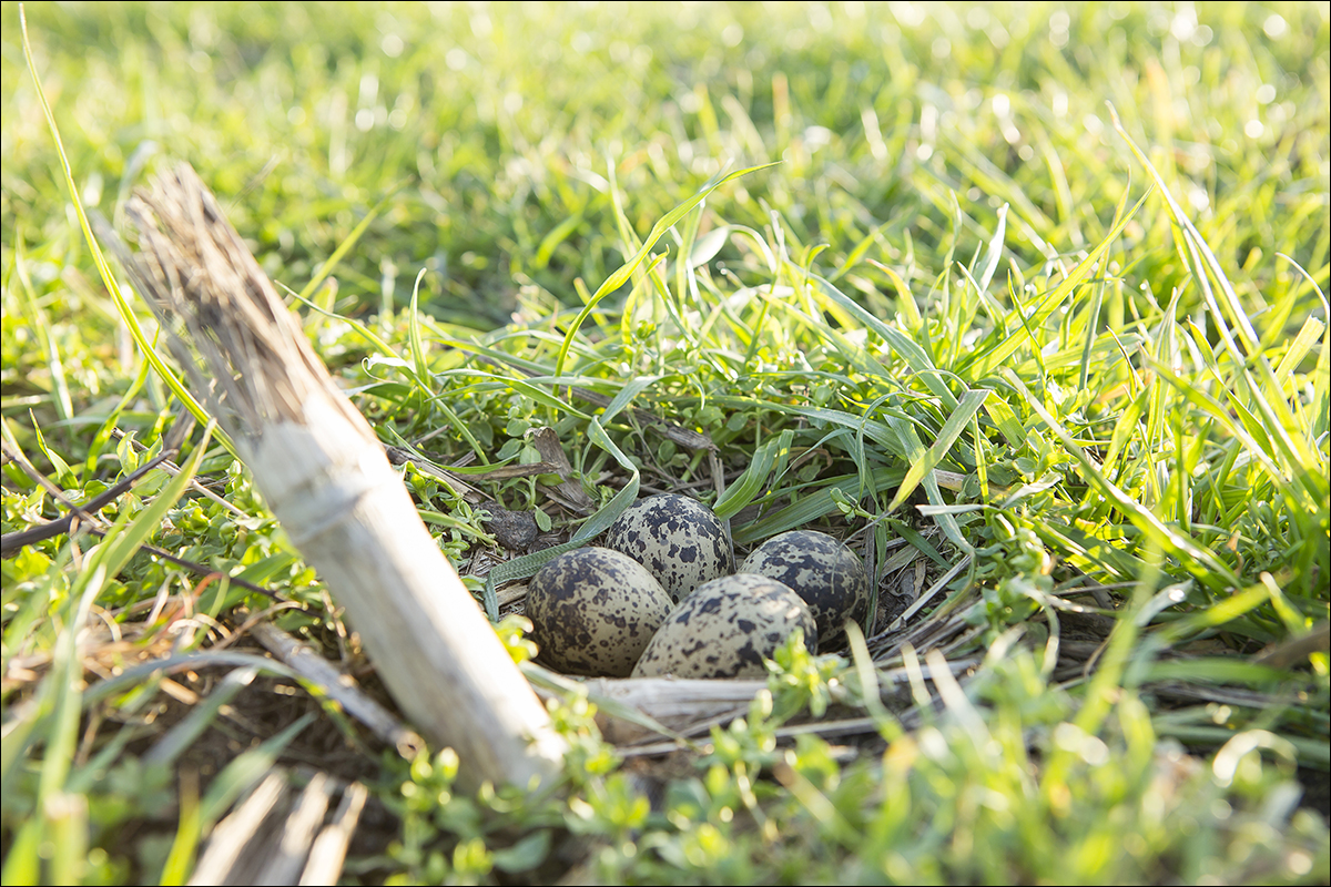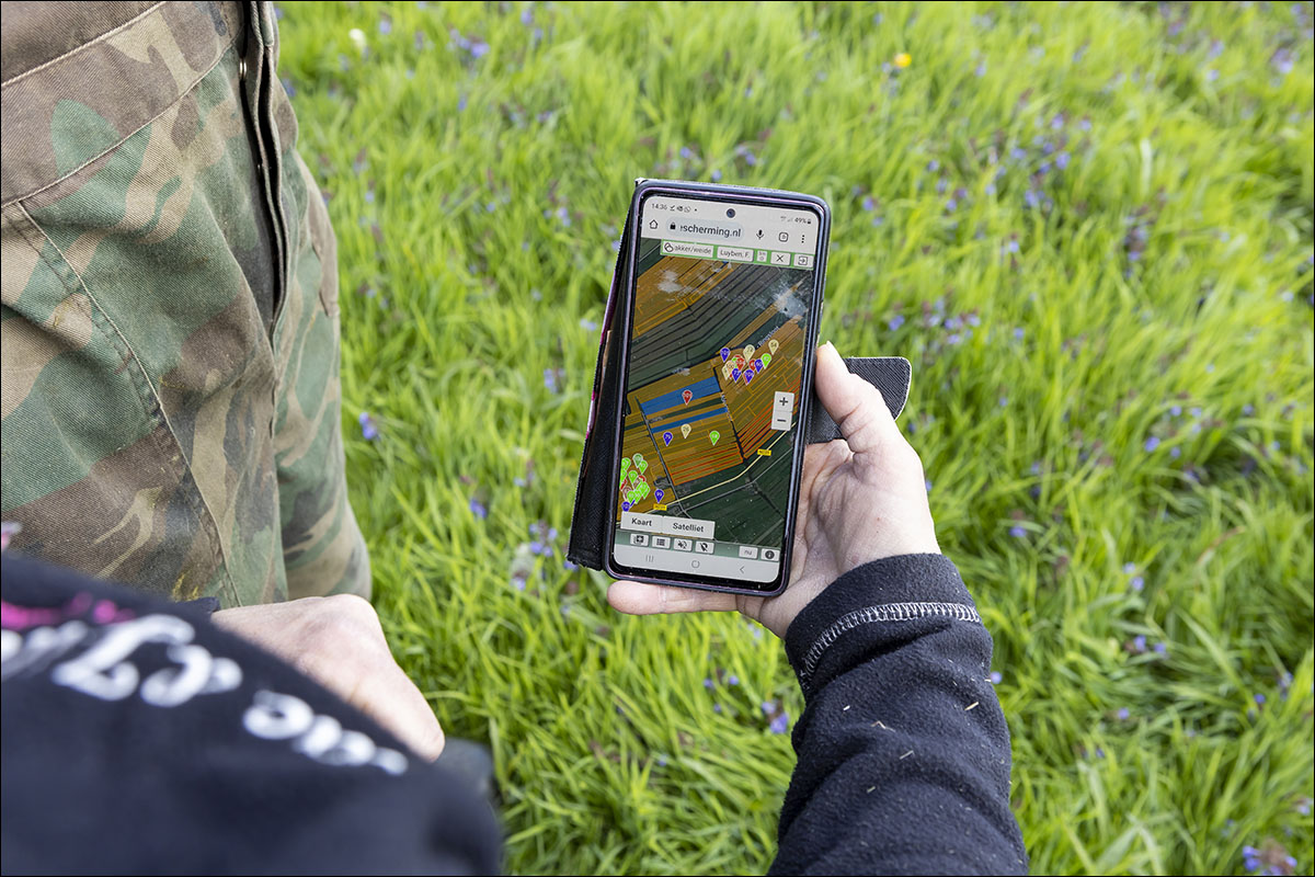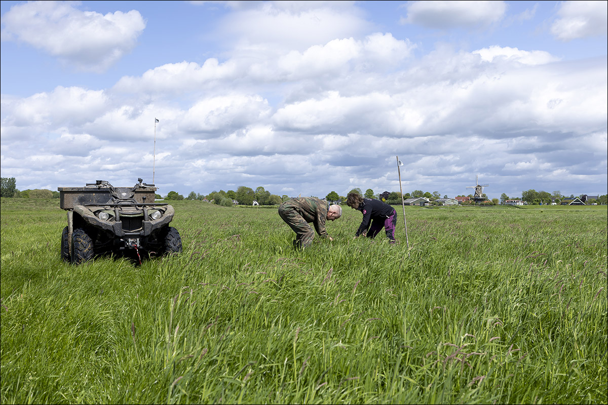Voordat er werd bemest op het grasland is er door de weidevogelbescherming gekeken of dat er al nesten lag. Daar is netjes langsheen bemest. Er werd een nestbescherming, bij bemesten met sleepslang, over het nest gezet.