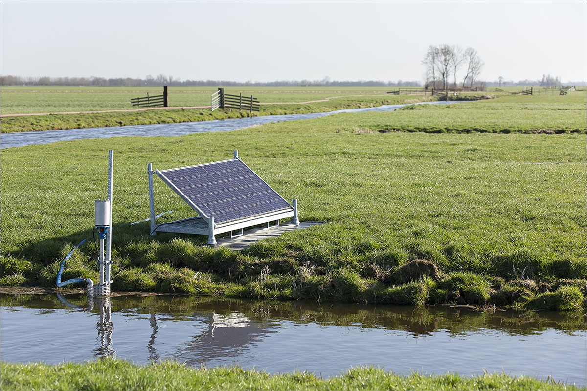 Een pomp zorgt ervoor dat het water in de plas dras terechtkomt. Deze plas dras pomp draait vaak op zonne-energie.