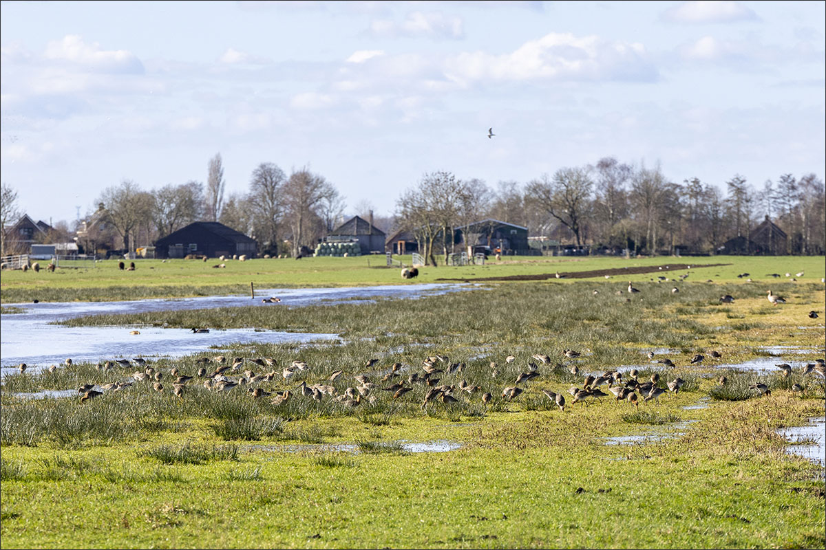 Weidevogels gebruiken deze plasjes om er naar voedsel te zoeken. In februari en maart zijn dit de plekken waar o.a. grutto’s bij aankomst zich verzamelen.