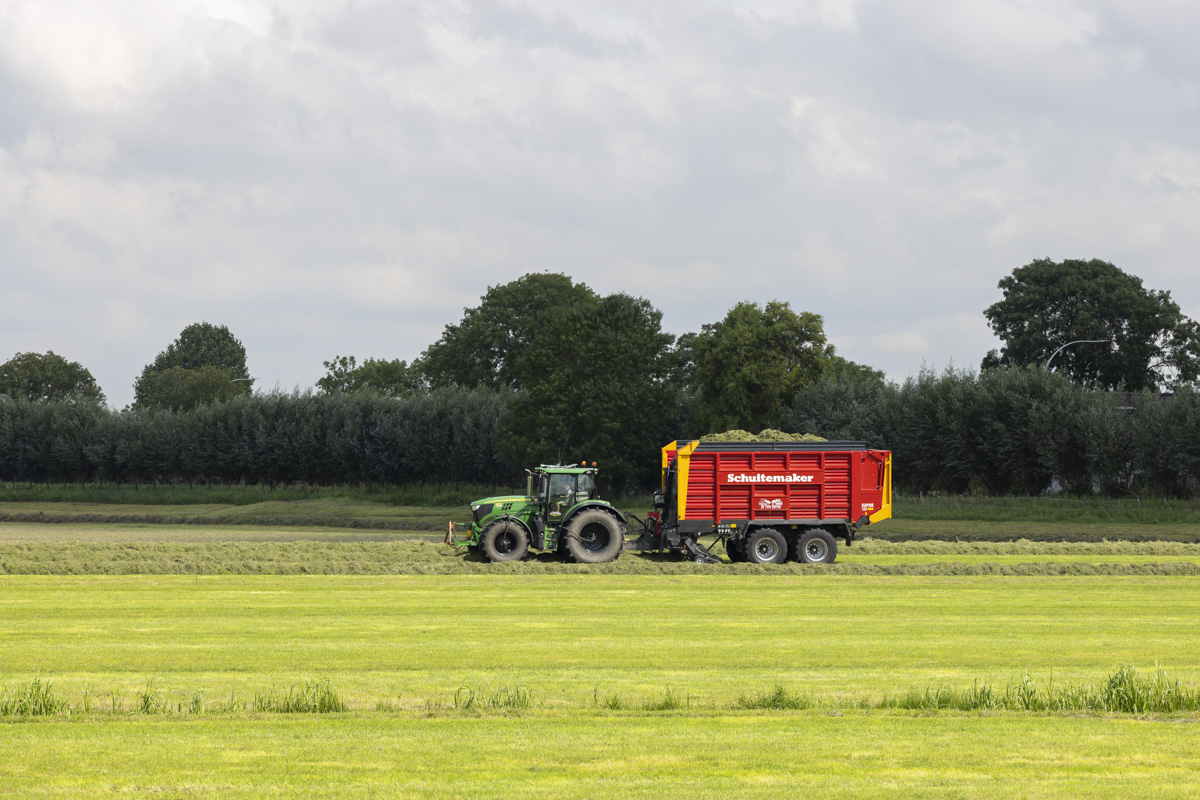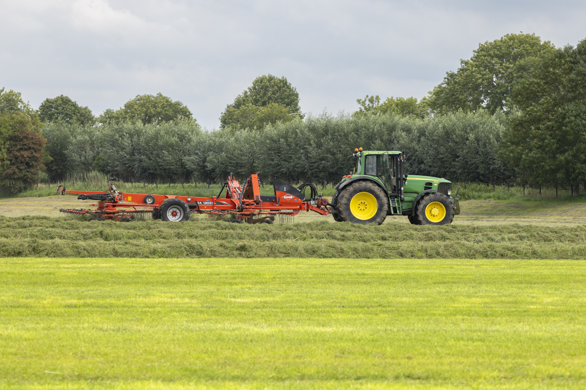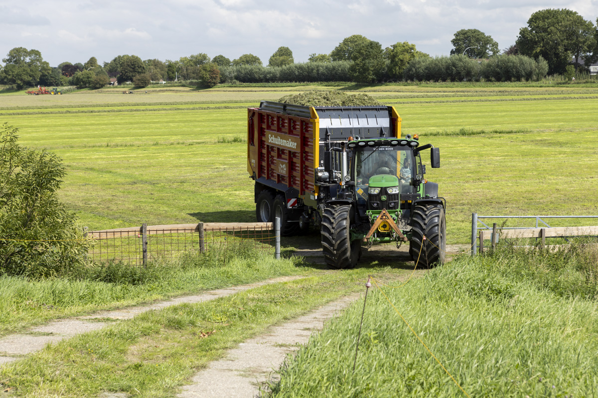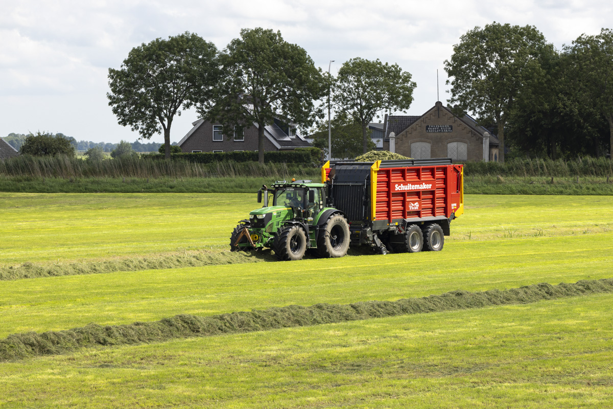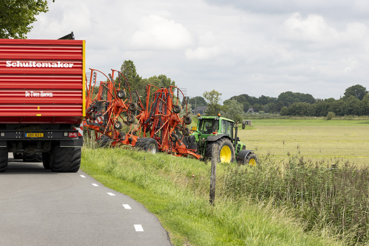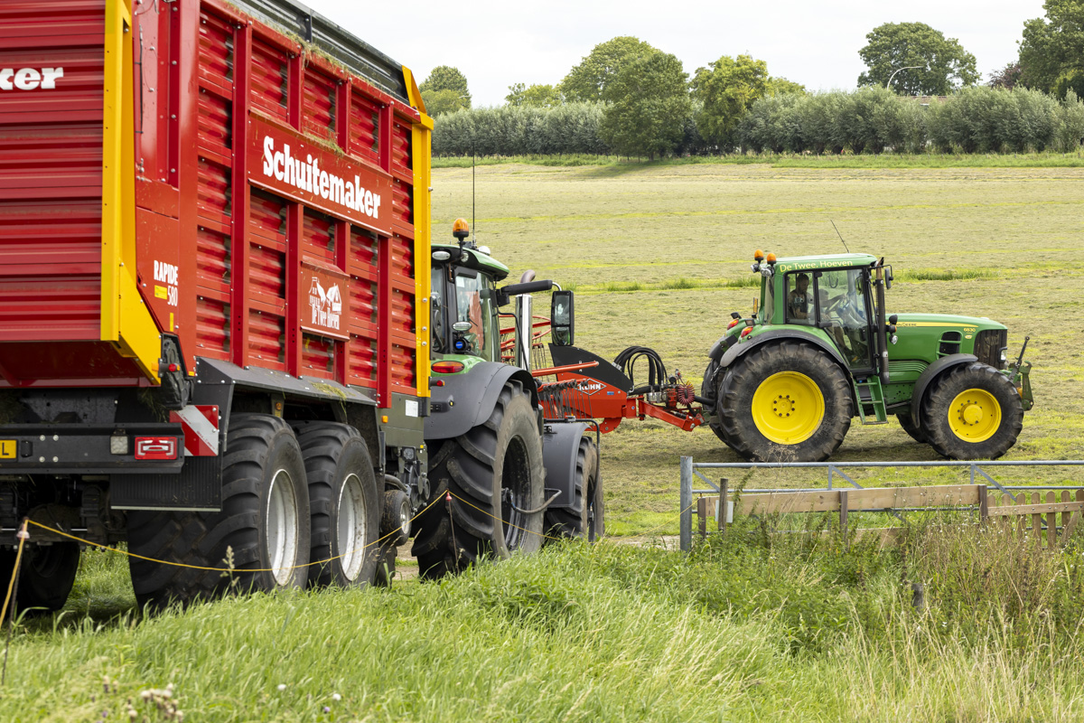 Na het gras maaien wordt het geschut, gewierst, opgeraapt en ingekuilt.
