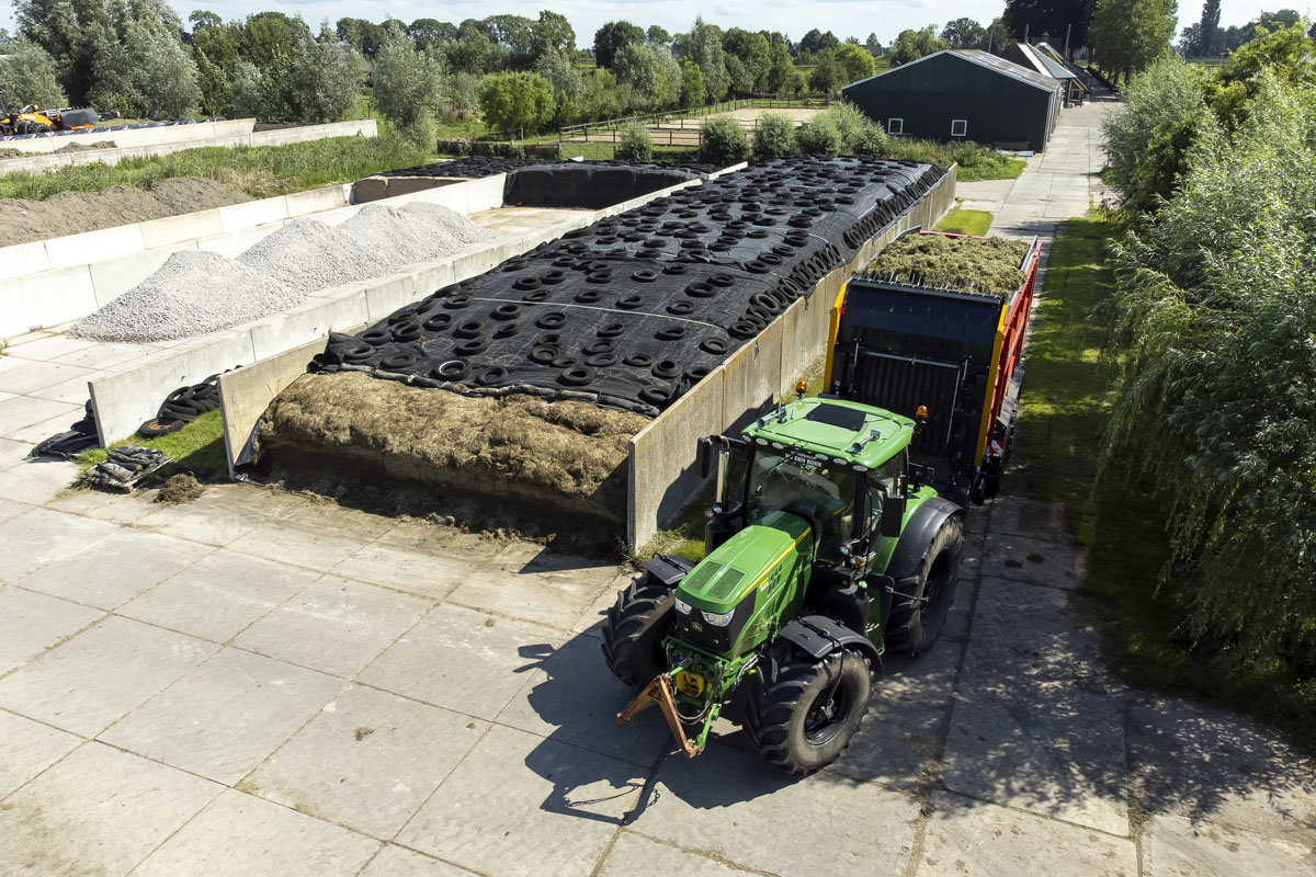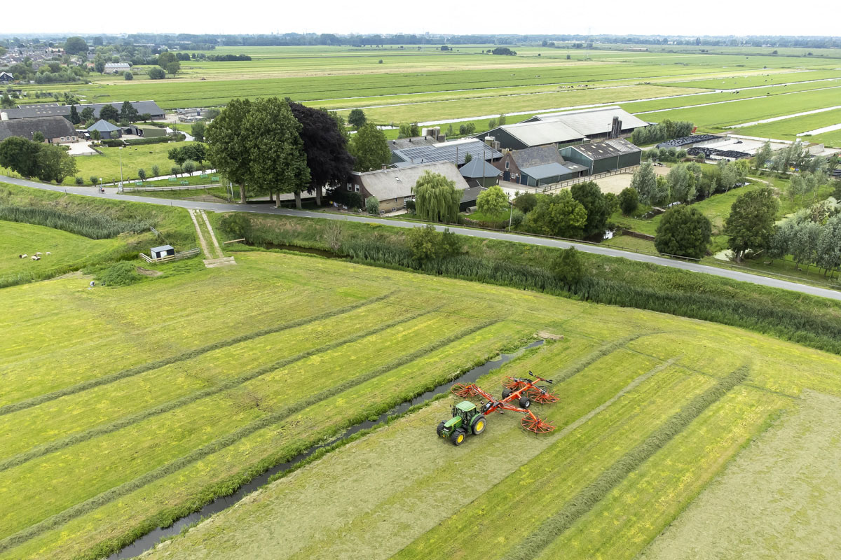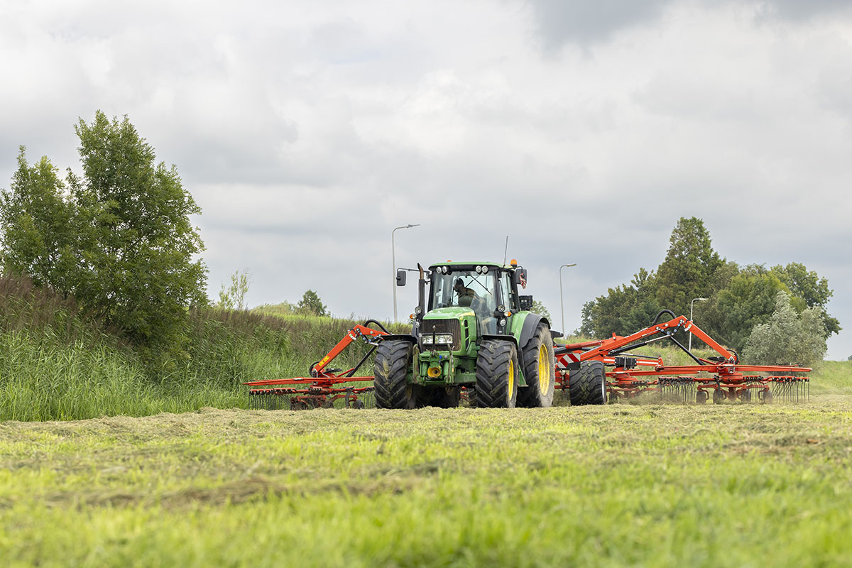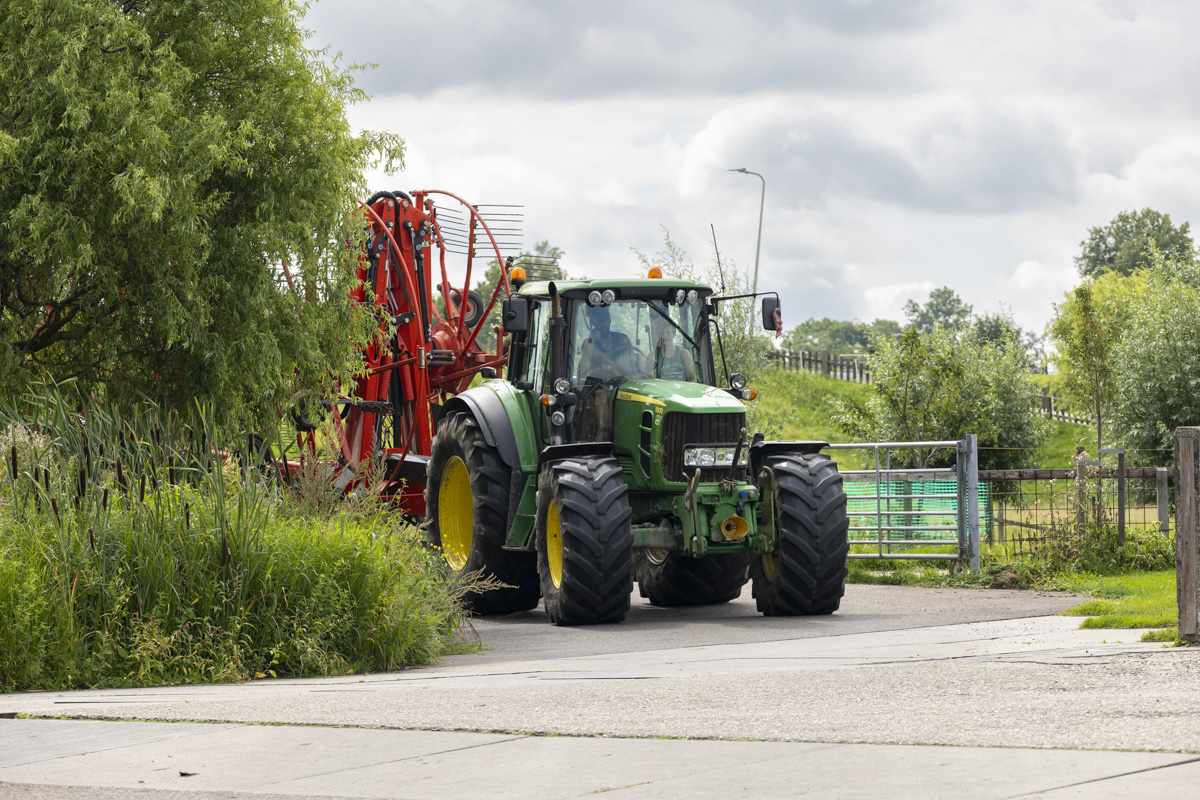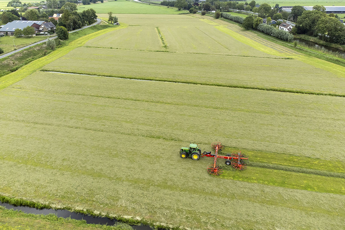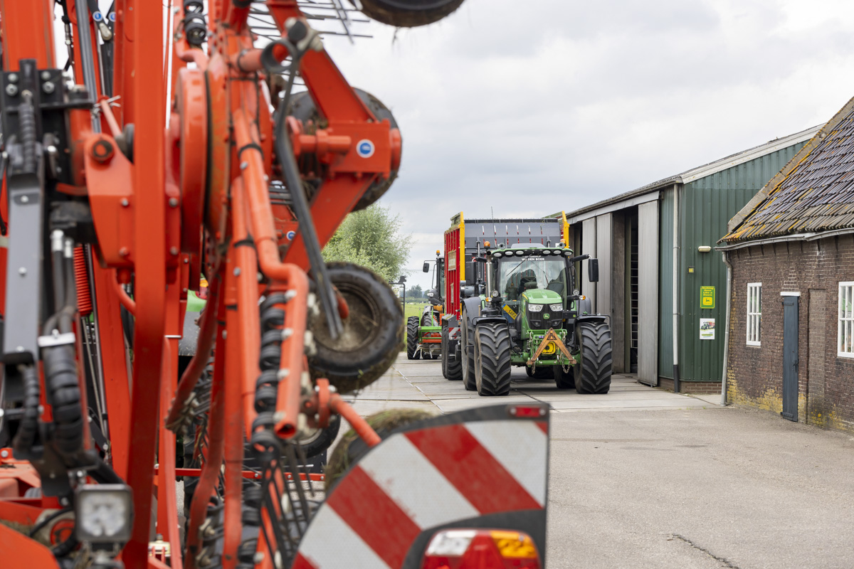 Na het gras maaien wordt het geschut, gewierst, opgeraapt en ingekuilt.