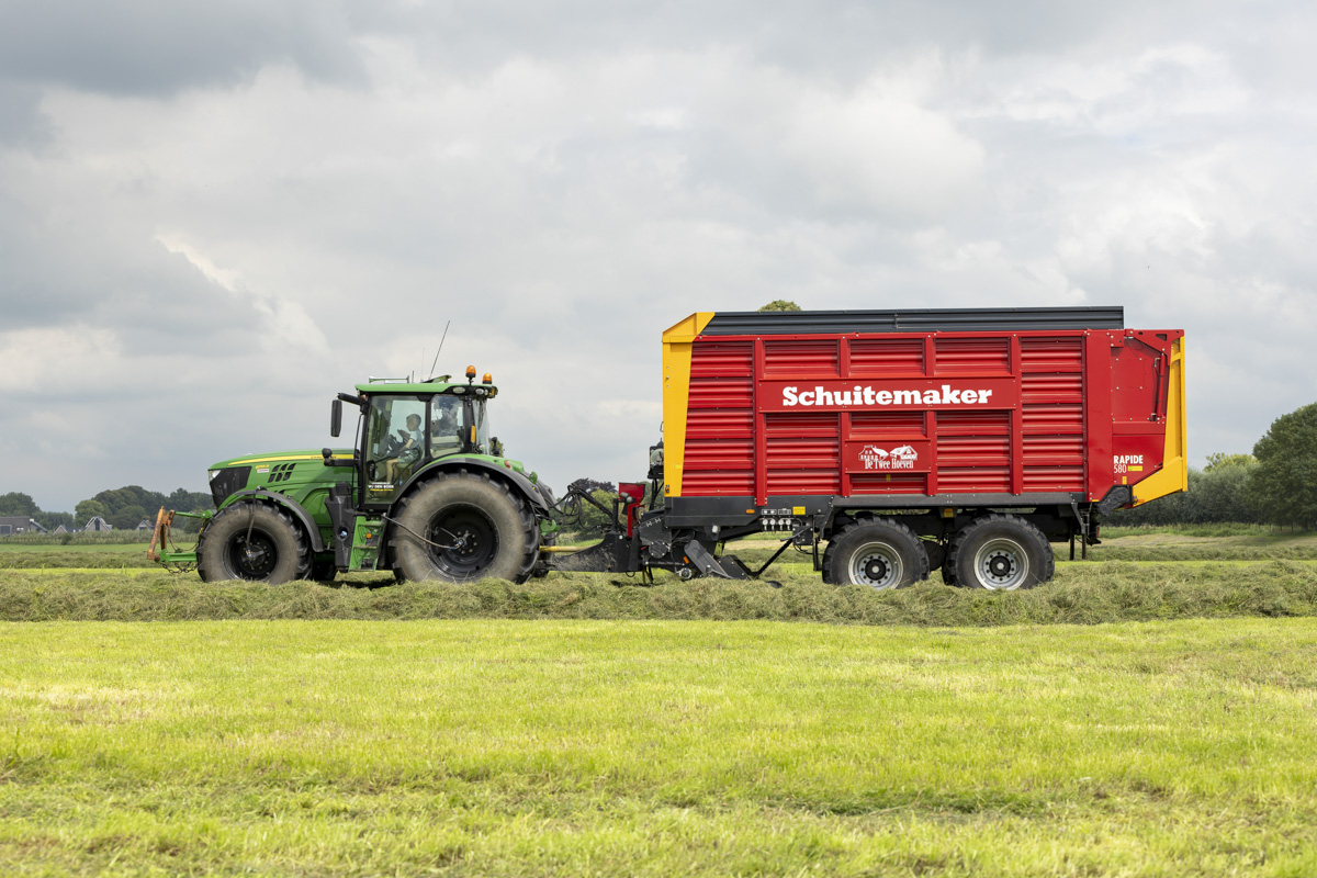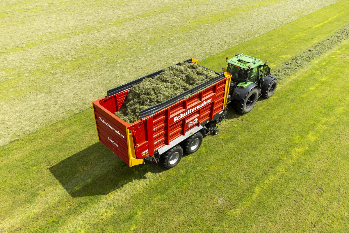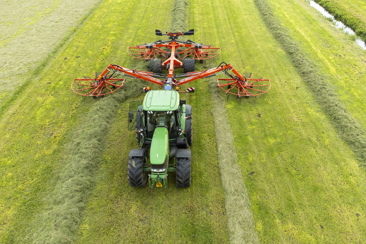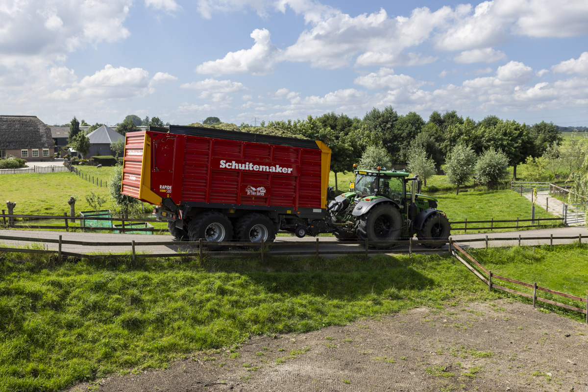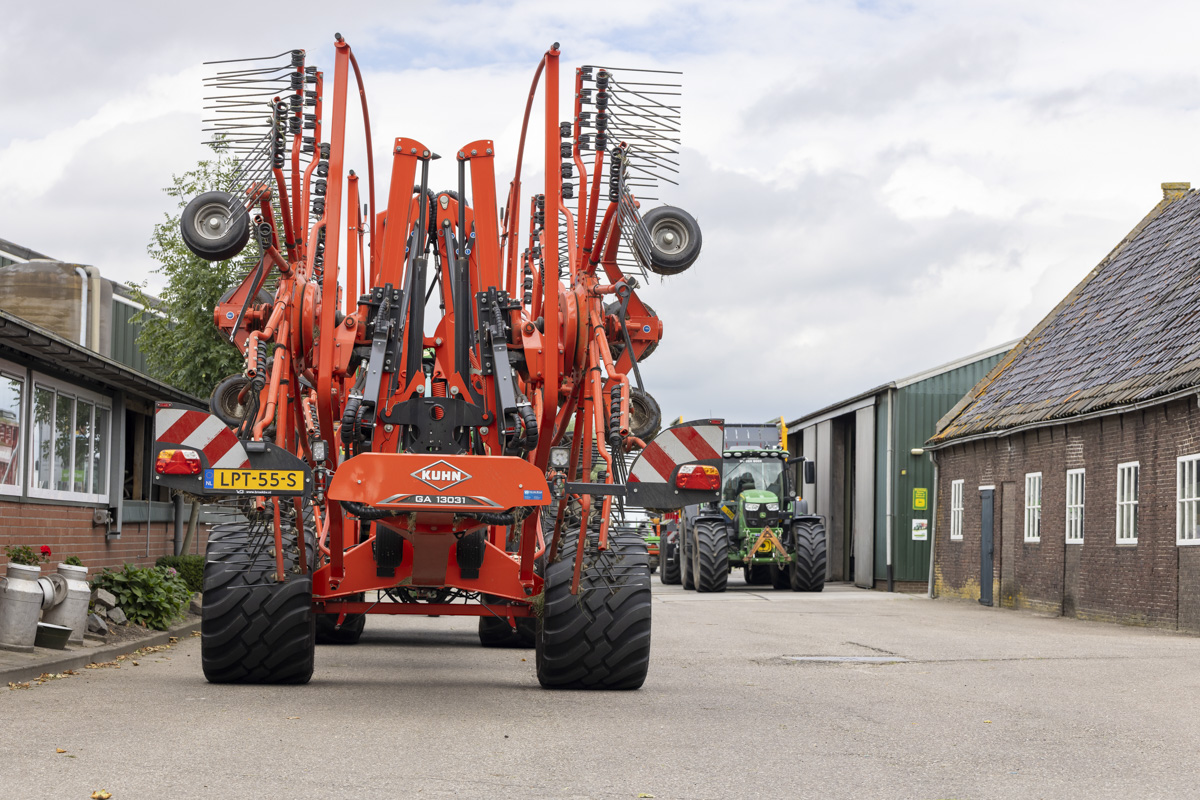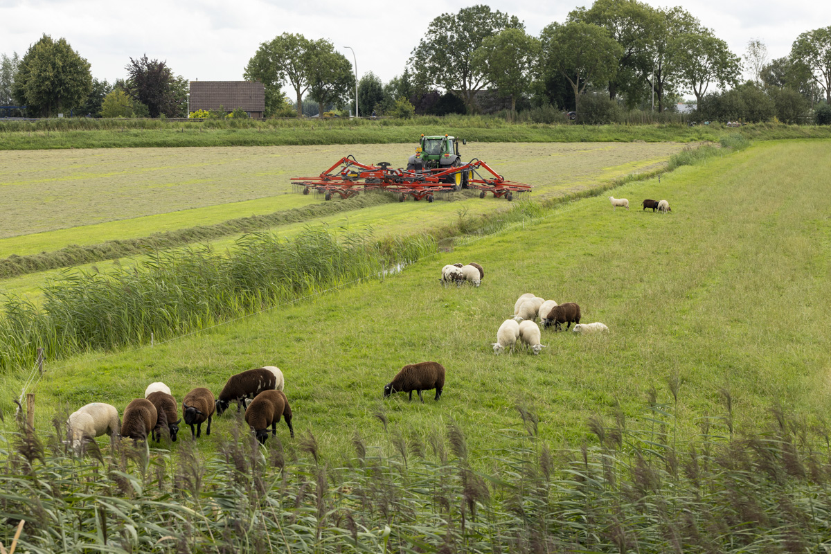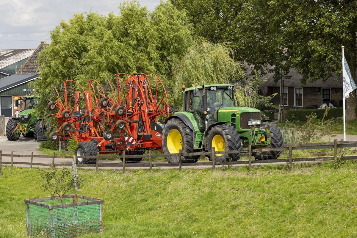 Na het gras maaien wordt het geschut, gewierst, opgeraapt en ingekuilt.