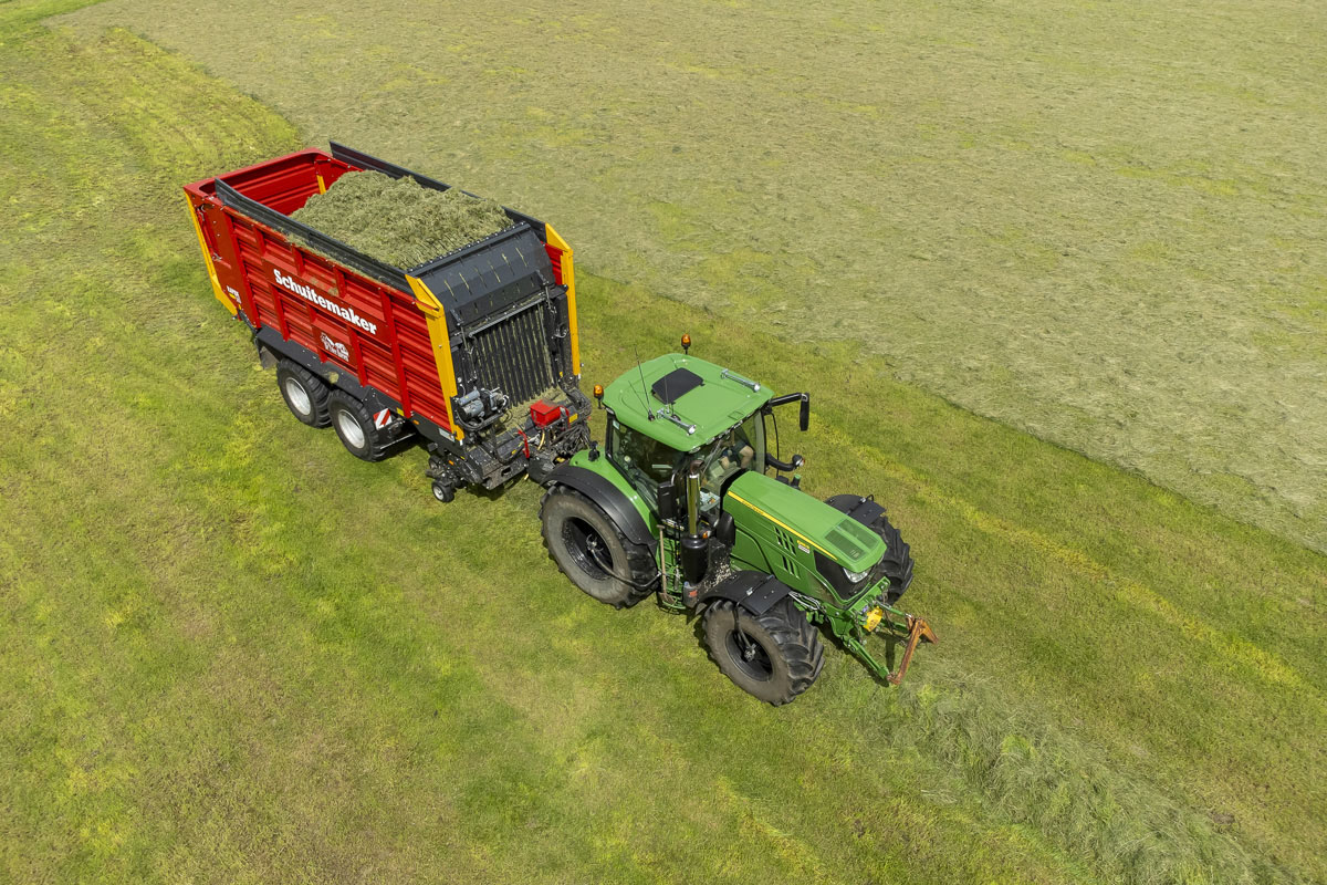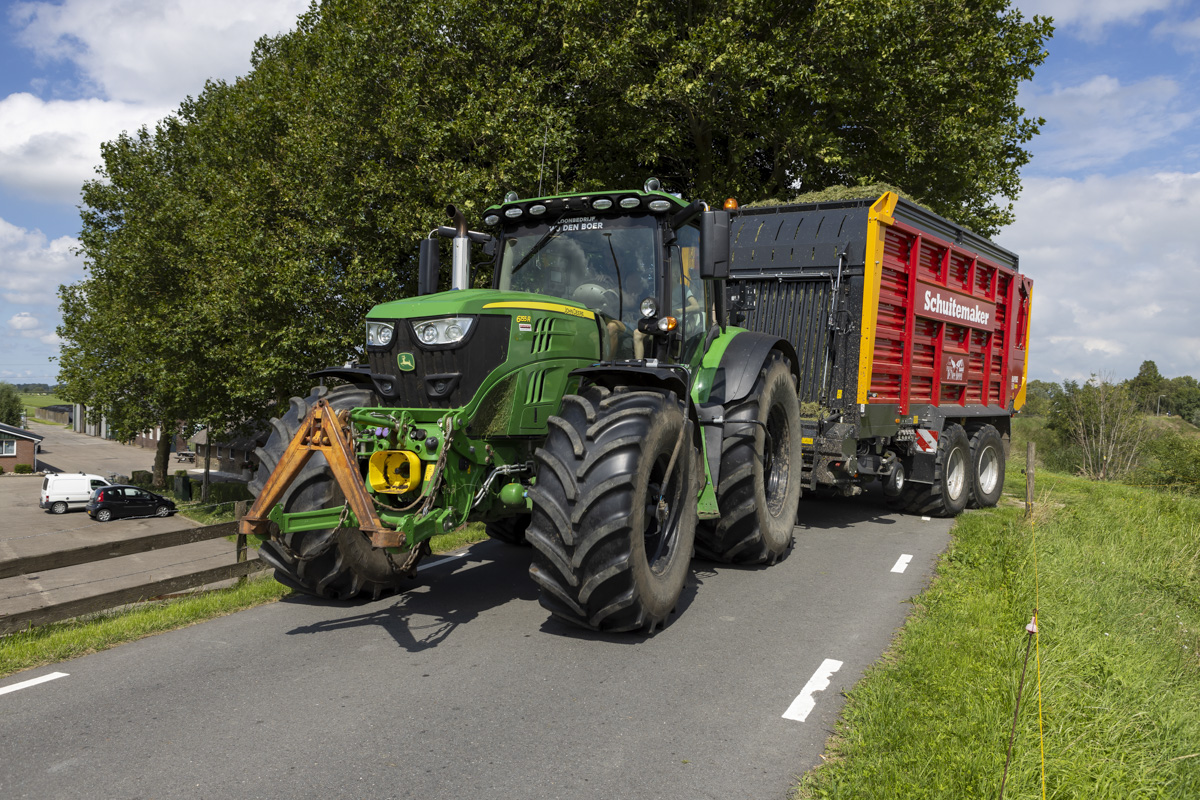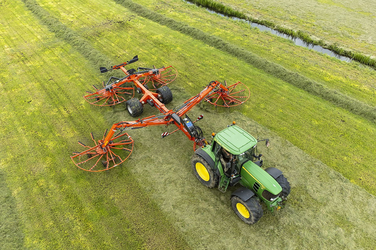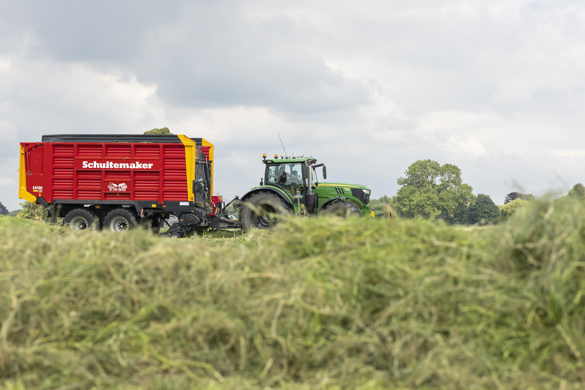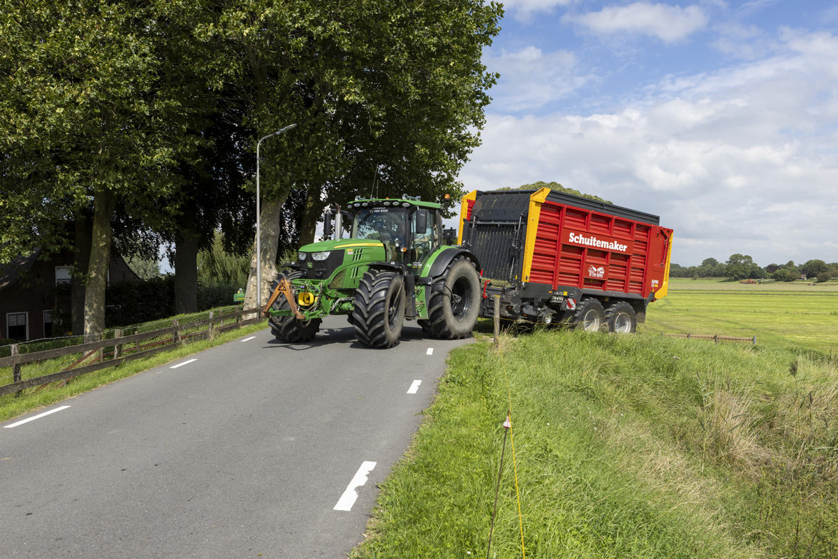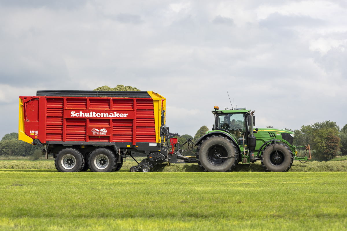 Na het gras maaien wordt het geschut, gewierst, opgeraapt en ingekuilt.